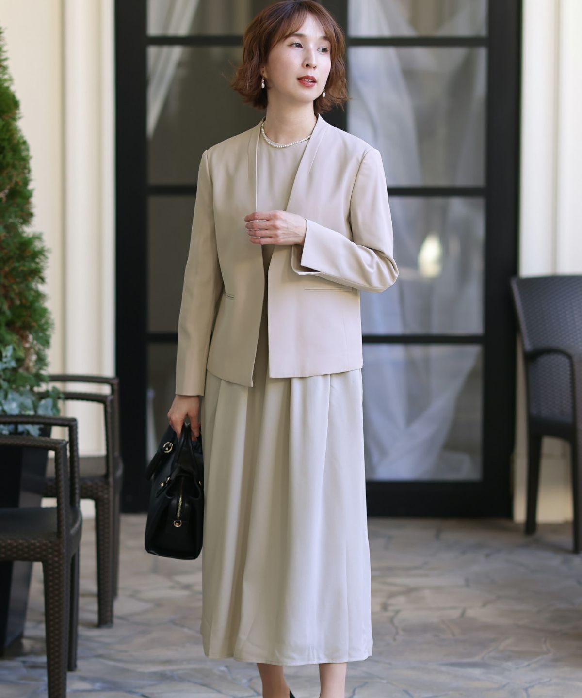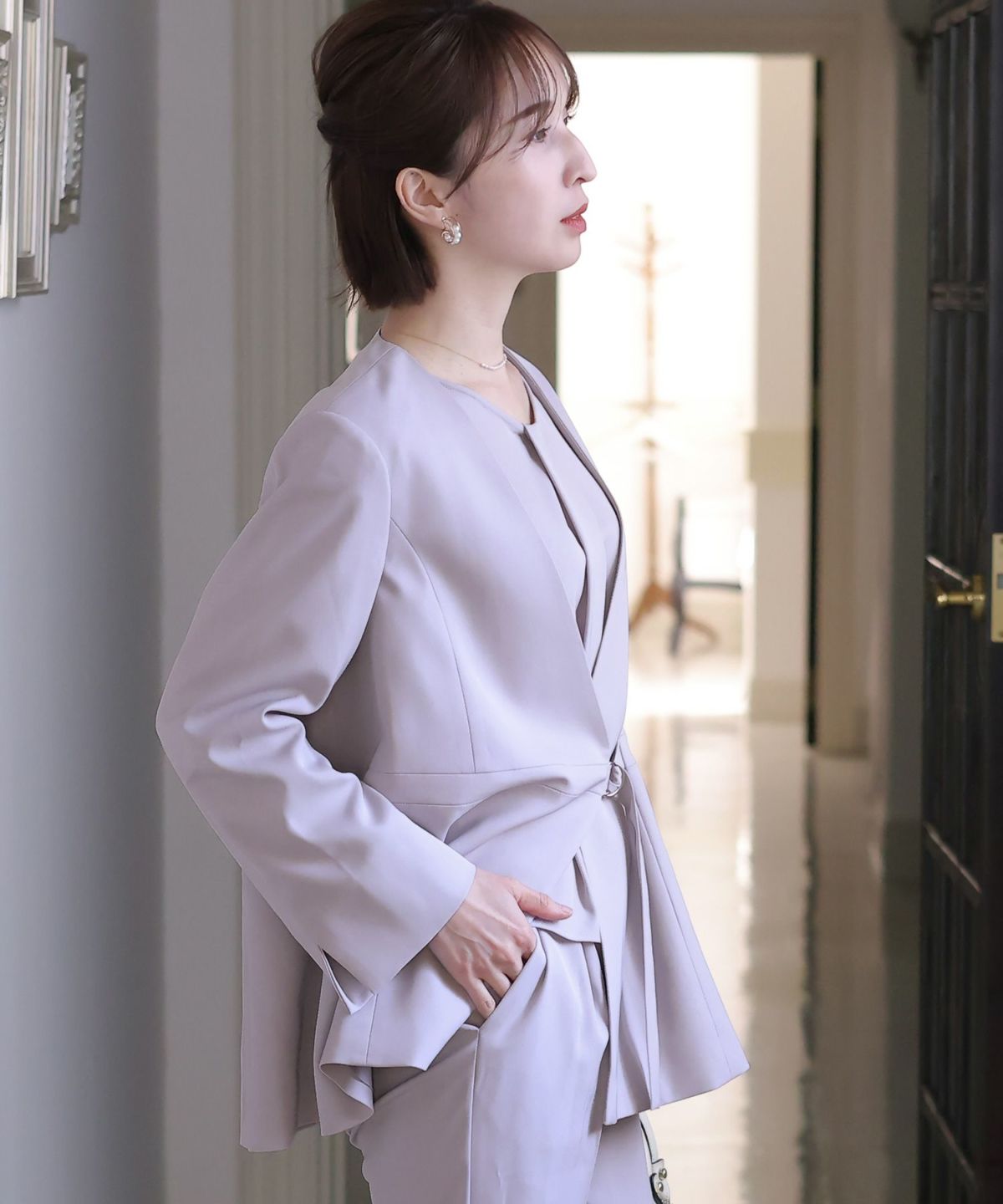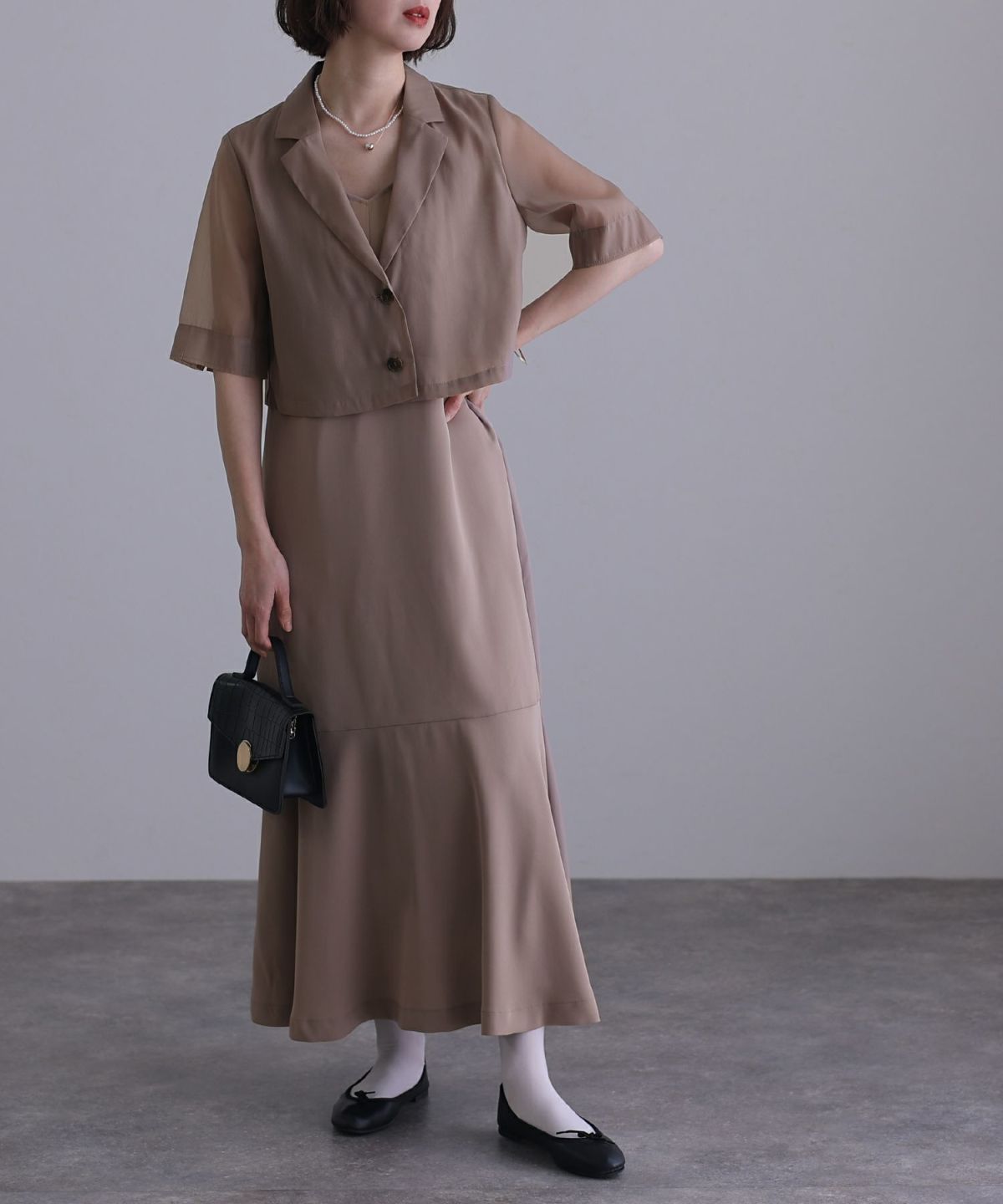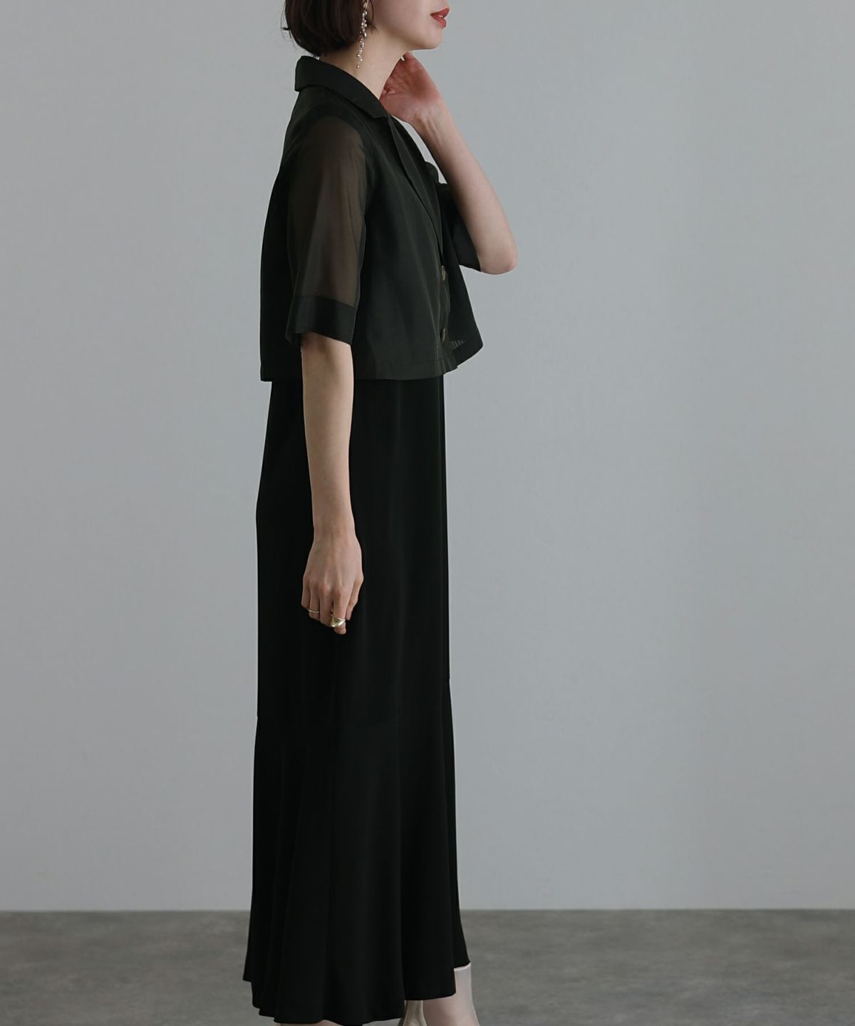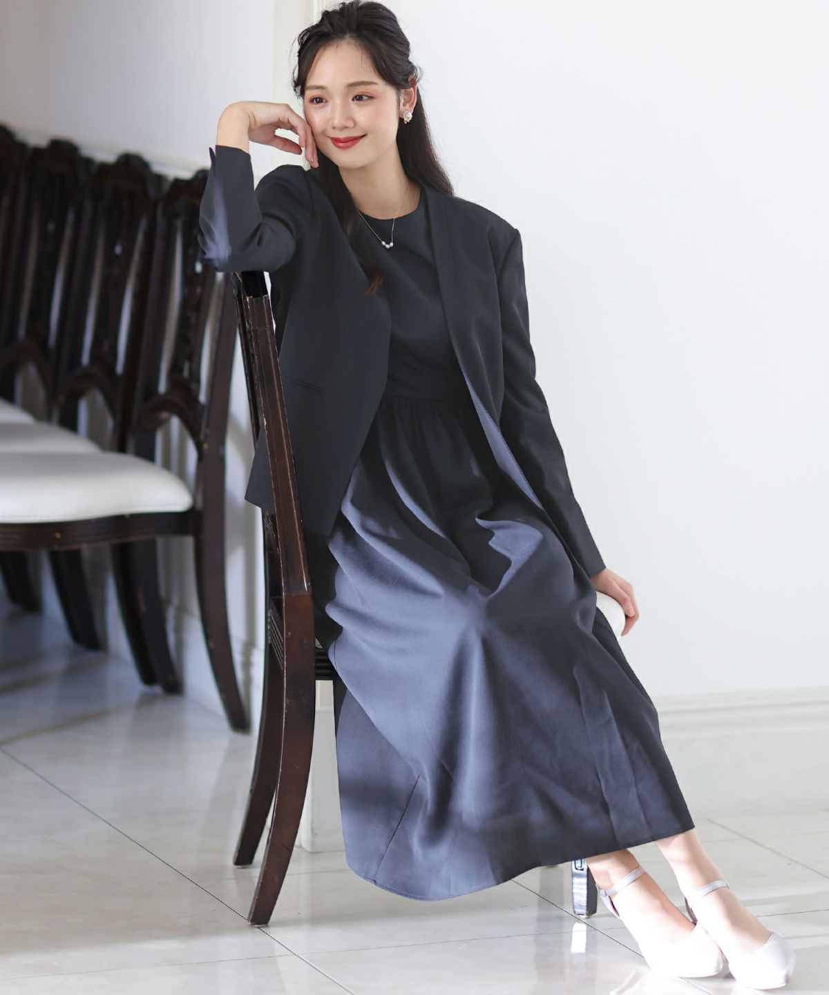 ソフトマーメイドのワンピースで女性らしい印象に シアージャケットワンピースセットアップ