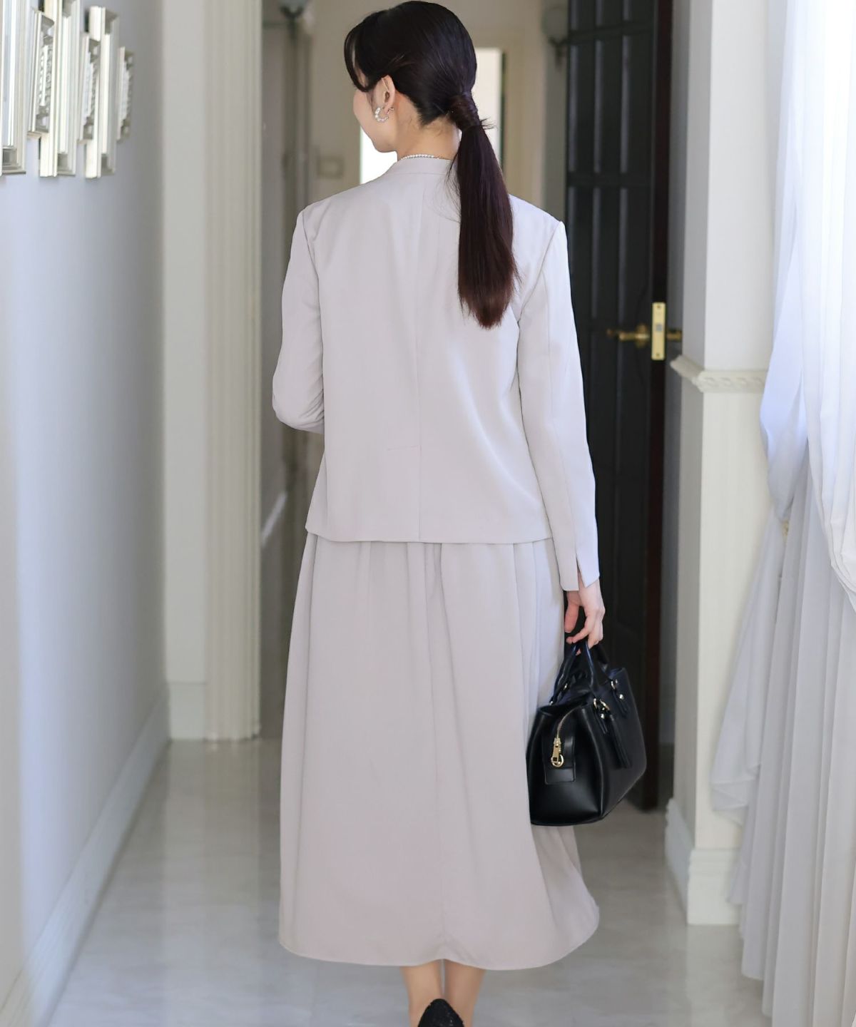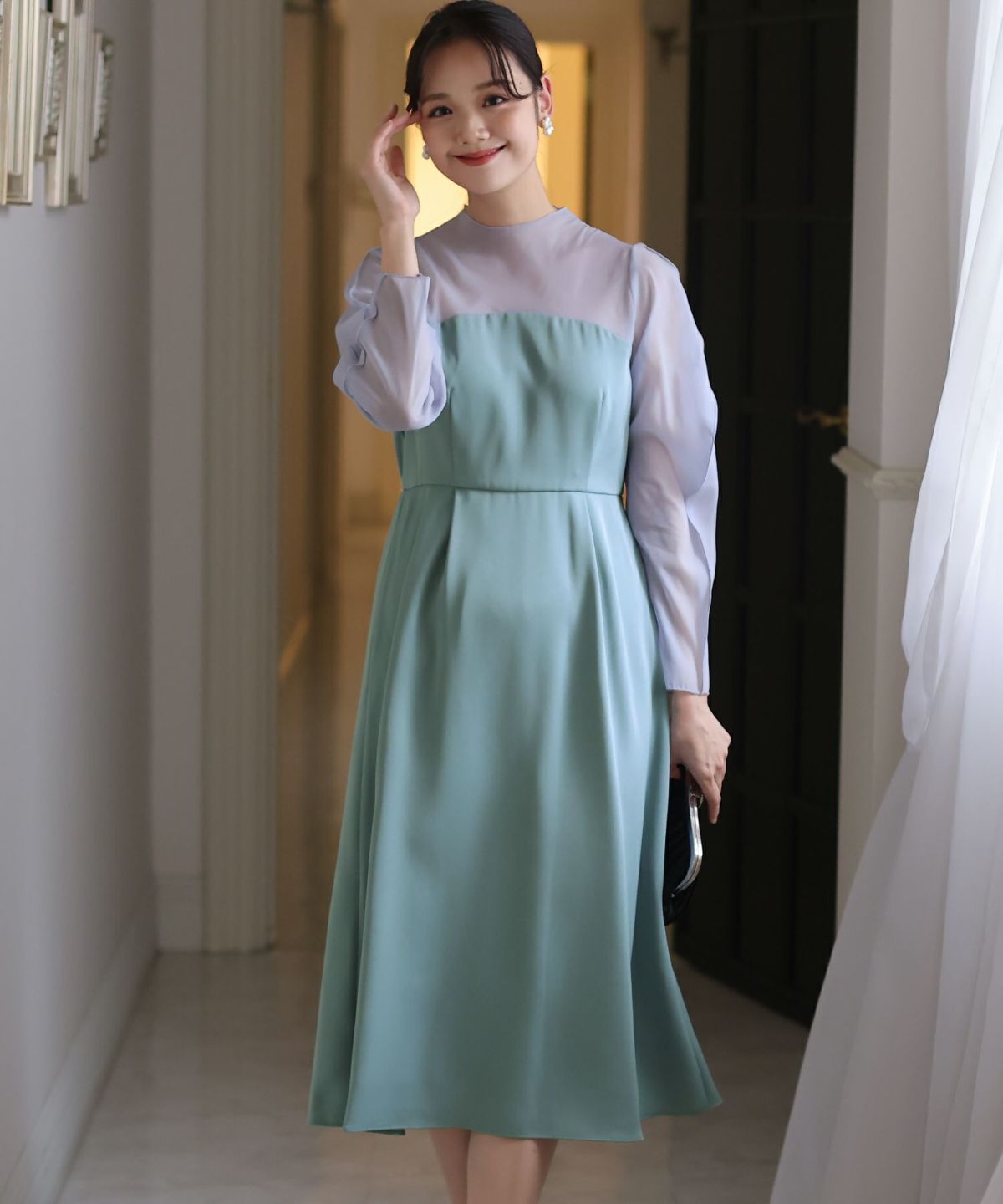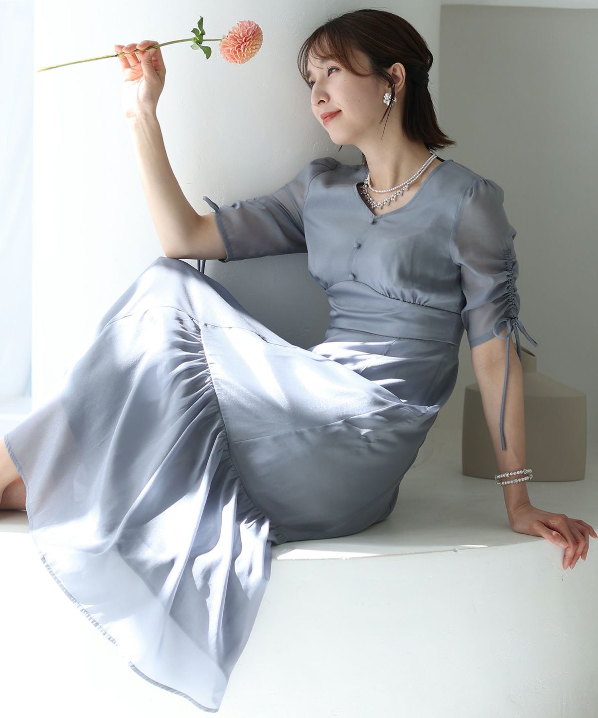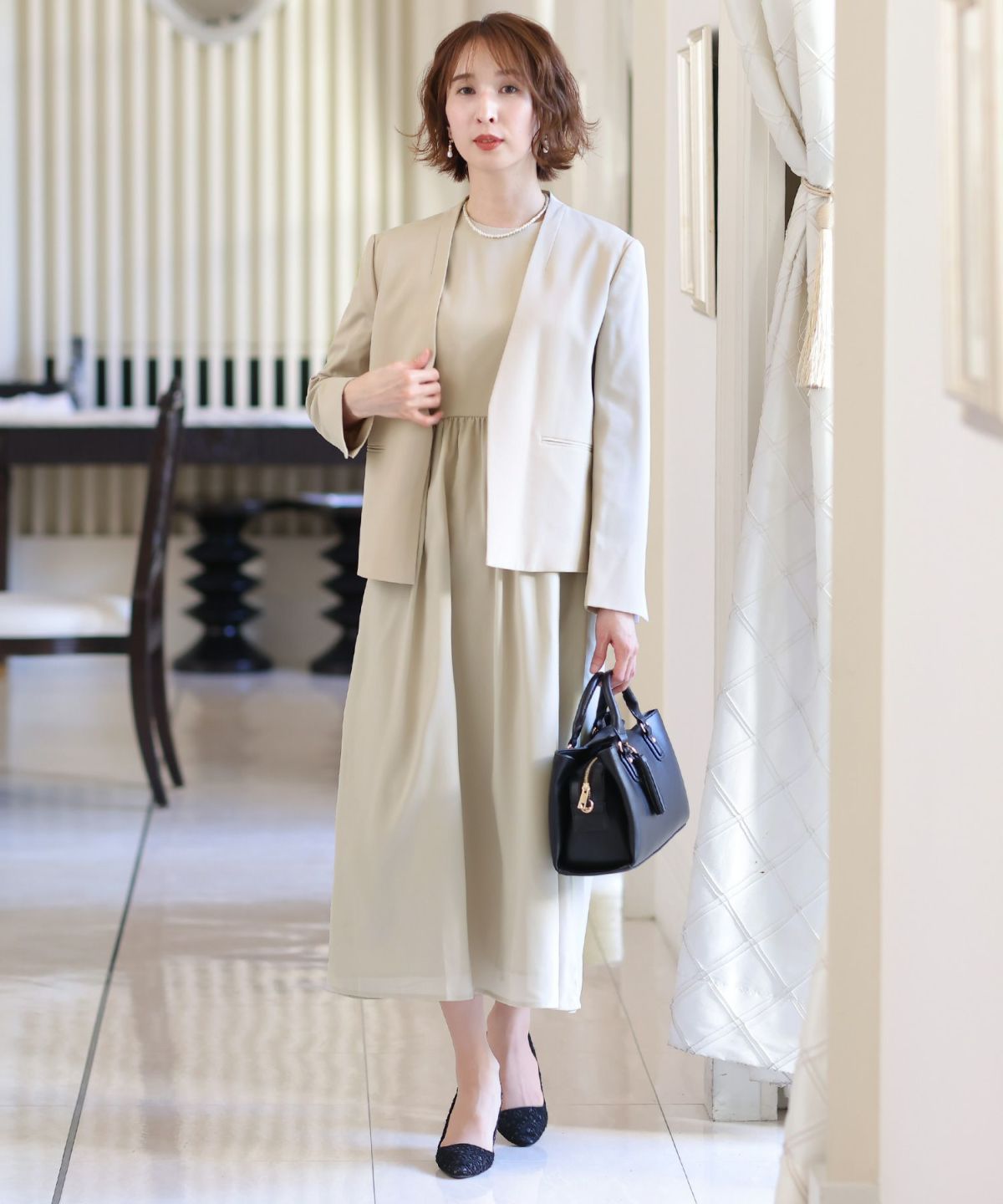 ソフトマーメイドのワンピースで女性らしい印象に シアージャケットワンピースセットアップ