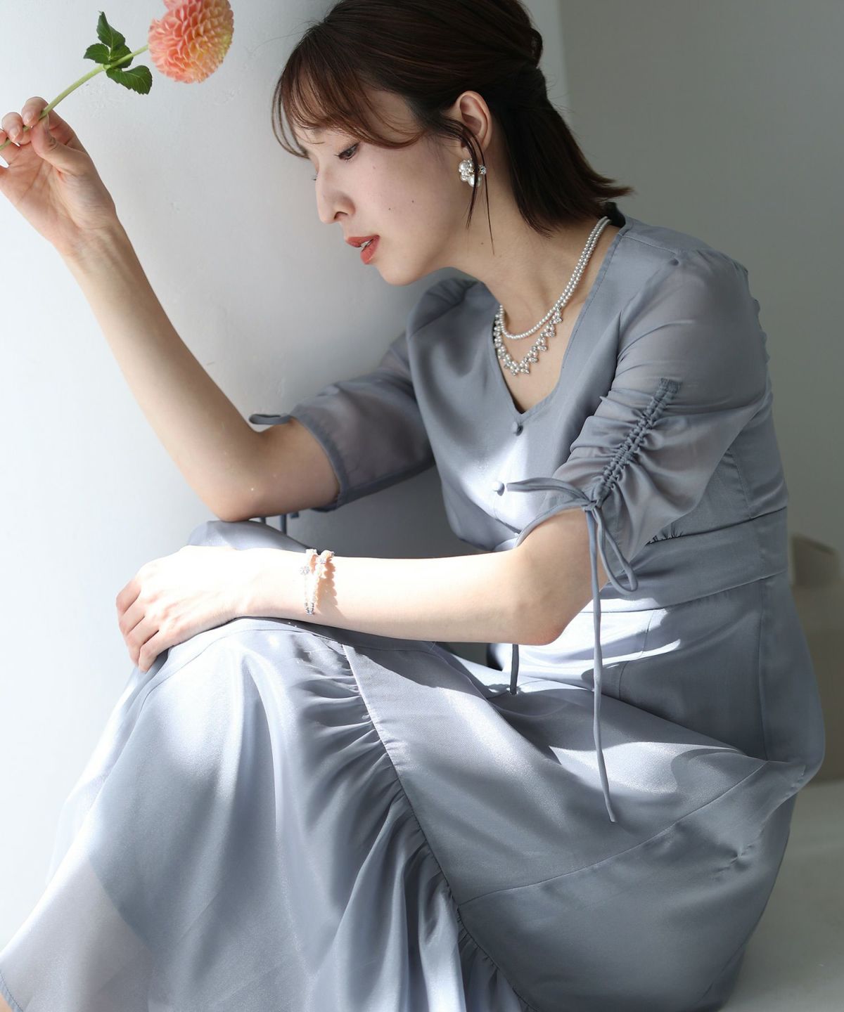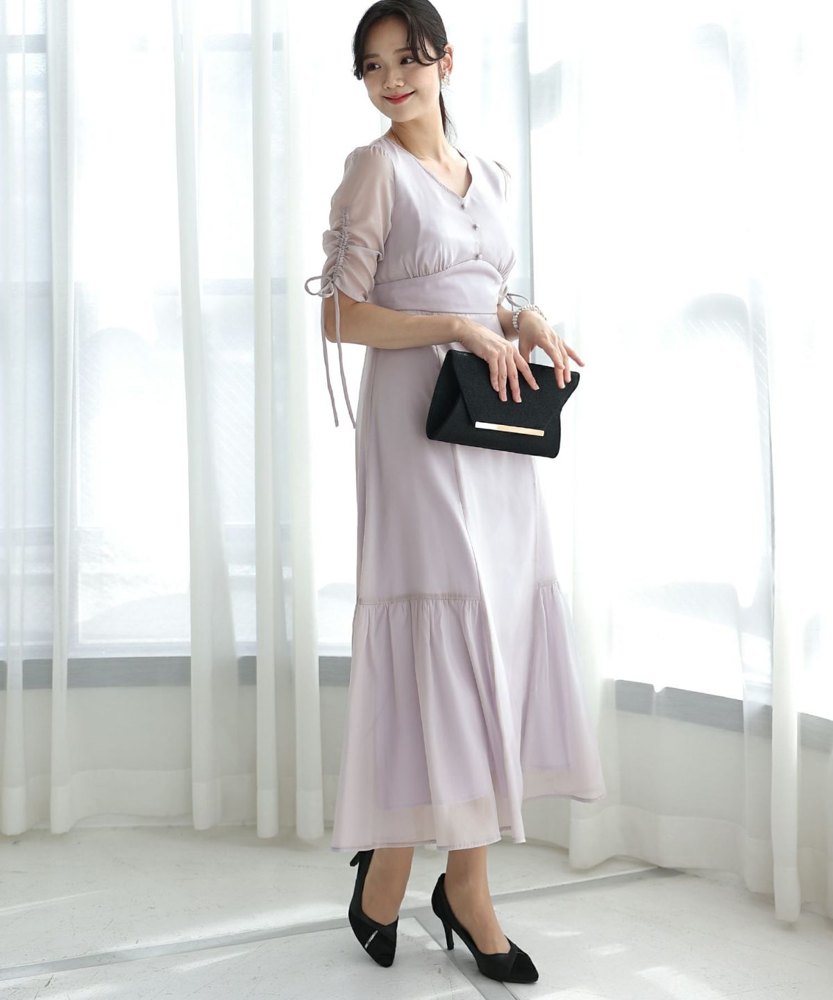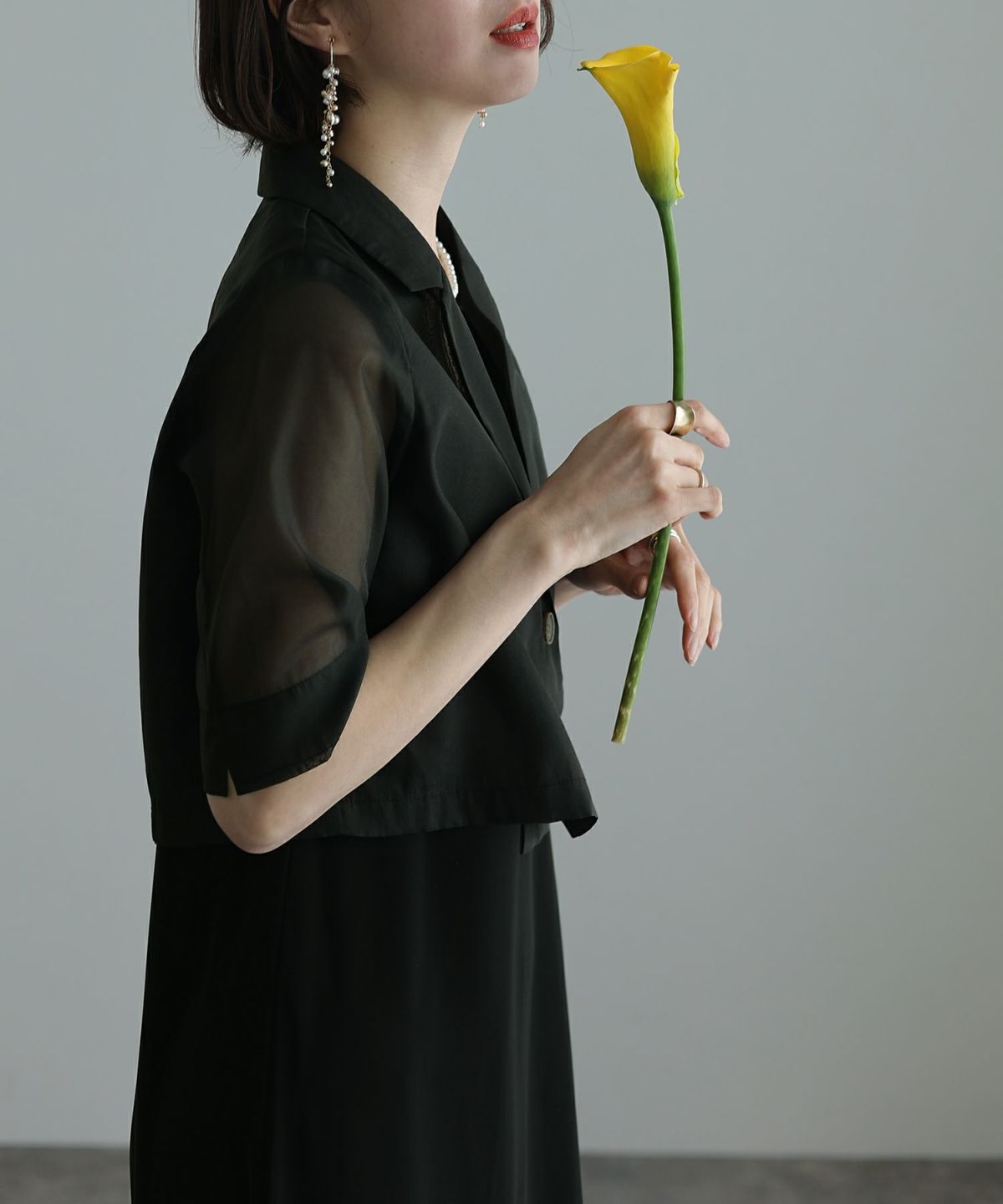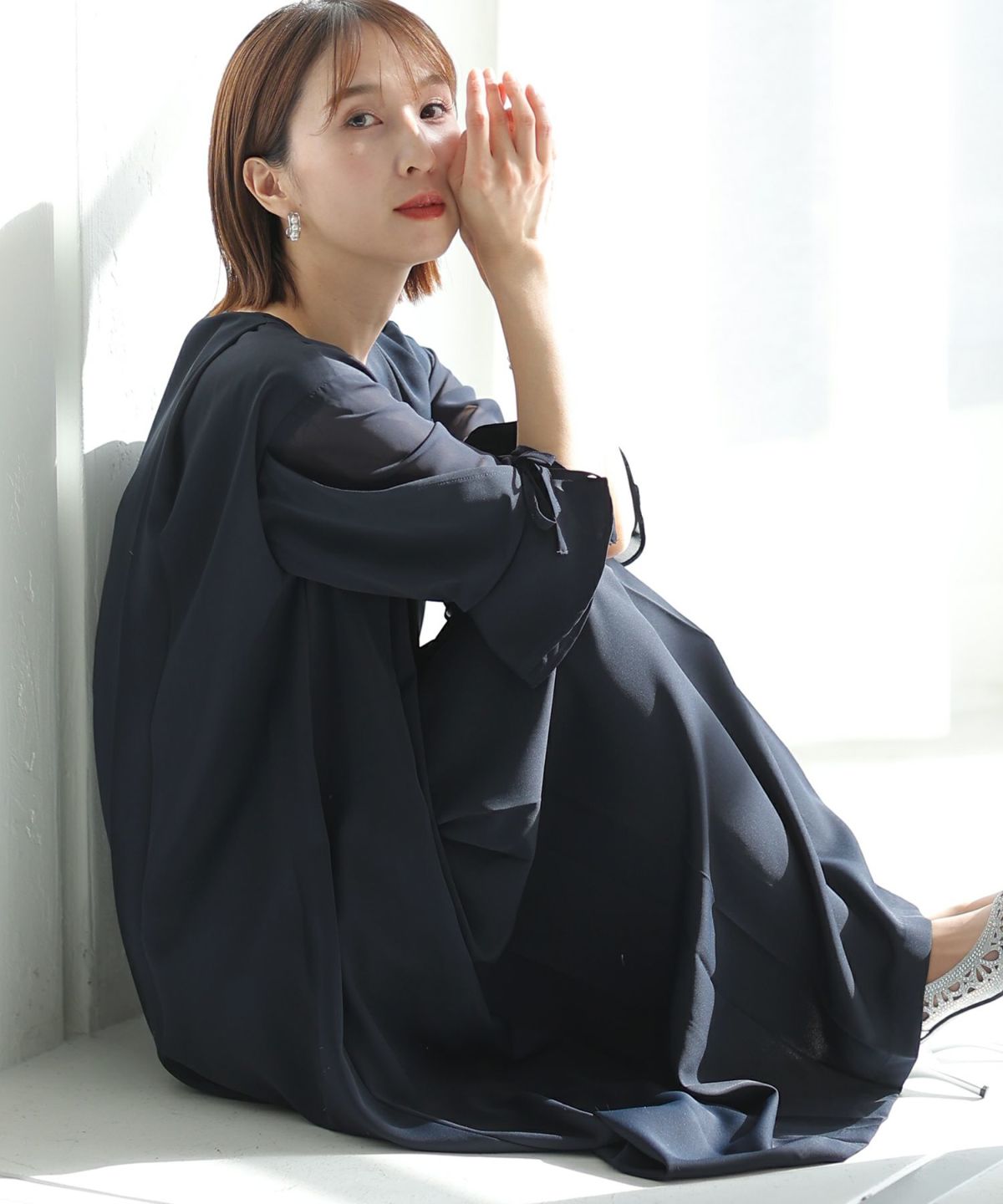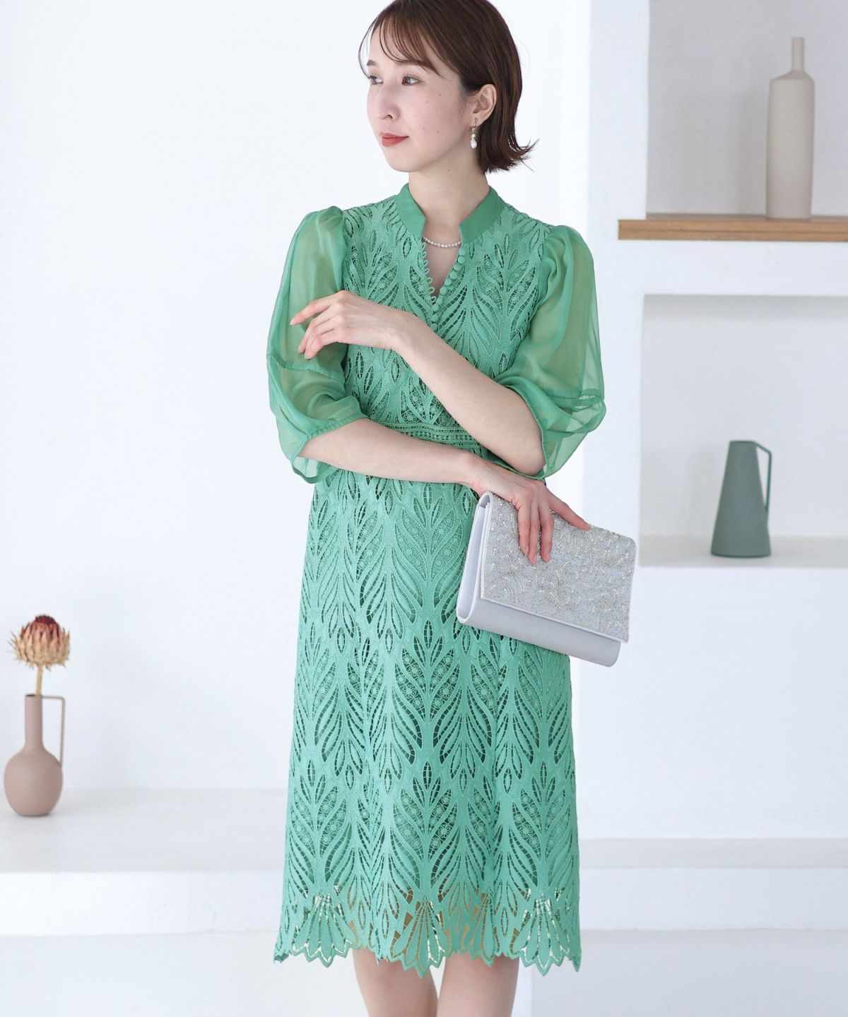 ソフトマーメイドのワンピースで女性らしい印象に シアージャケットワンピースセットアップ