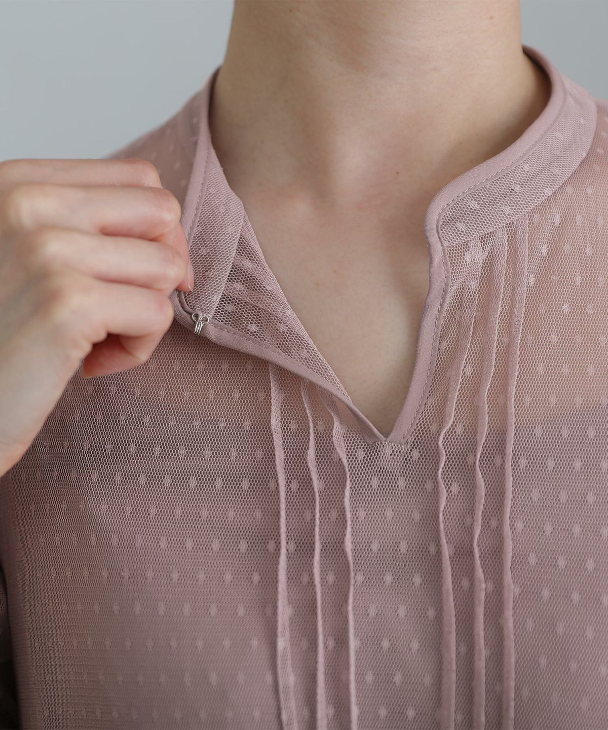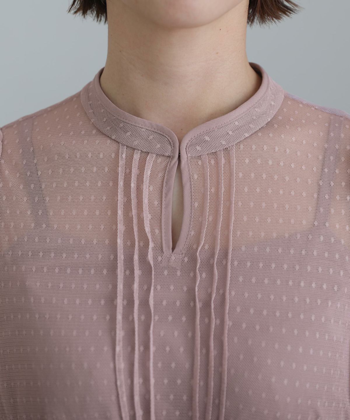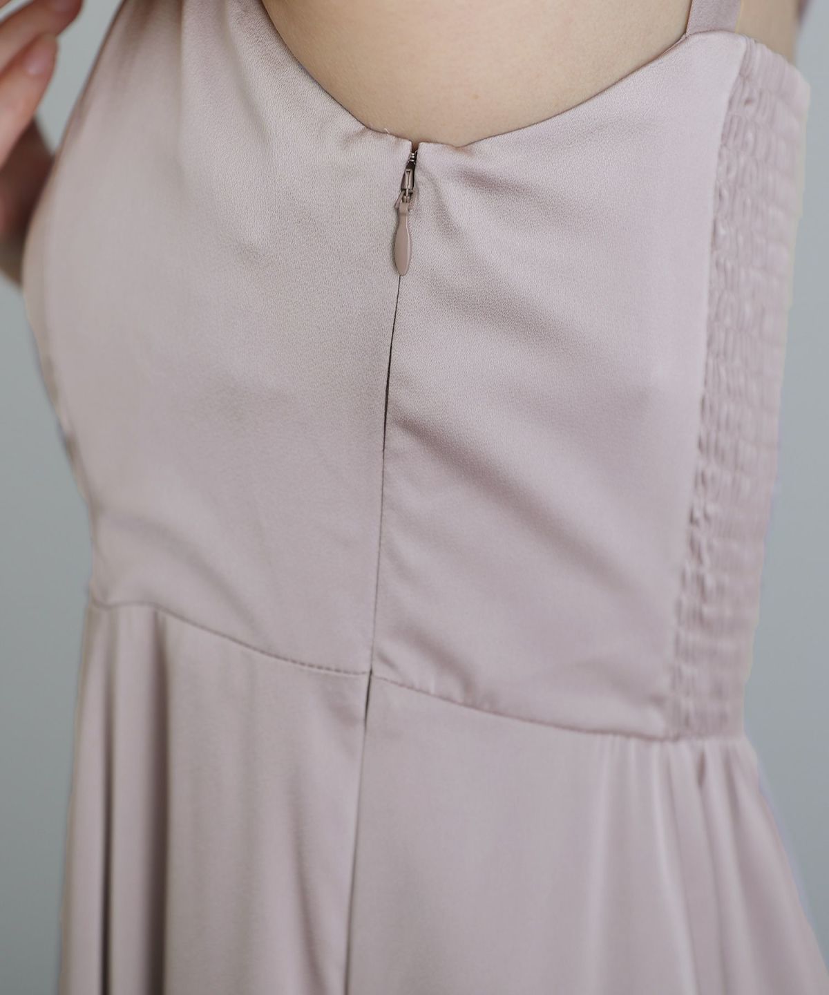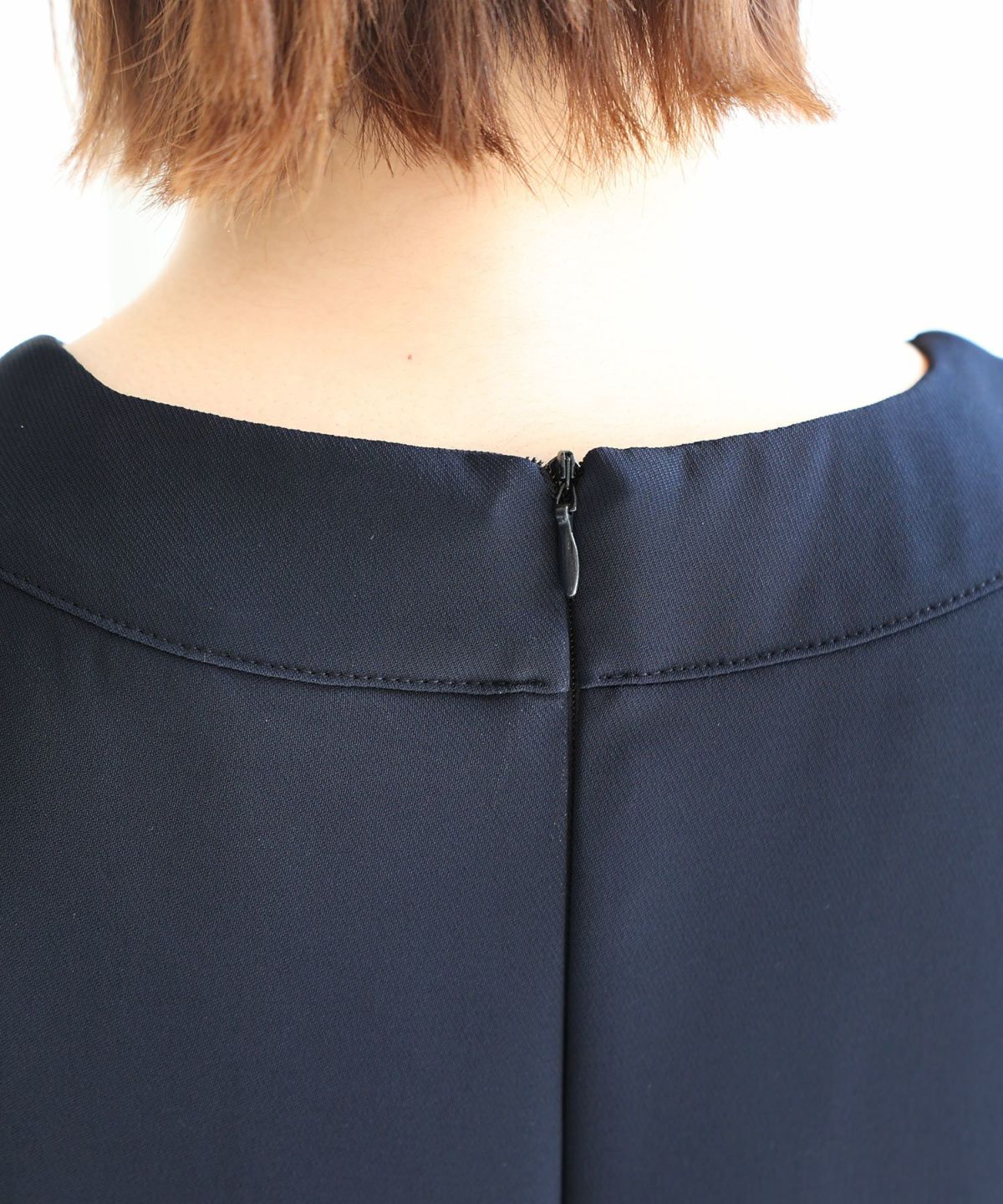 細めのピンタックと背面のリボンが大人可愛い ネックバックリボンピンタックドレス
