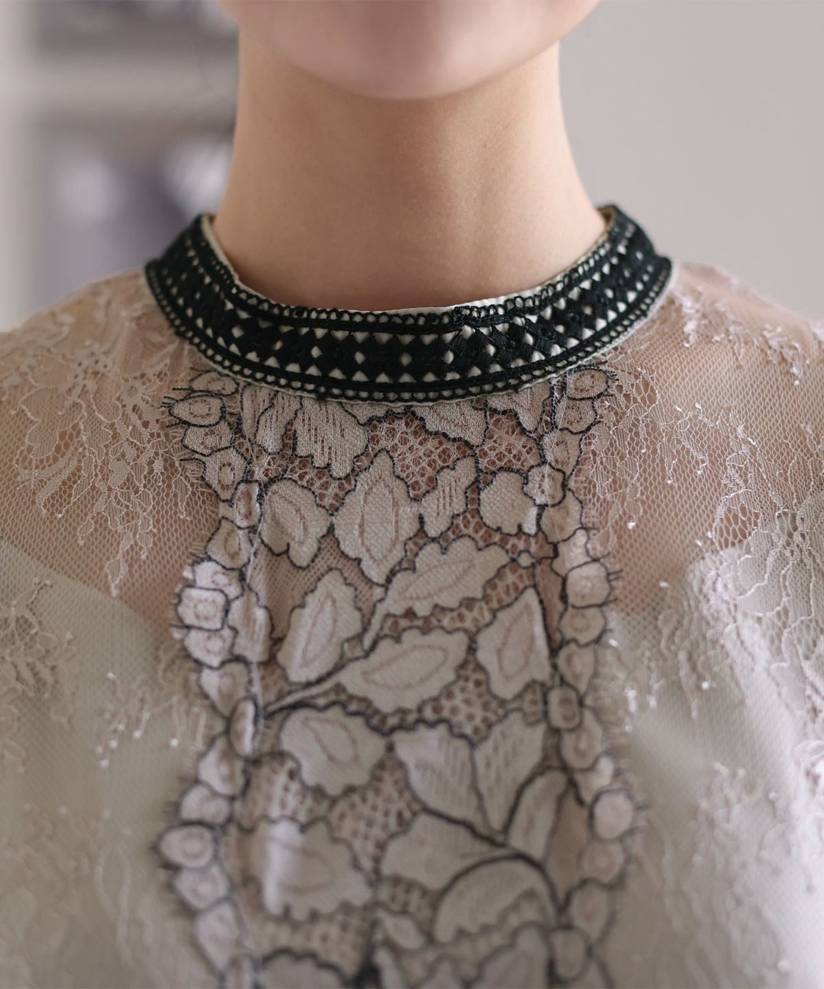 コードレース×ハシゴレース レース×オーガンジープチハイネックワンピース