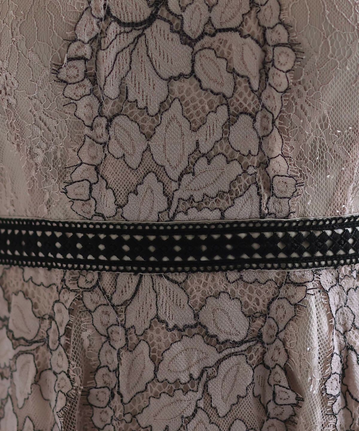 おしゃれなデザインと程よい透け感レースがオトナっぽい 刺繍リボン付きレースワンピース