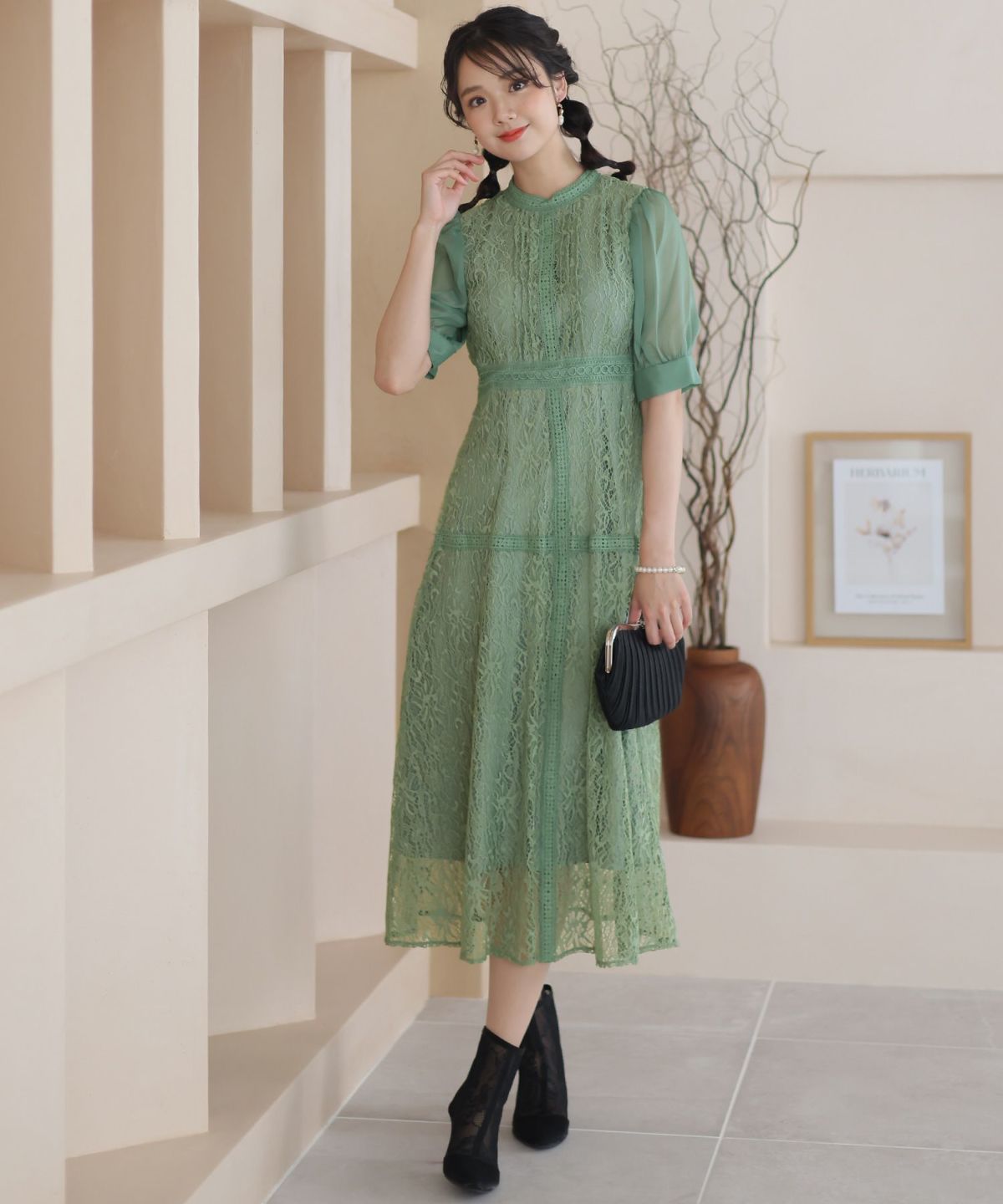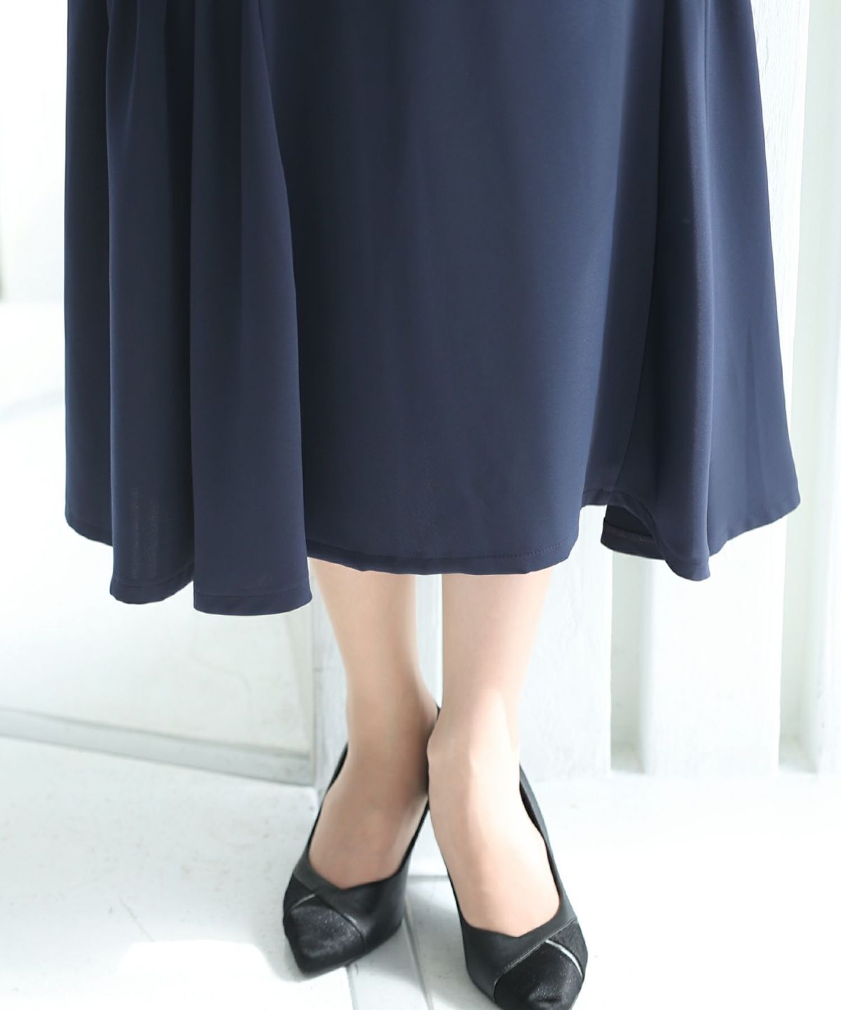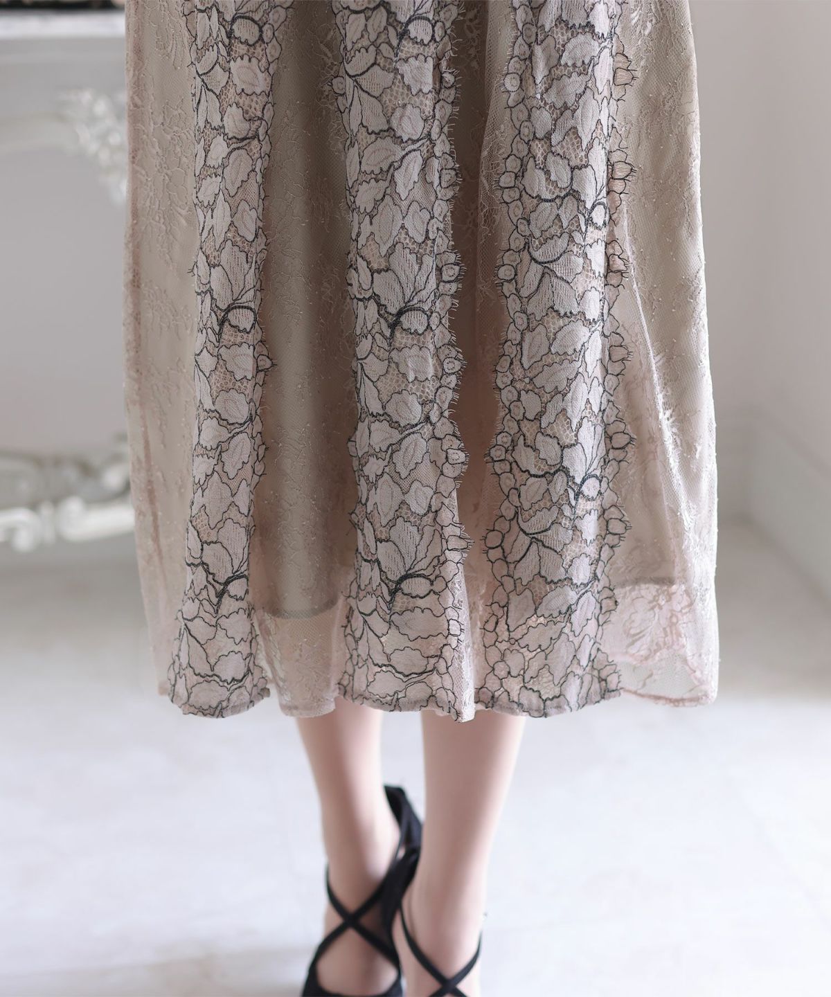 綺麗なAラインが自然とスタイルアップ レース切り替えミディワンピース