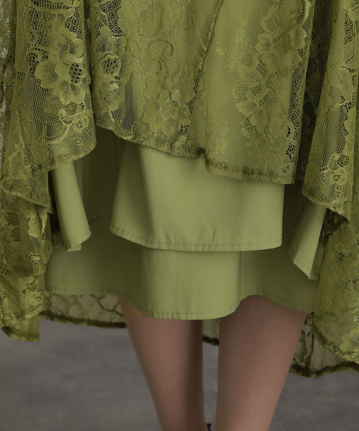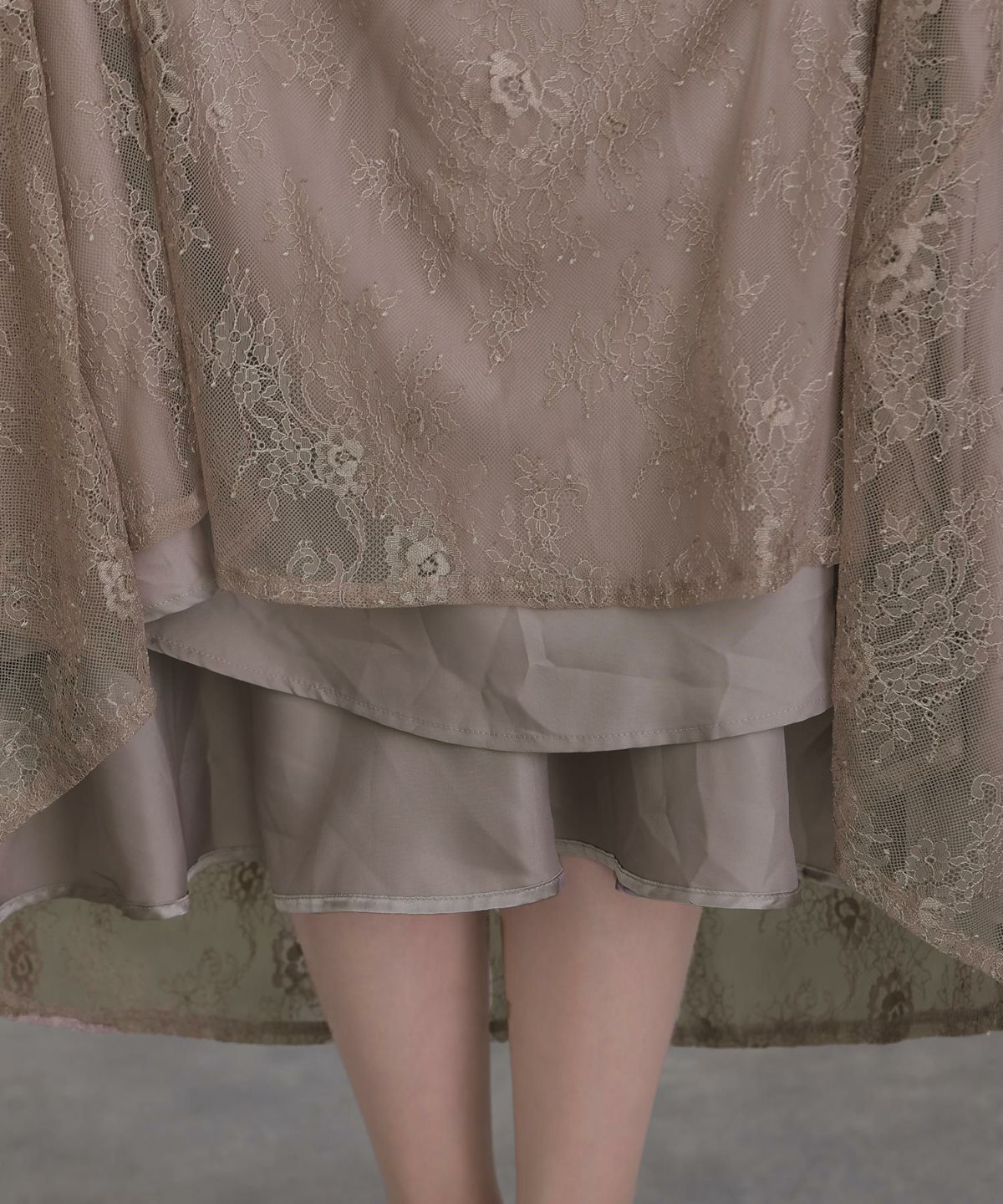 Aライン×透け感レース ジレレイヤード風レースワンピース