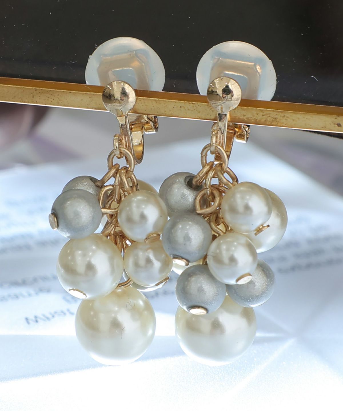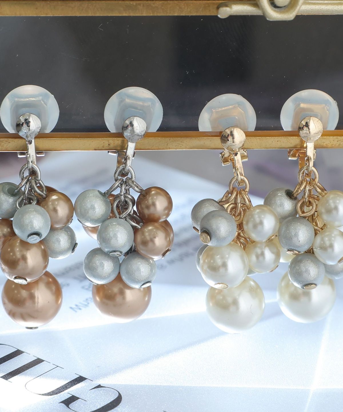 艶のあるメタリックなパールが華やかなイヤリング メタリックグレープイヤリング