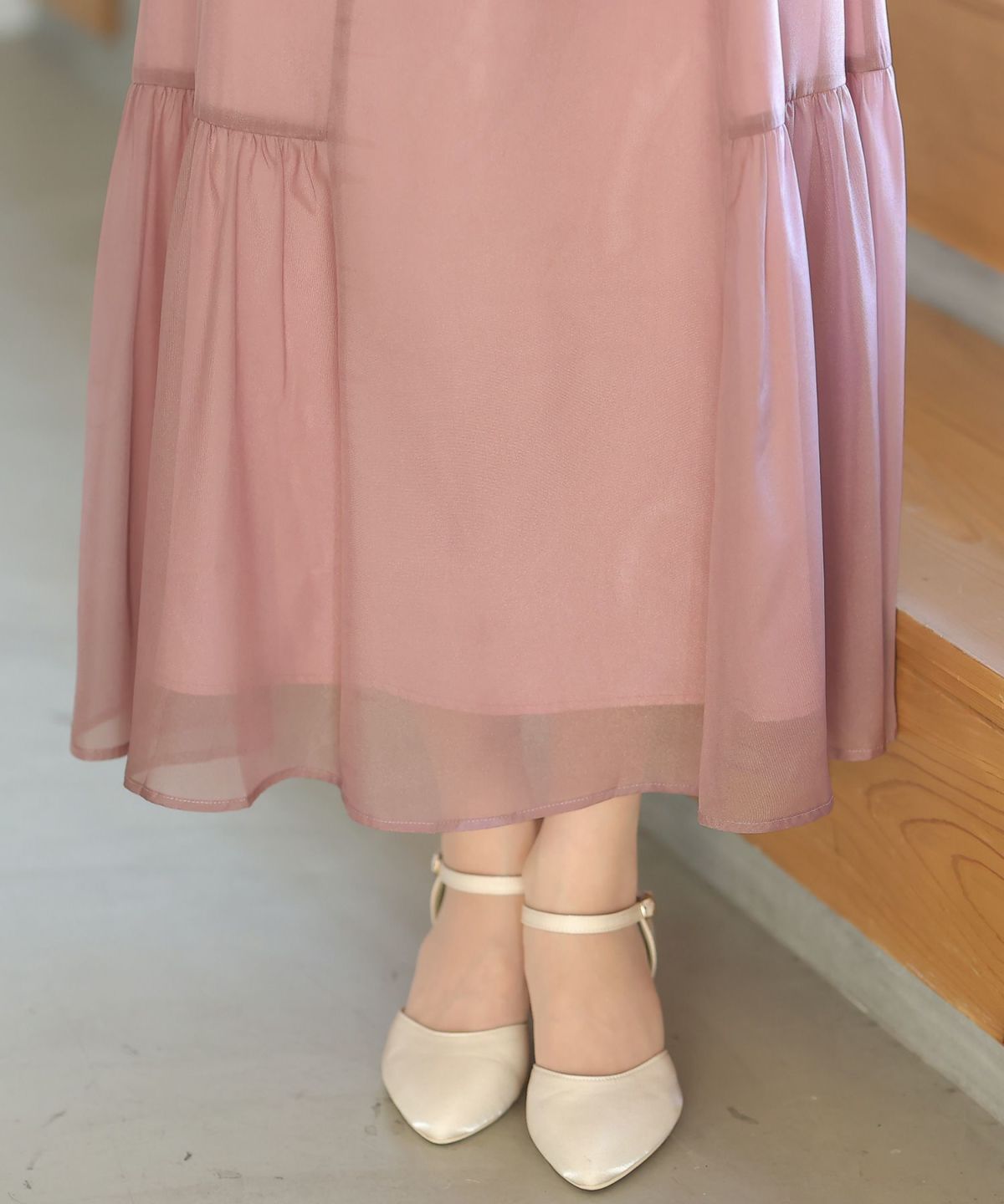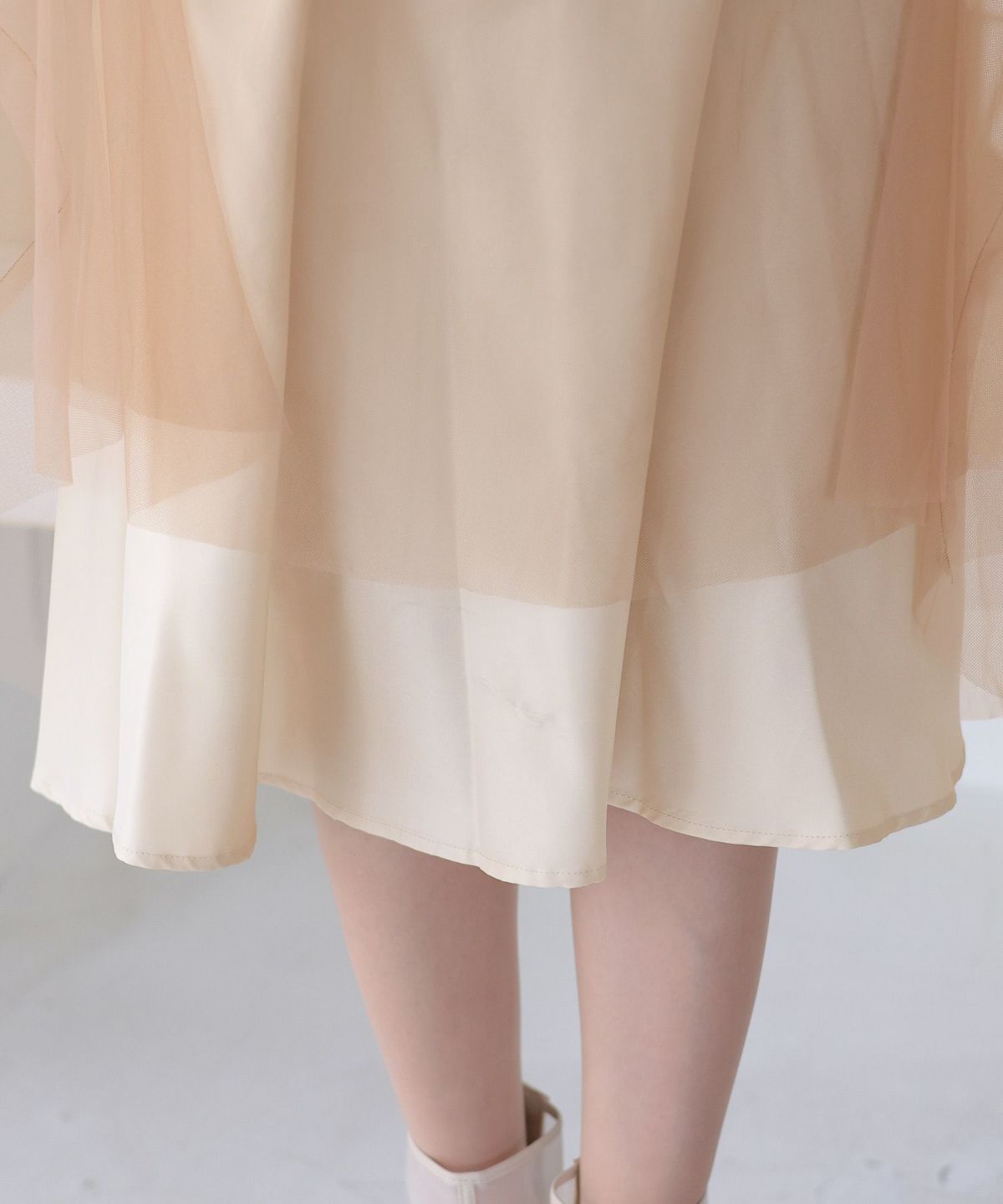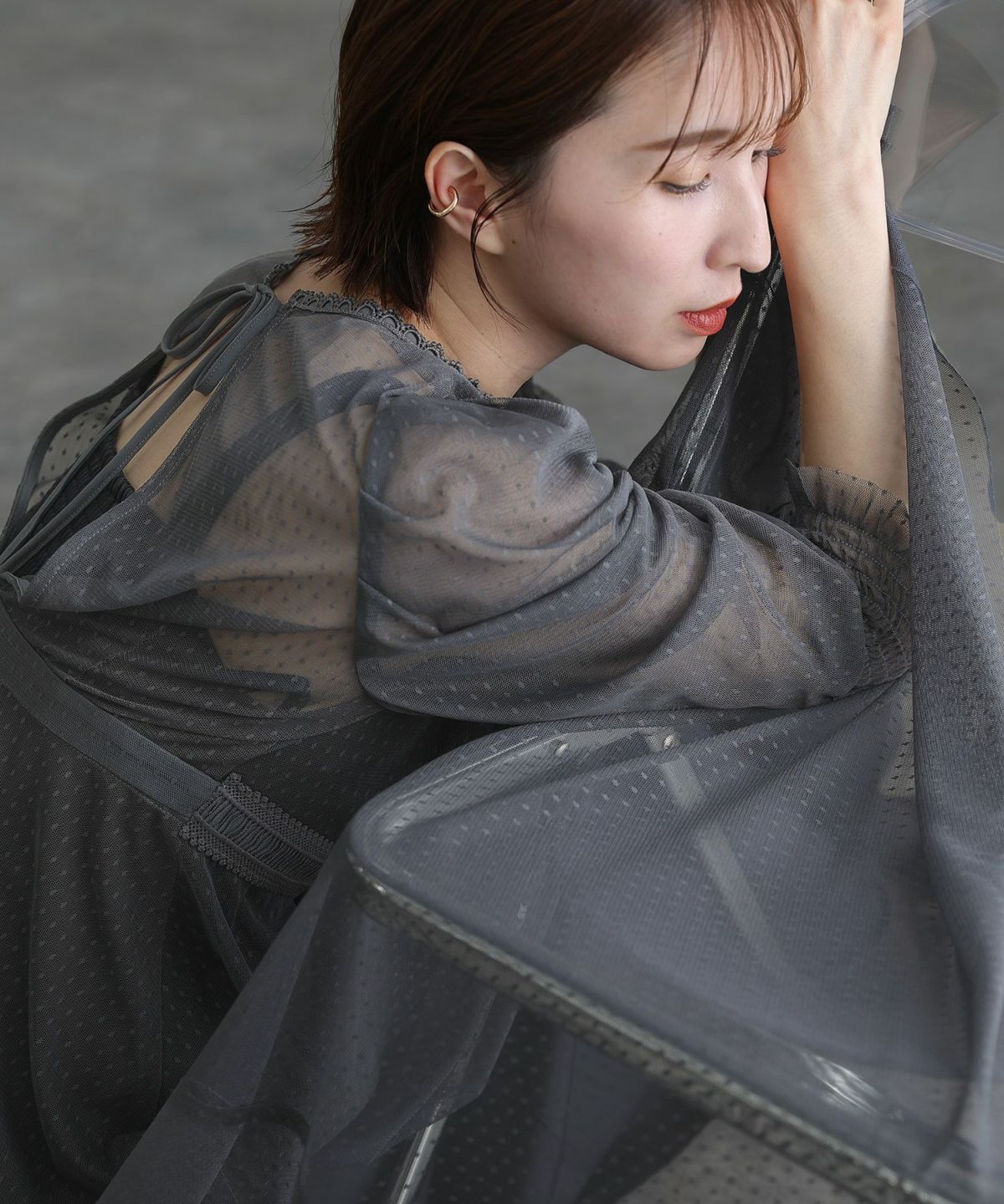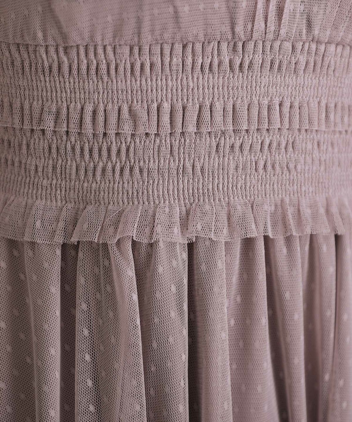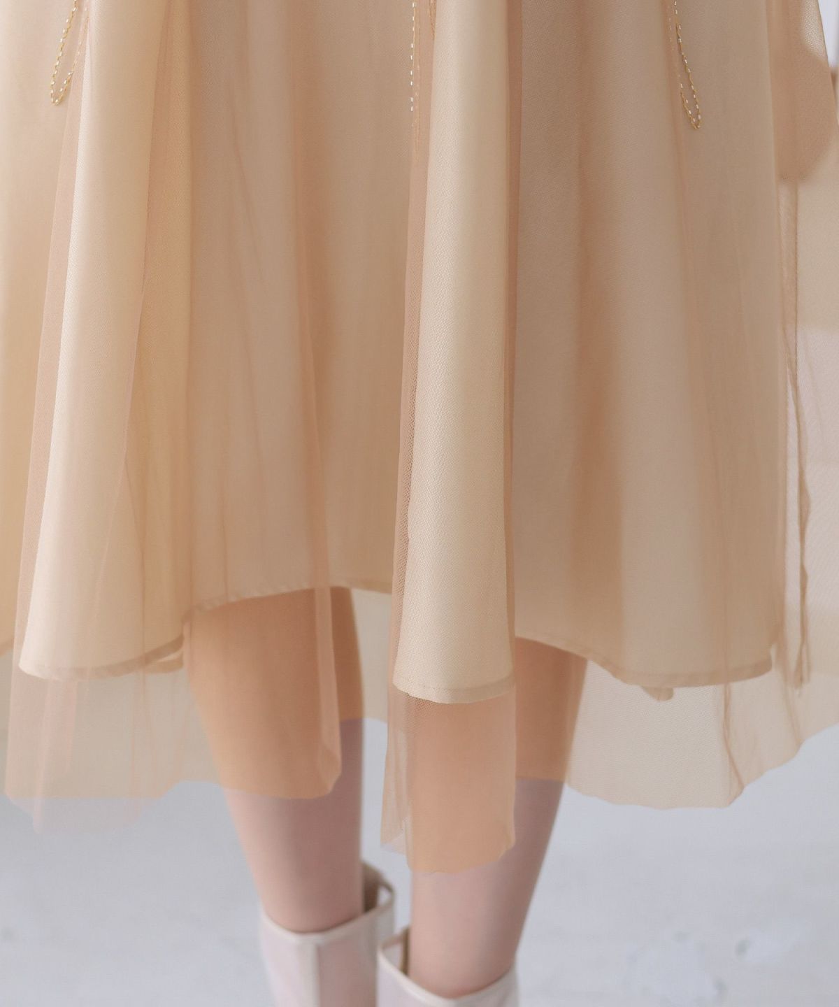 程よい透け感のチュールがアンニュイな雰囲気に ビスチェ風メロウワンピース