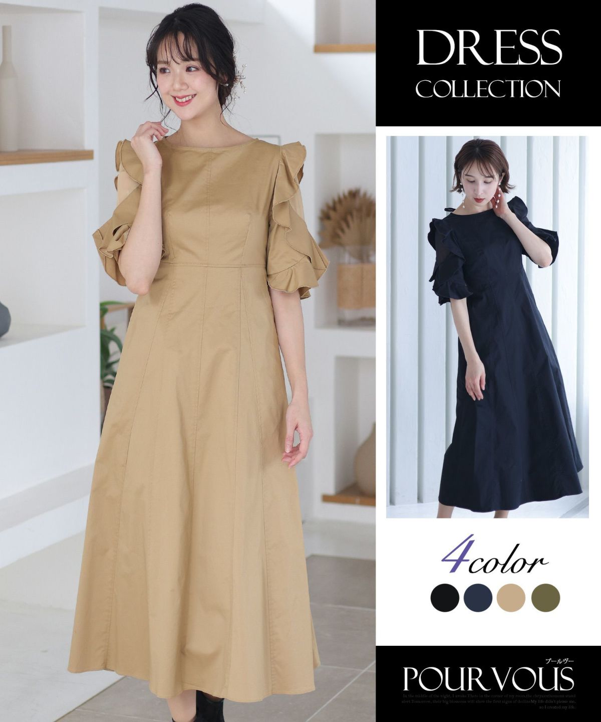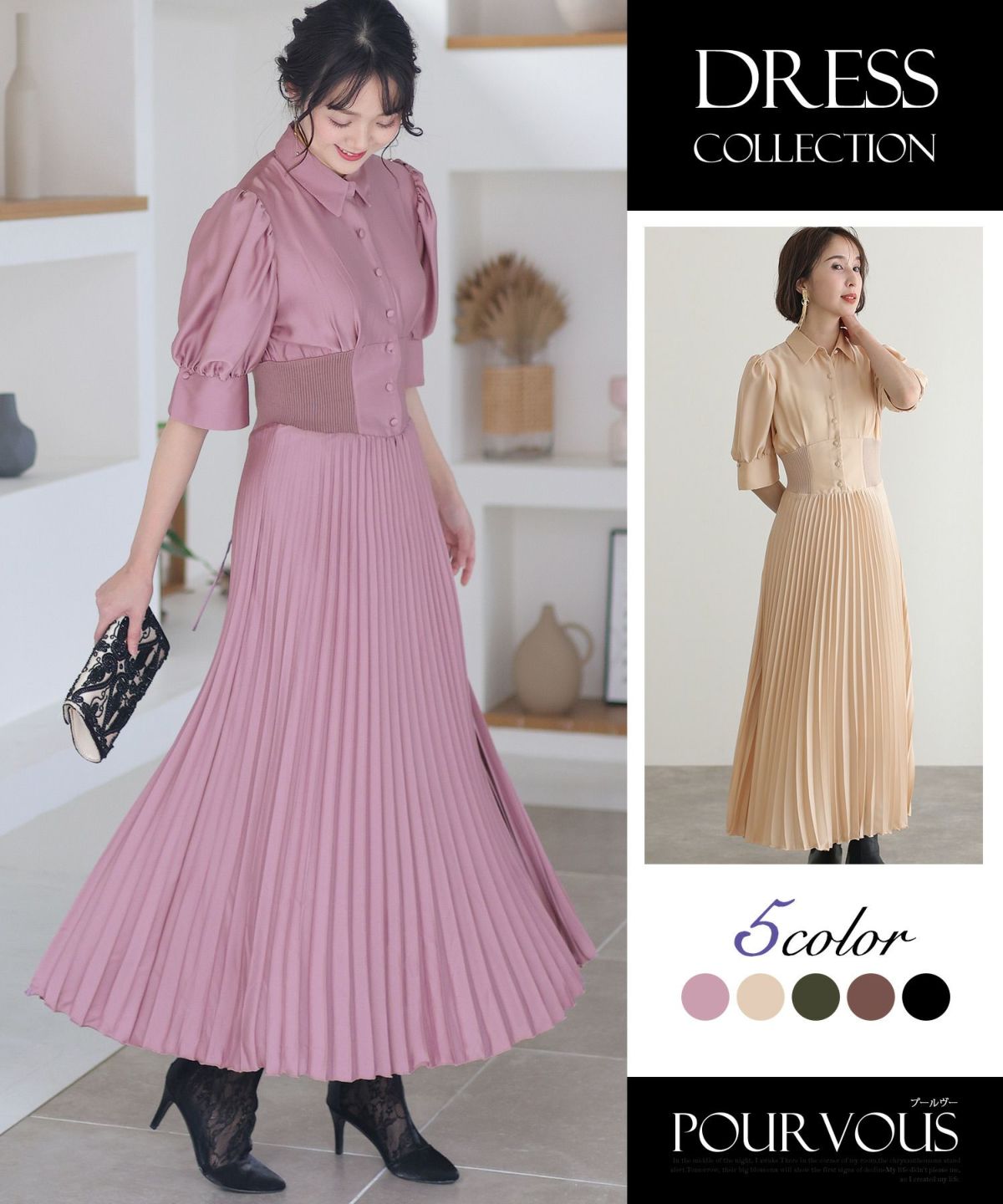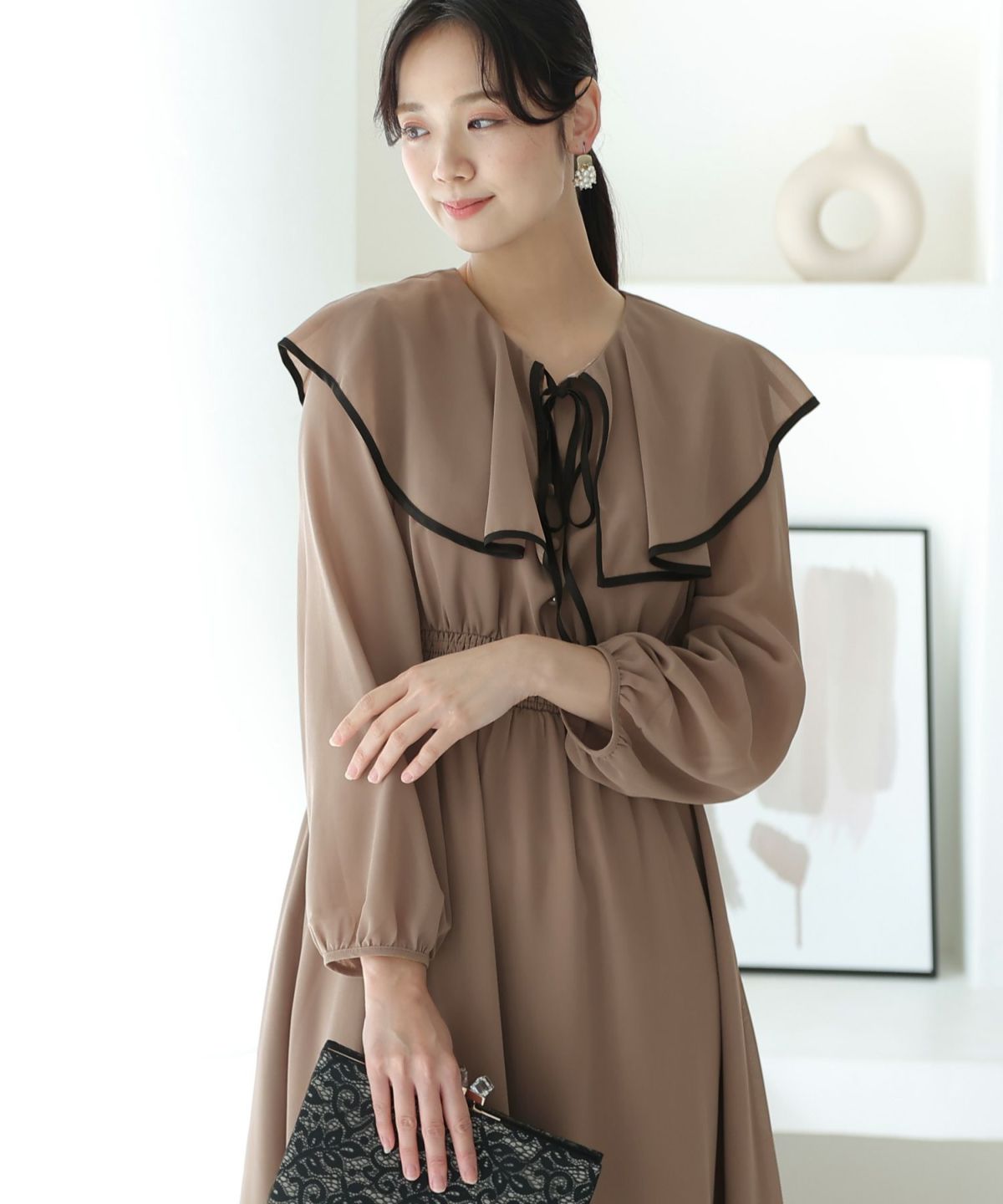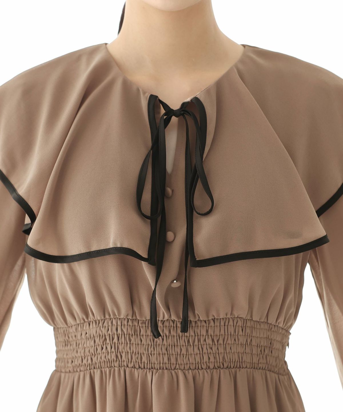 シンプルなデザインとトレンドのくすみカラーがおしゃれ パイピングビッグカラーワンピース