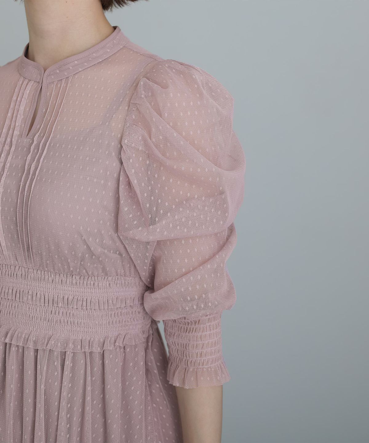 ふわっとシルエットが可愛い パフスリーブチュールワンピース