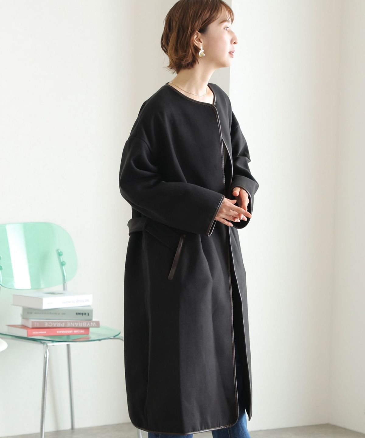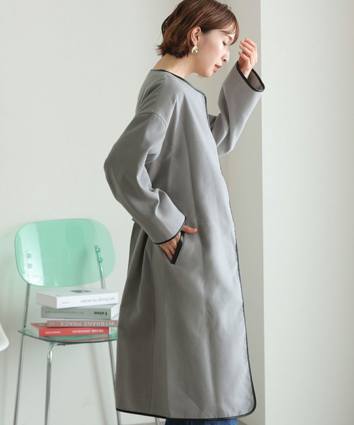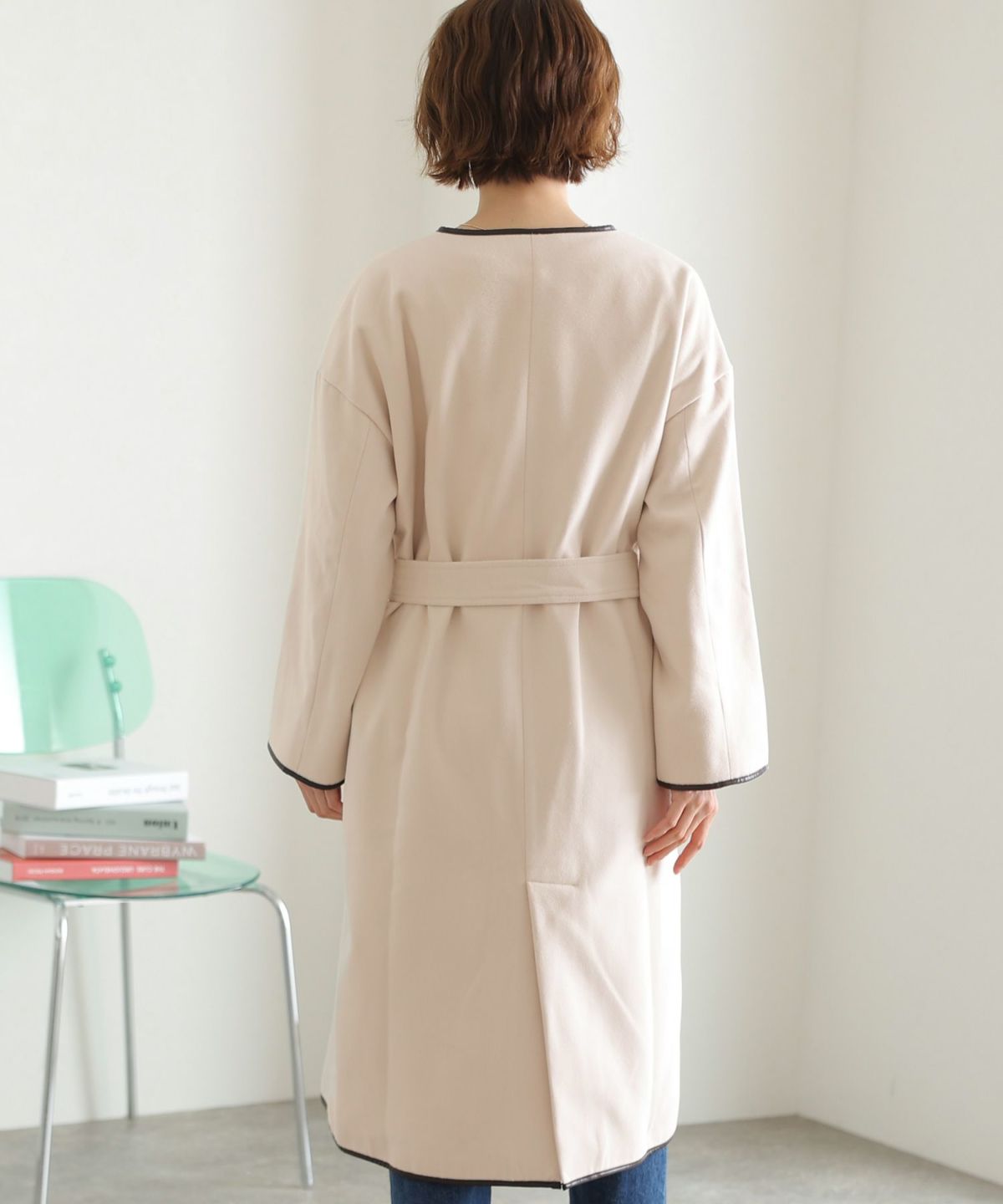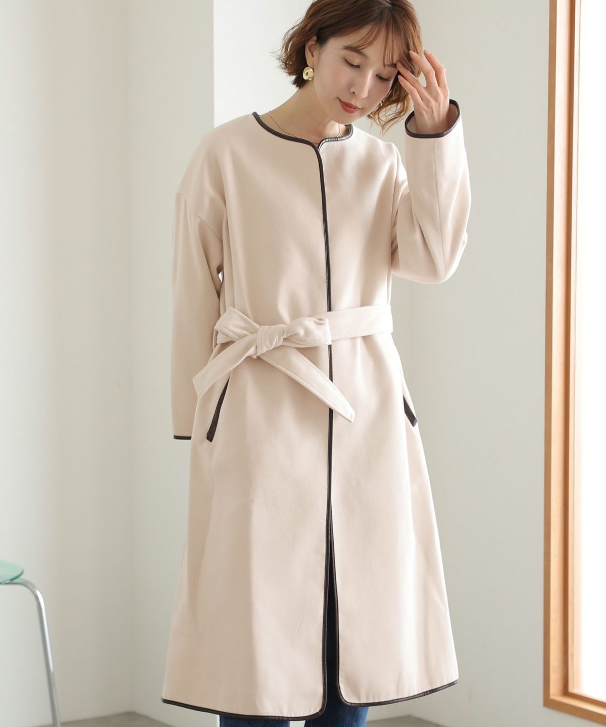 襟と袖の配色がこだわりのラップコート 衿配色ラップコート
