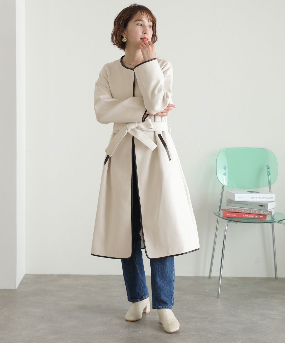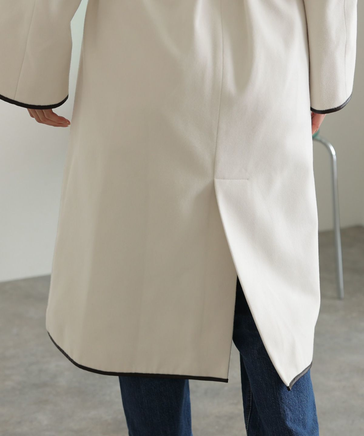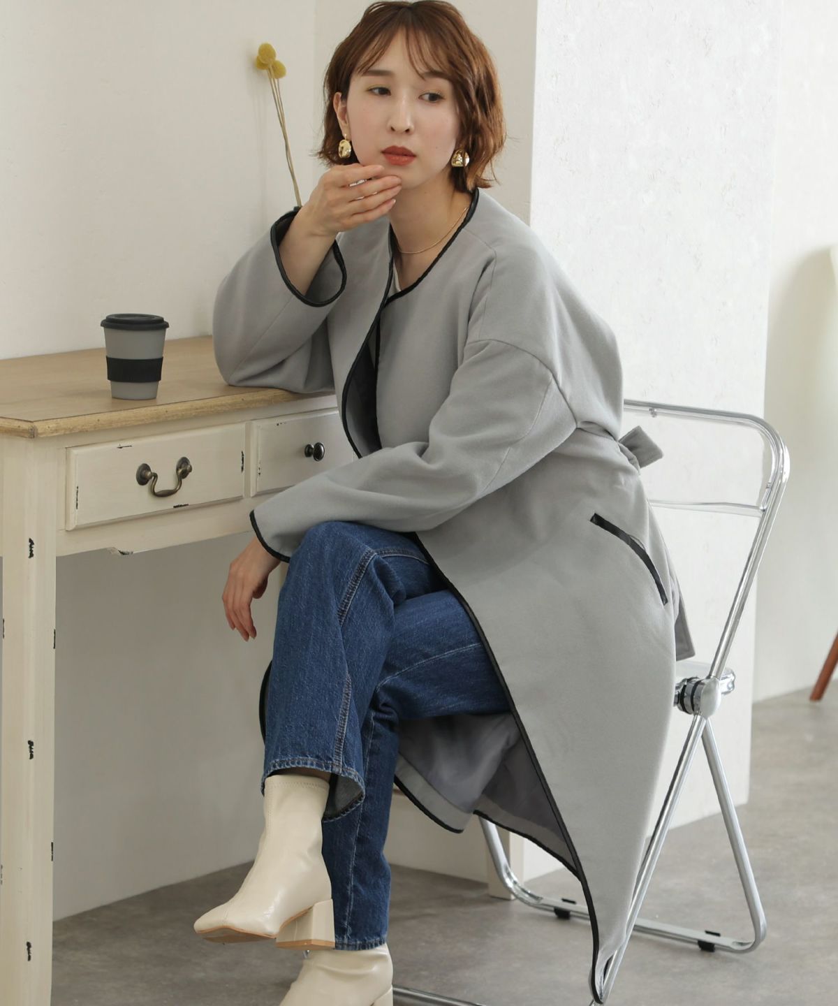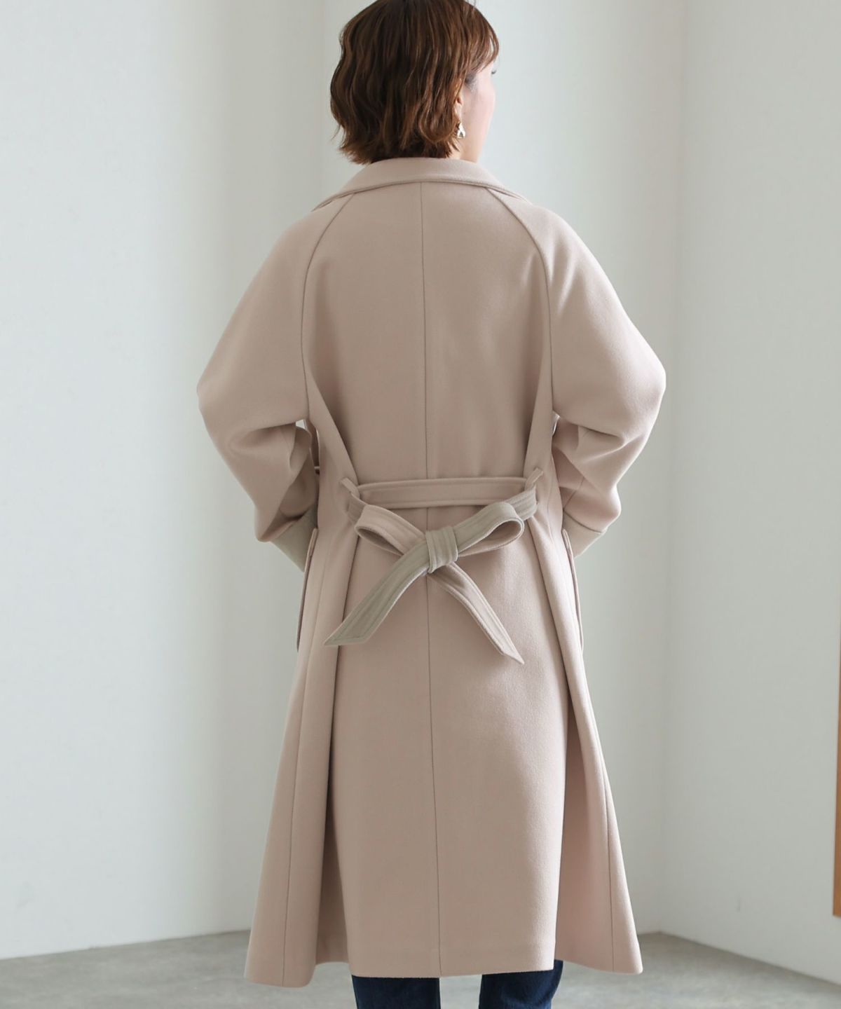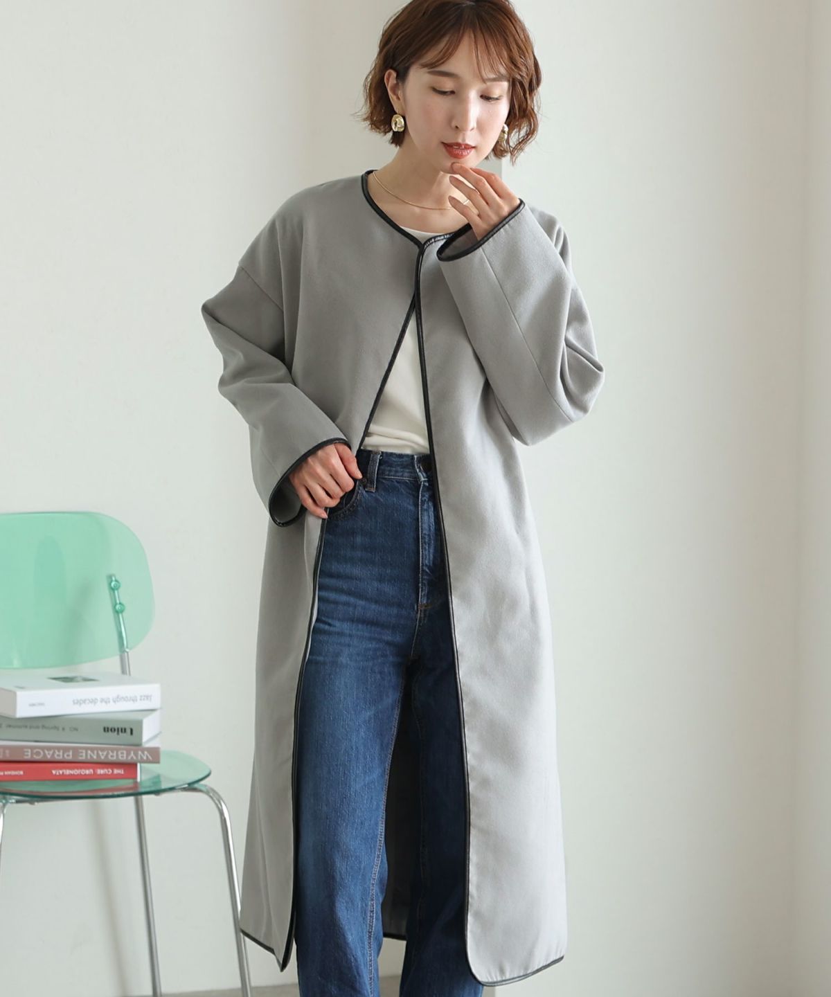 襟と袖の配色がこだわりのラップコート 衿配色ラップコート