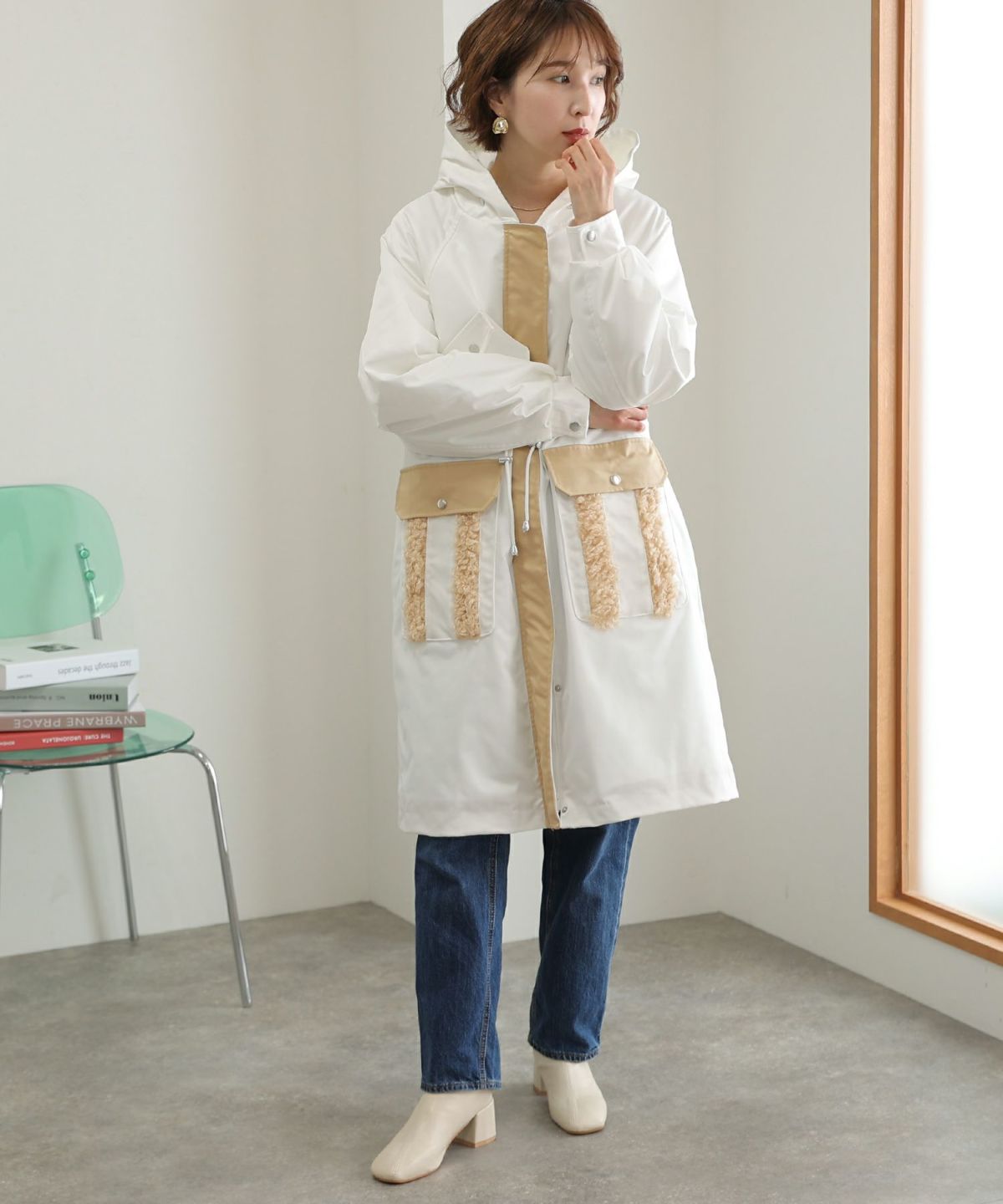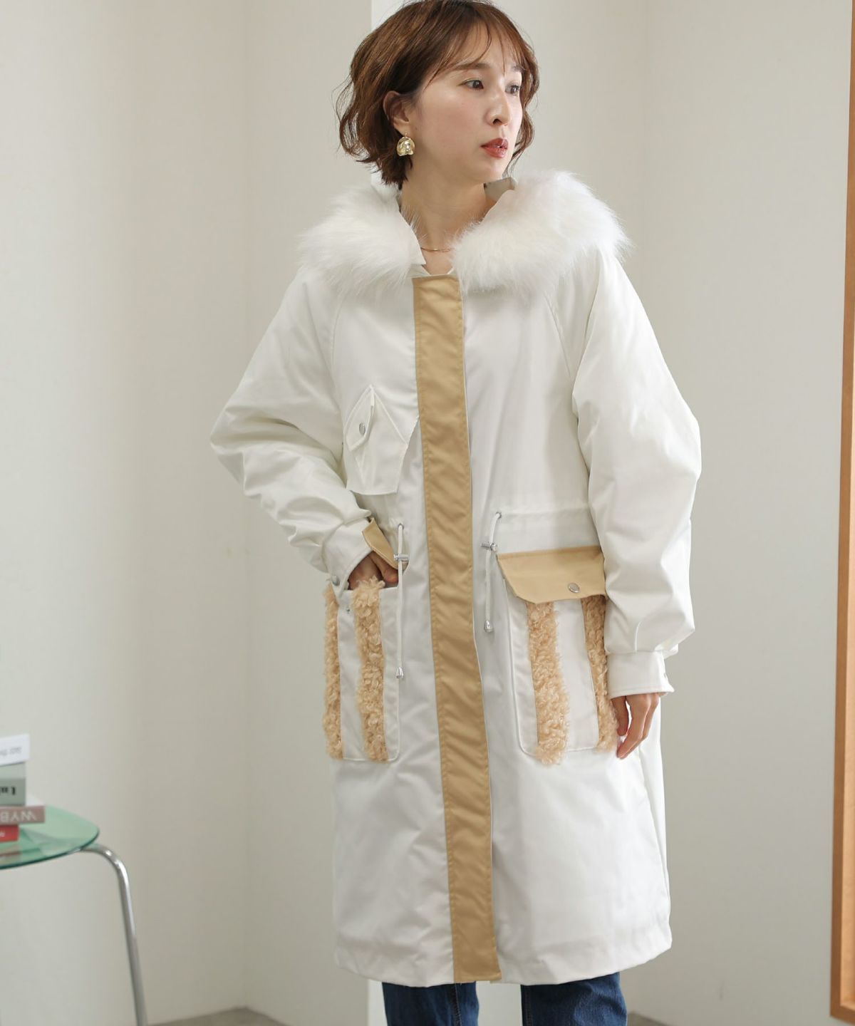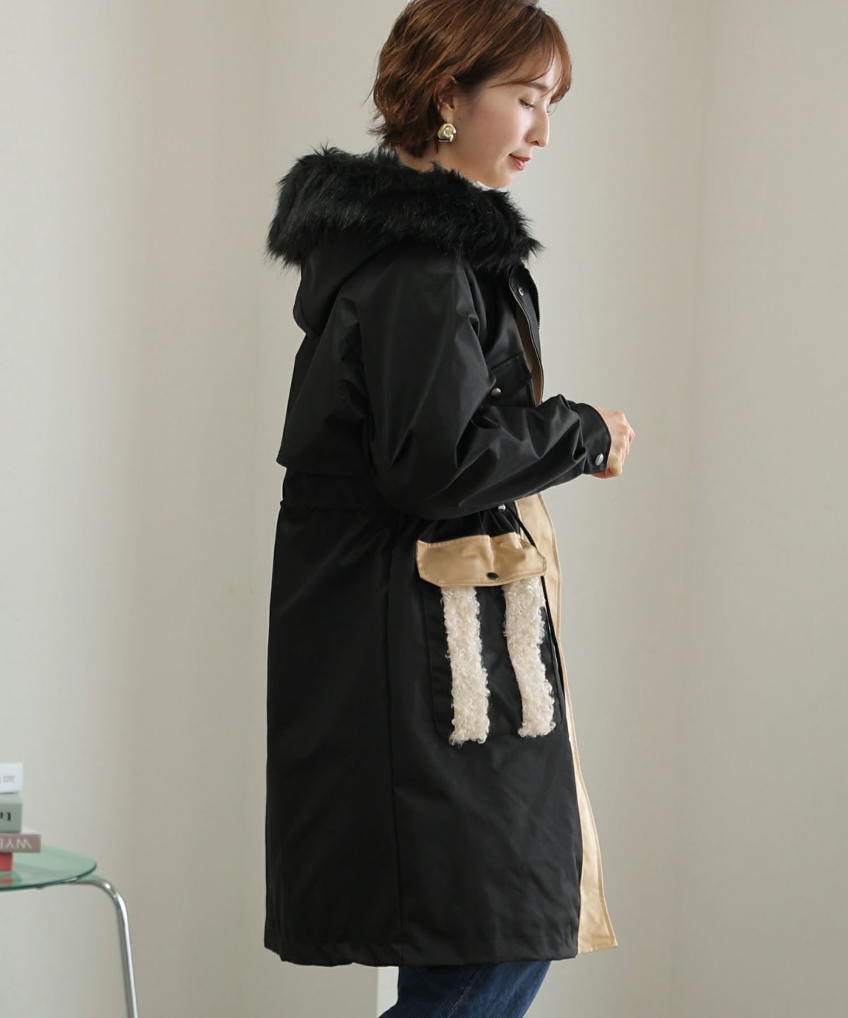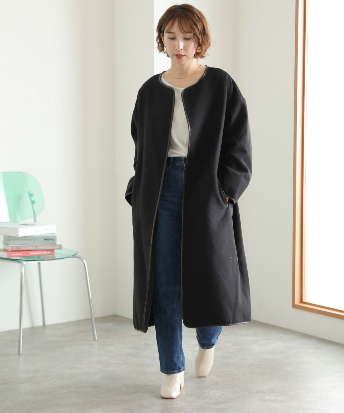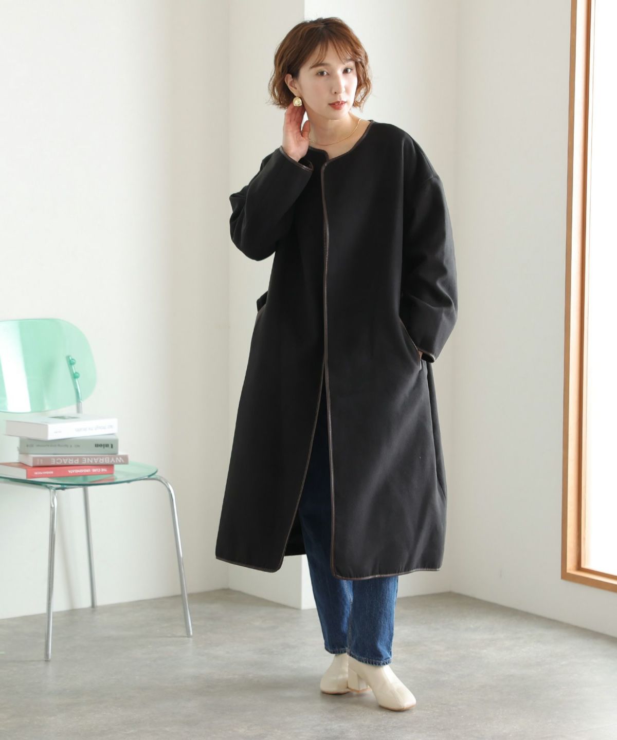 襟と袖の配色がこだわりのラップコート 衿配色ラップコート