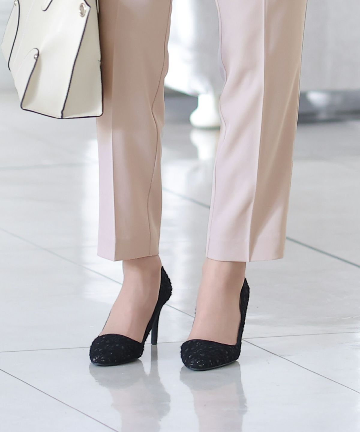 大人な女性コーデにおすすめなシースルーブーティ シースルー切替ブーティ