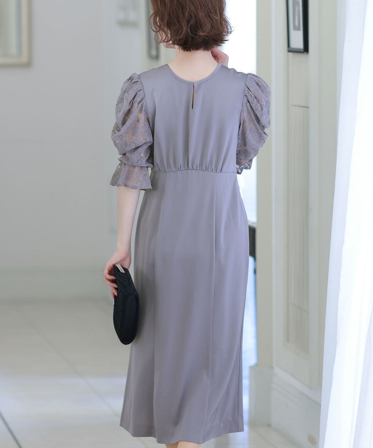 シンプルで上品なデザイン レースギャザースリーブワンピース