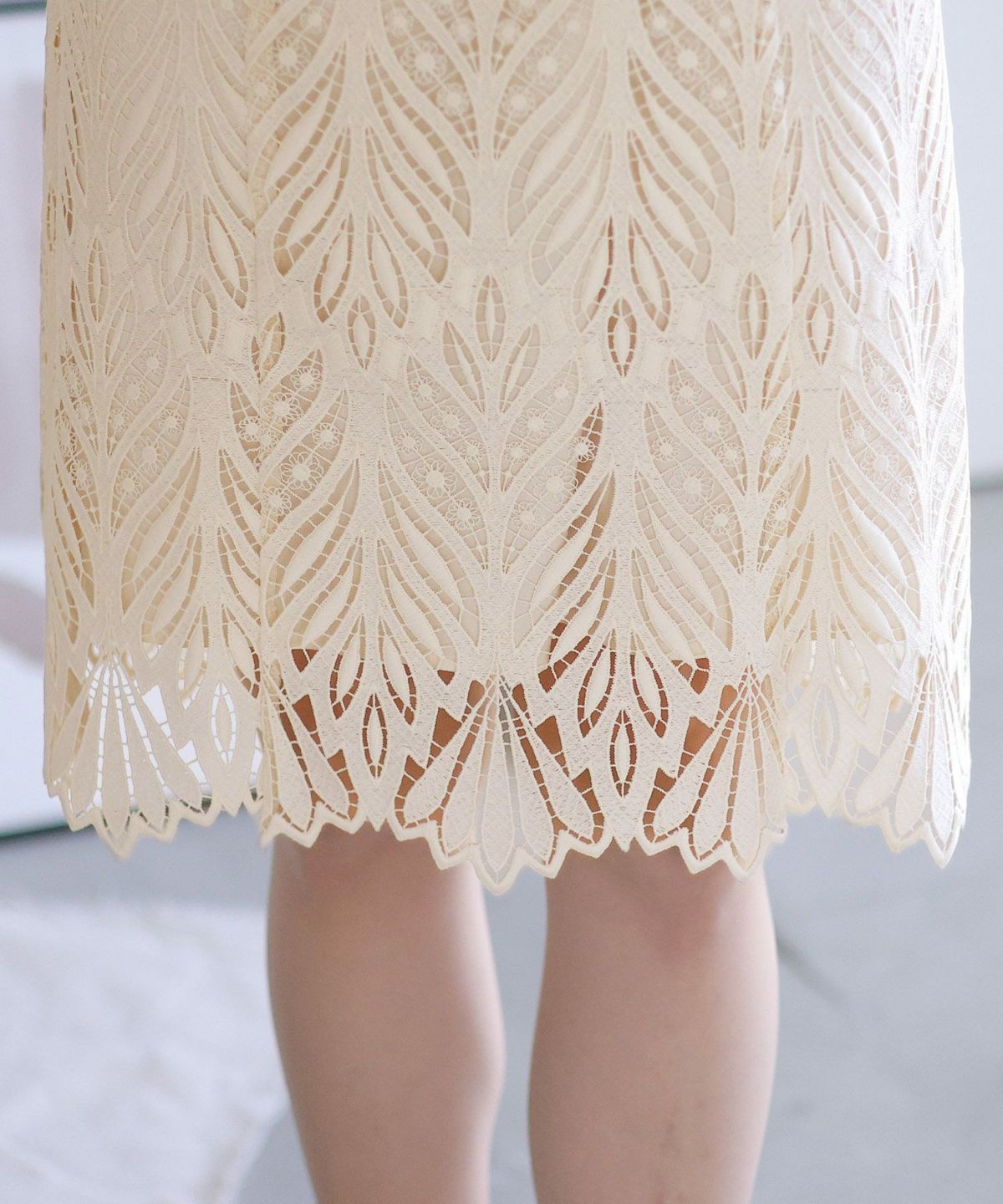 幾何学模様×レース スカラップレースワンピース