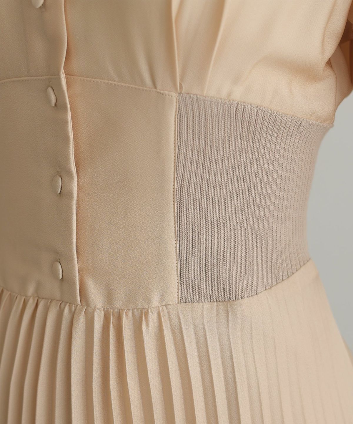 ウエストのリボンモチーフがかわいいワンピース プリーツスカートビスチェドレス