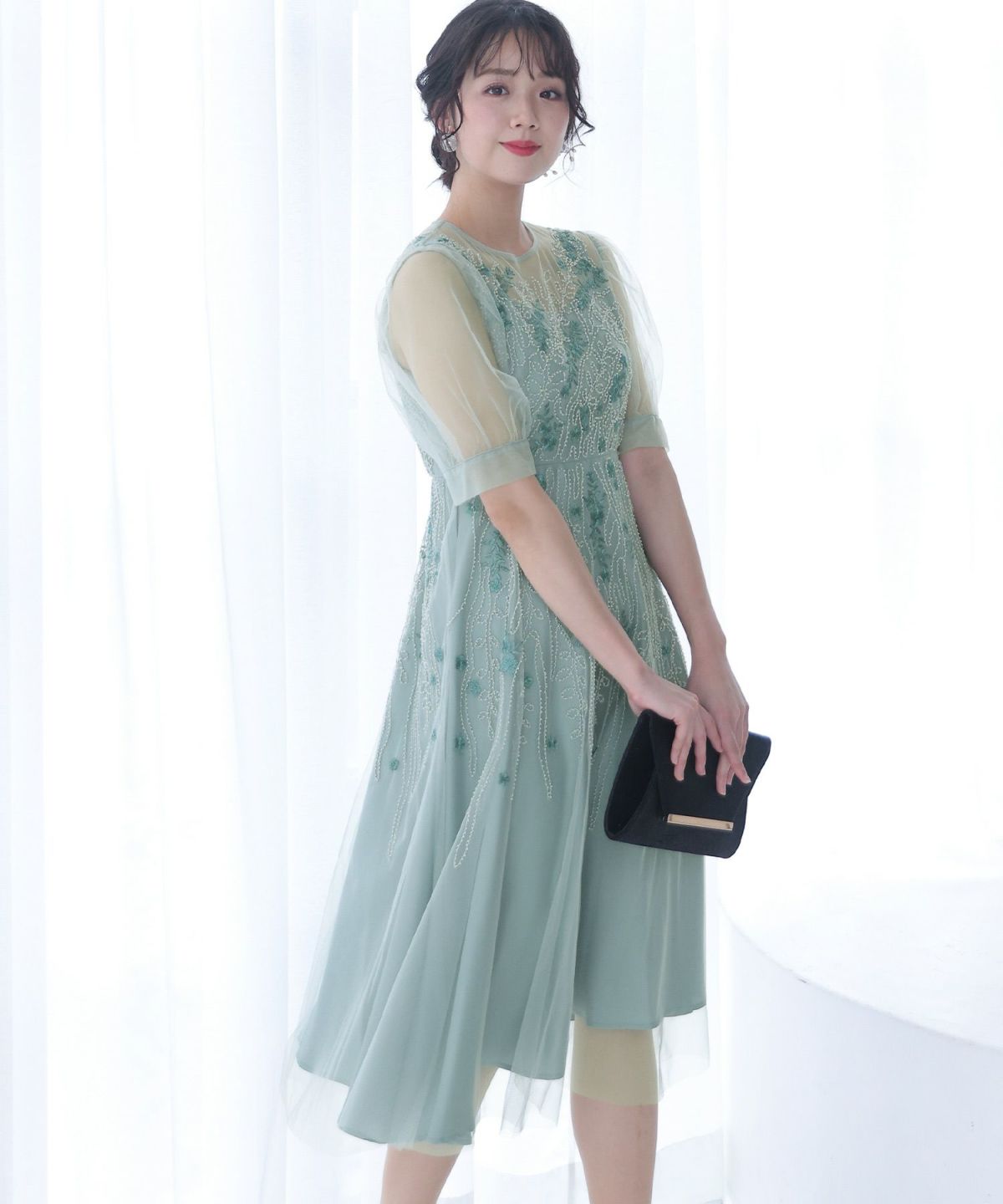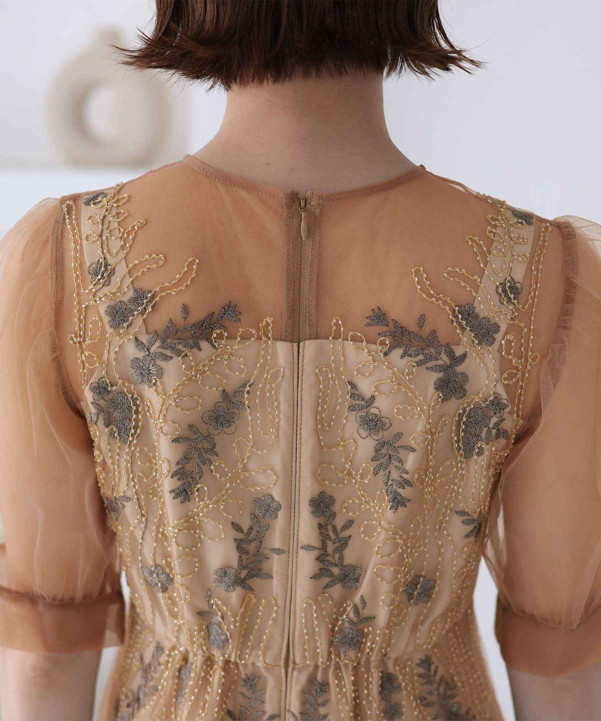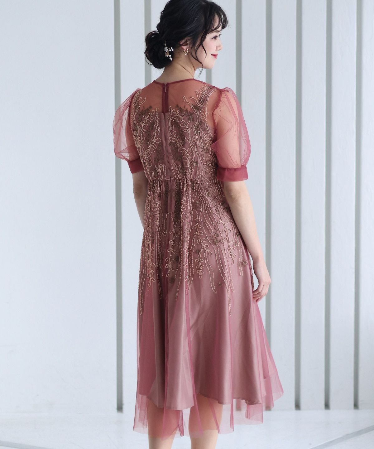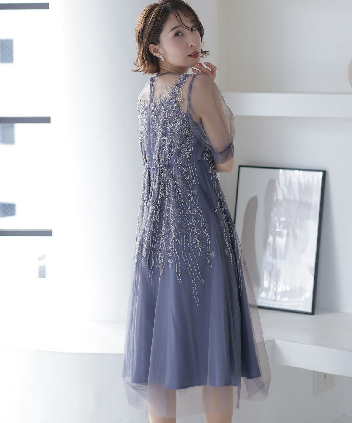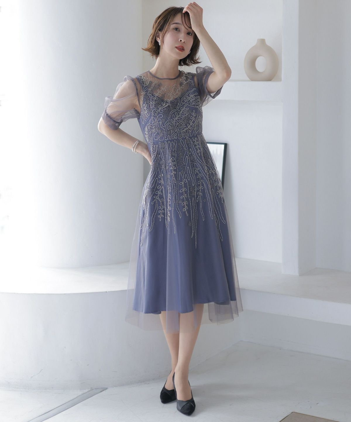 チュールレースが煌びやか ビーズ刺繍ワンピース