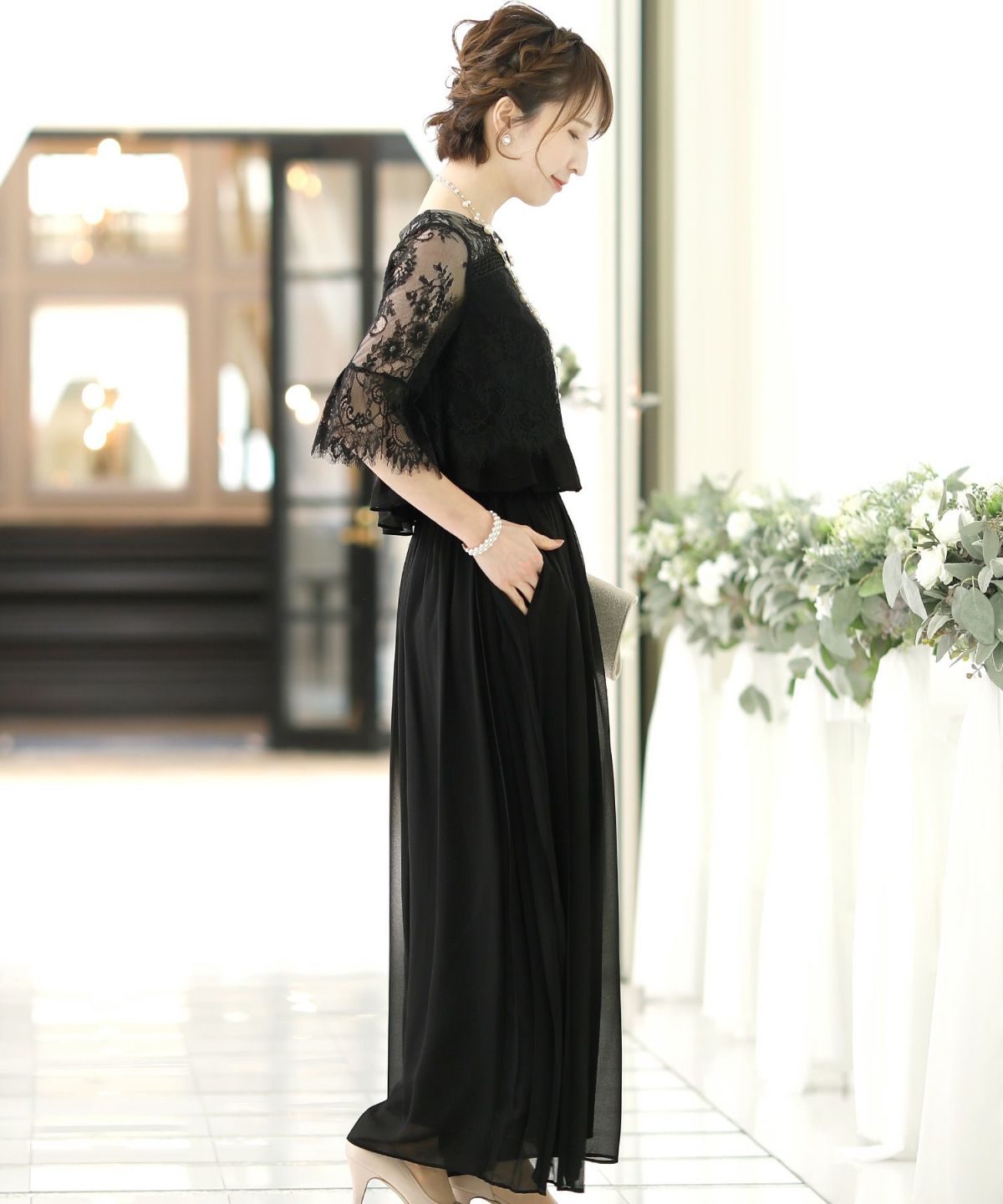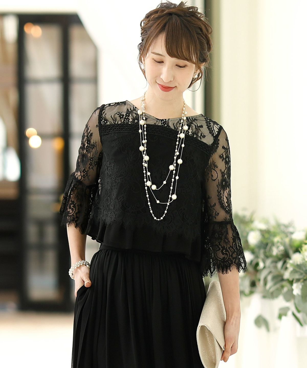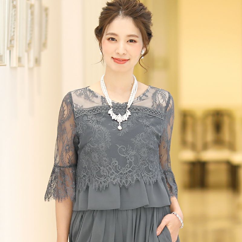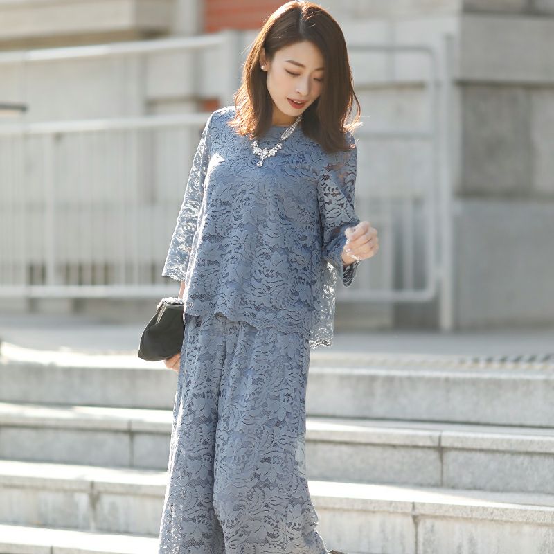上品で楽ちんな優秀セットアップ♪ スカラップレースセットアップパンツドレス