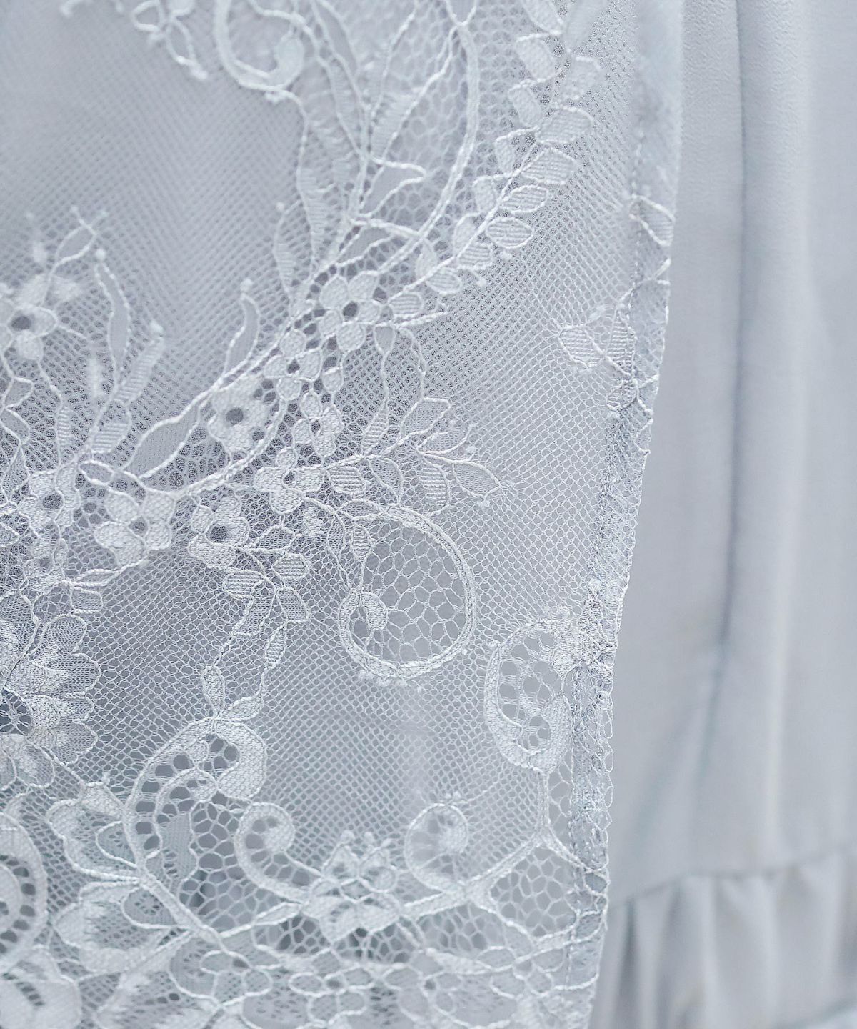 レースがデコルテを美しく彩る ベルスリーブレースワンピース