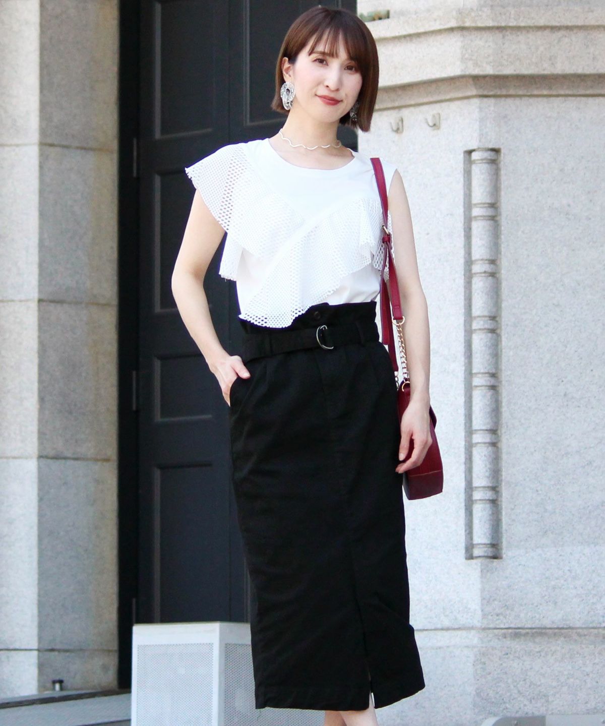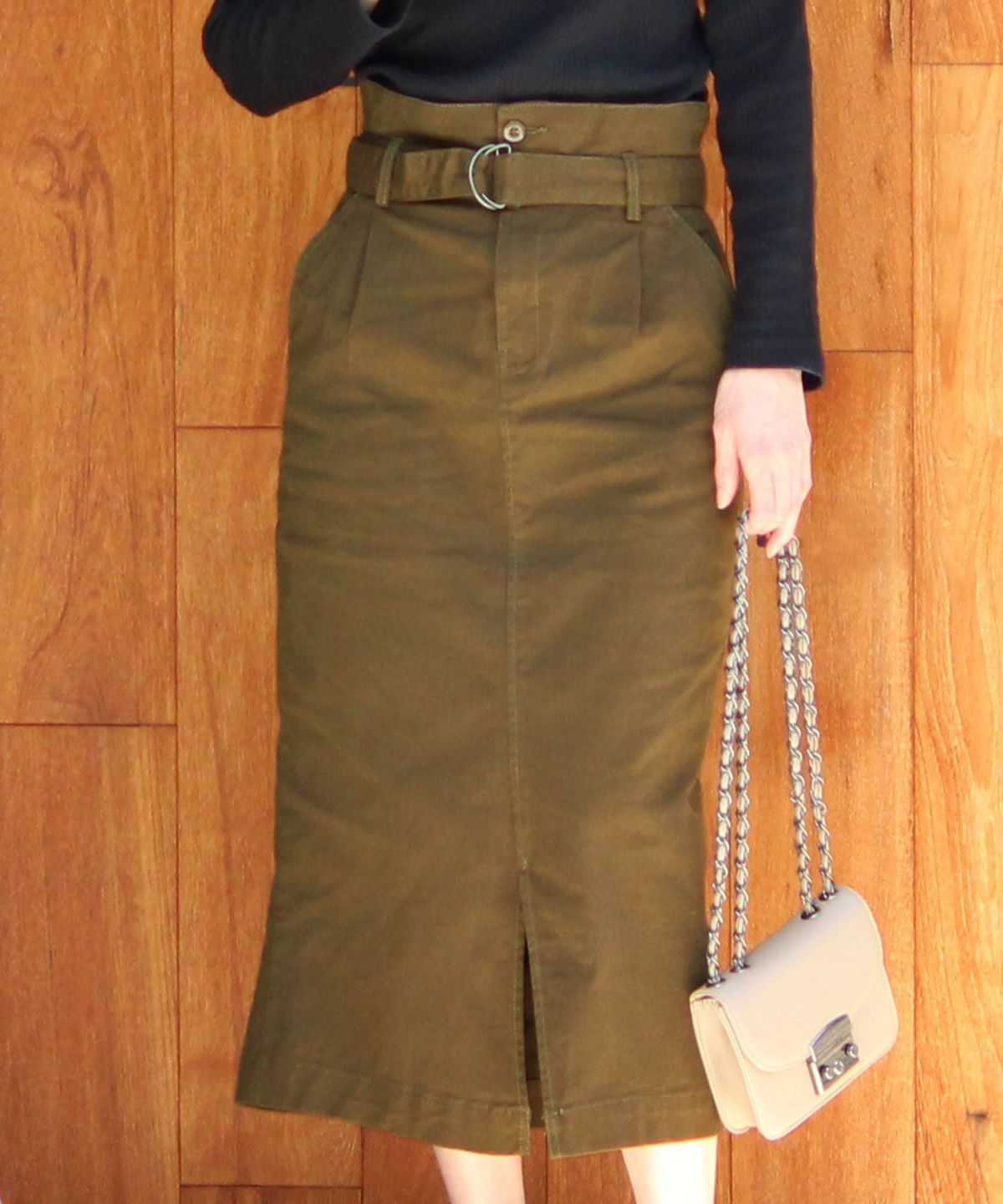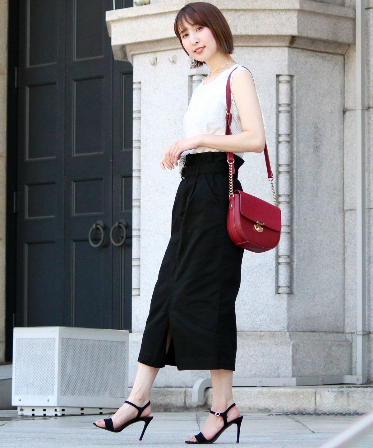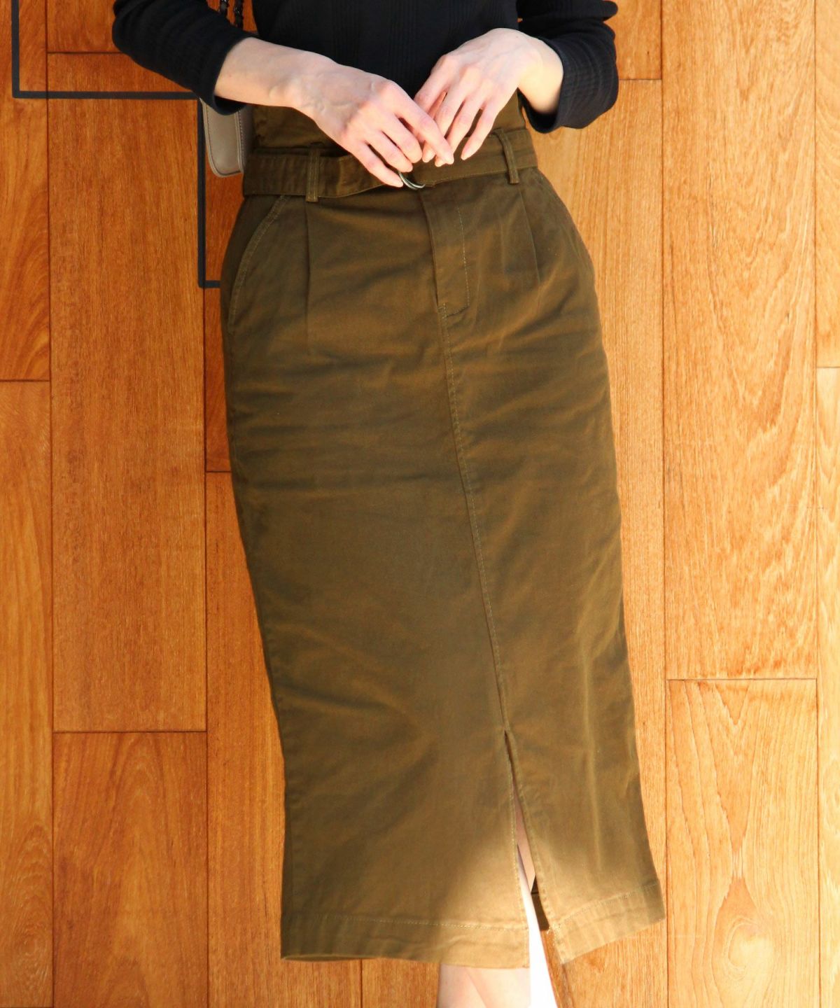 スタイリッシュな着こなし叶うハイウエストスカート ボタンベルトタイトスカート
