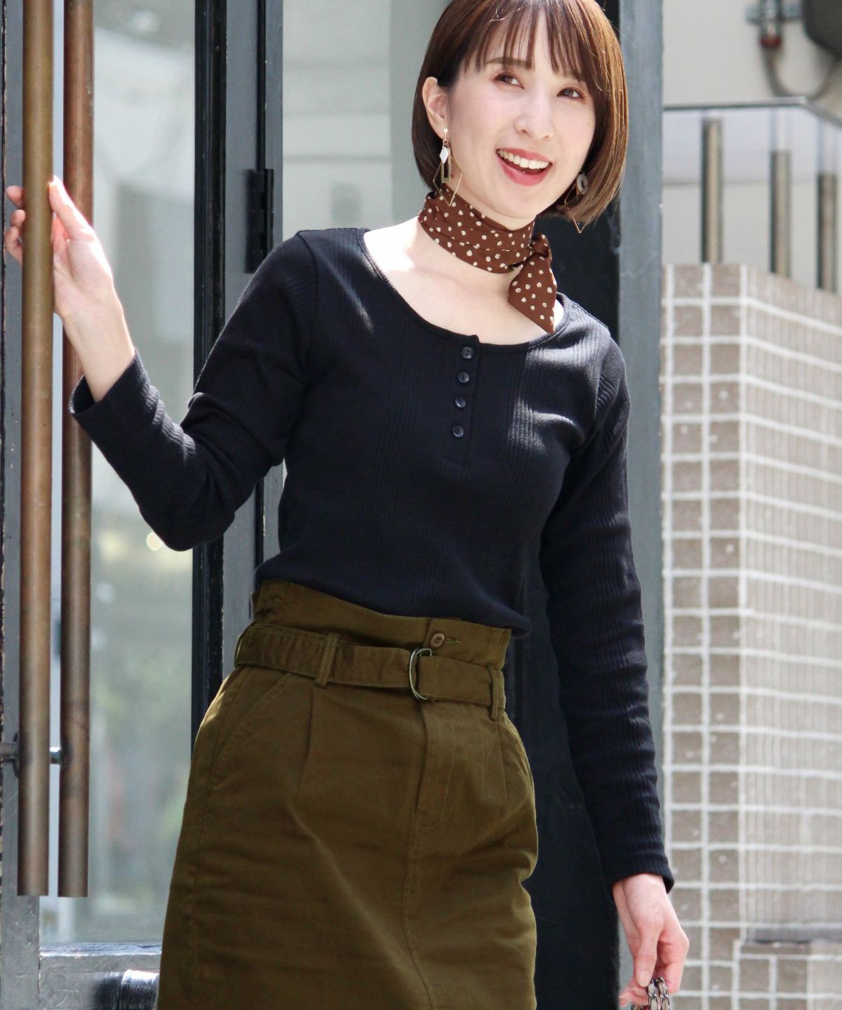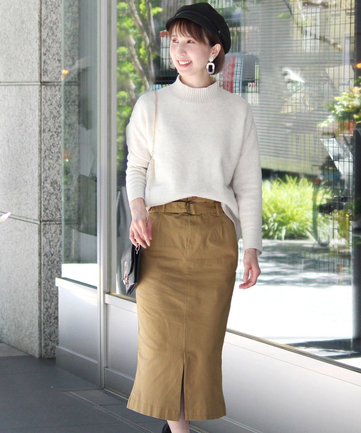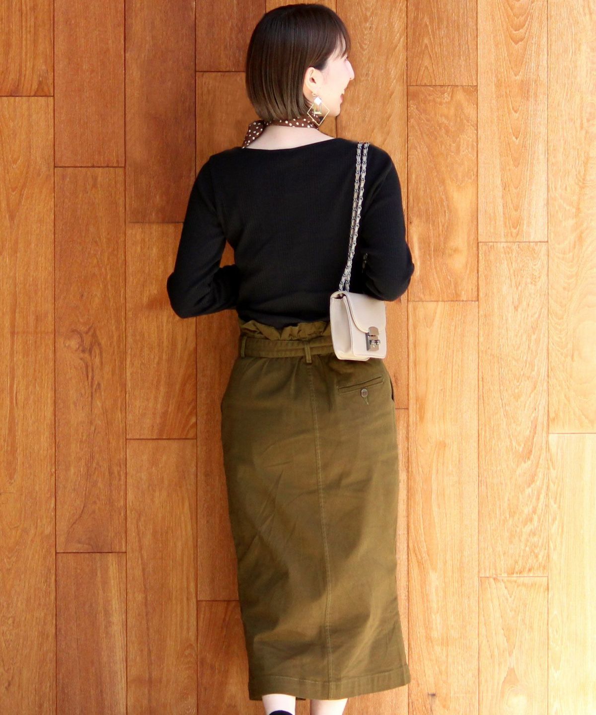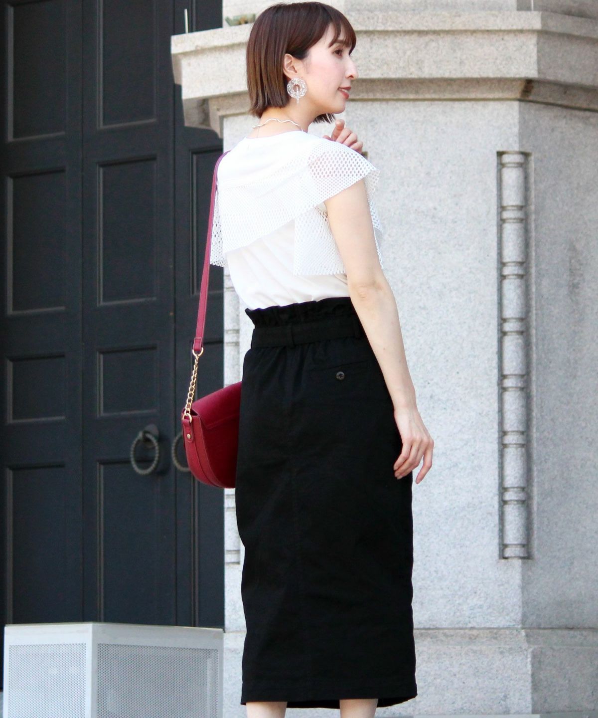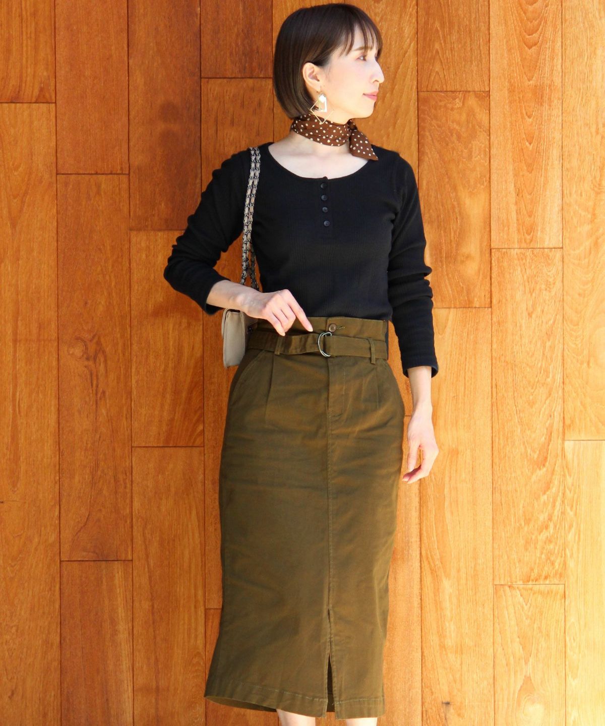 スタイリッシュな着こなし叶うハイウエストスカート ボタンベルトタイトスカート