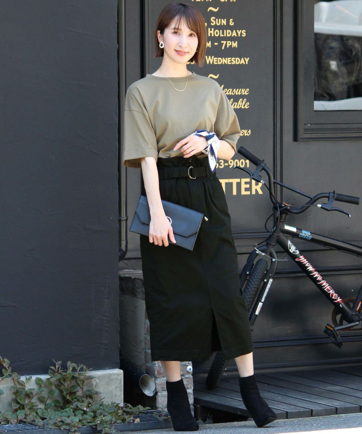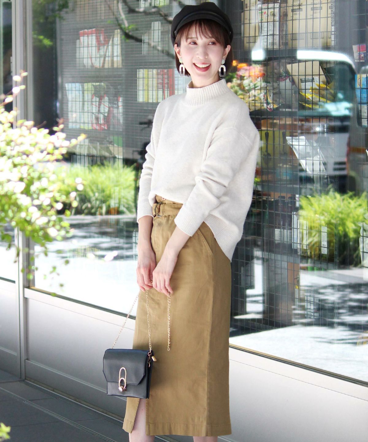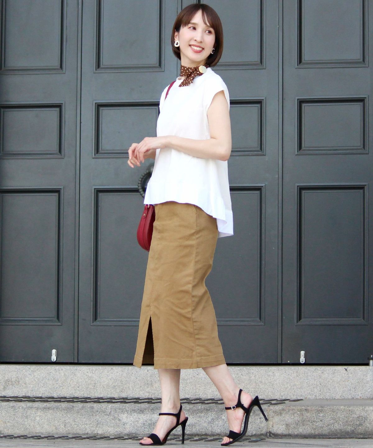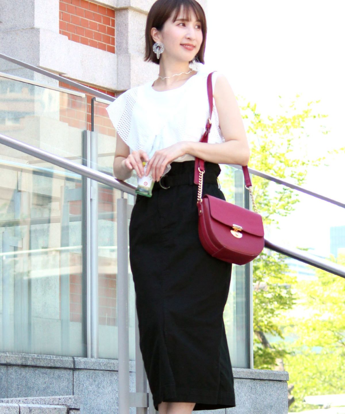 スタイリッシュな着こなし叶うハイウエストスカート ボタンベルトタイトスカート
