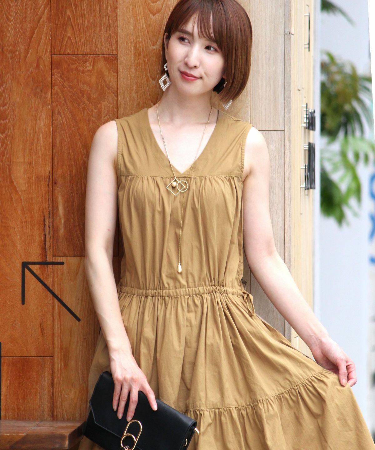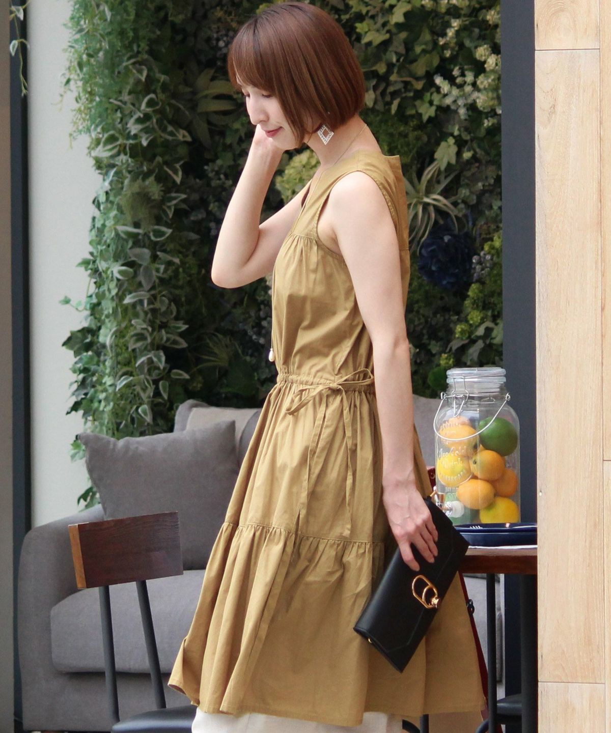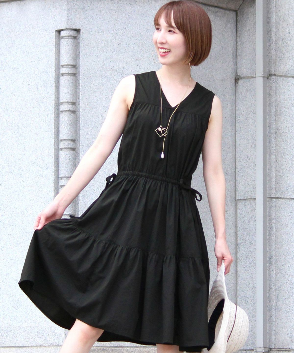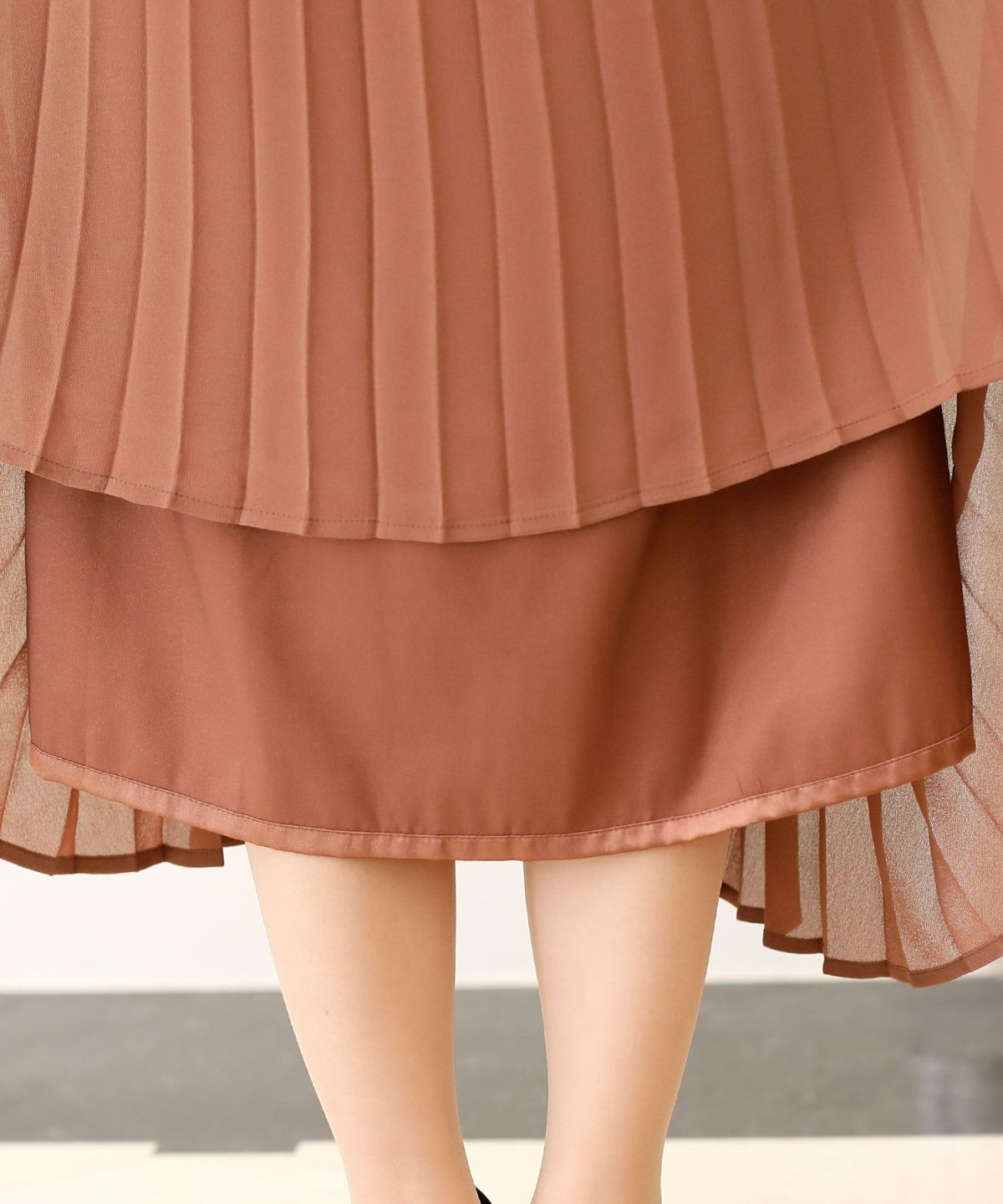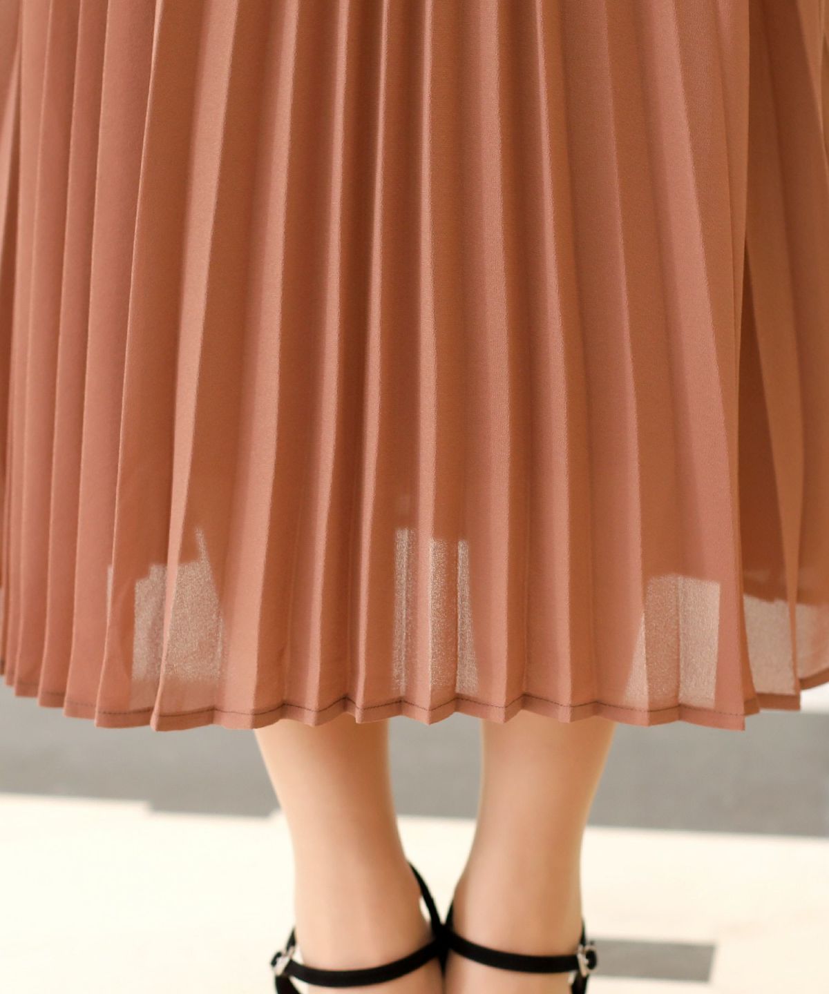 シルエットがキレイに見える シャーリングプリーツワンピース
