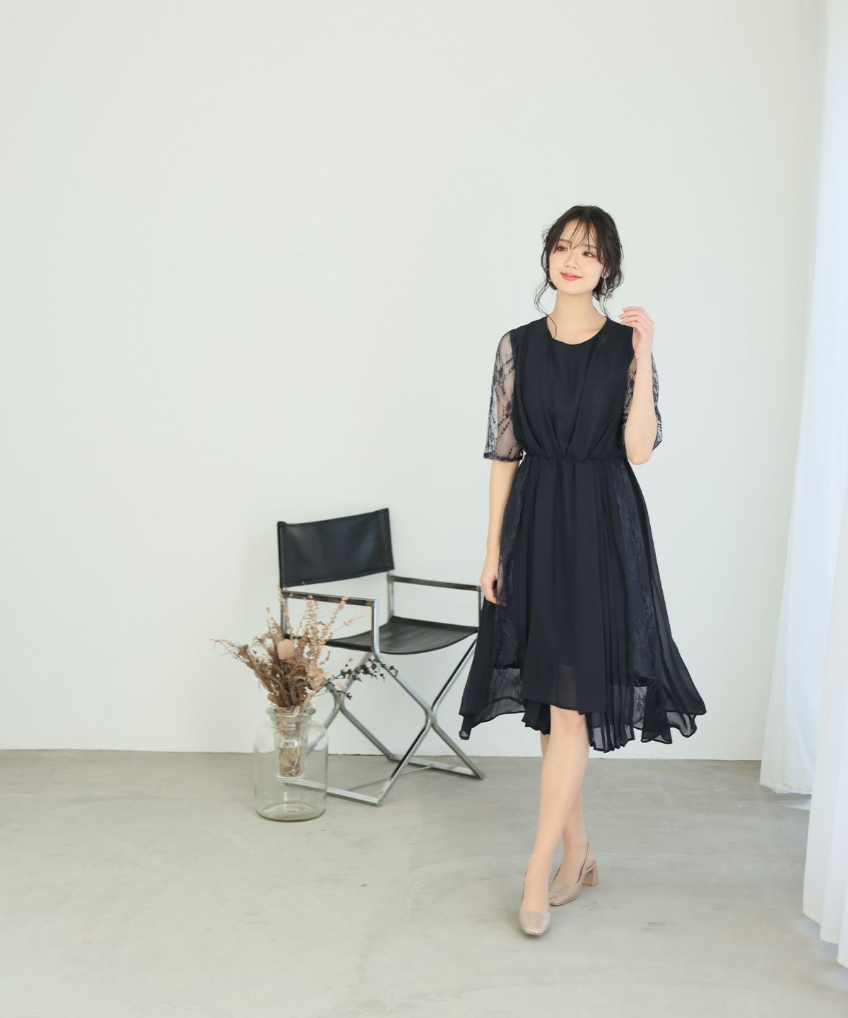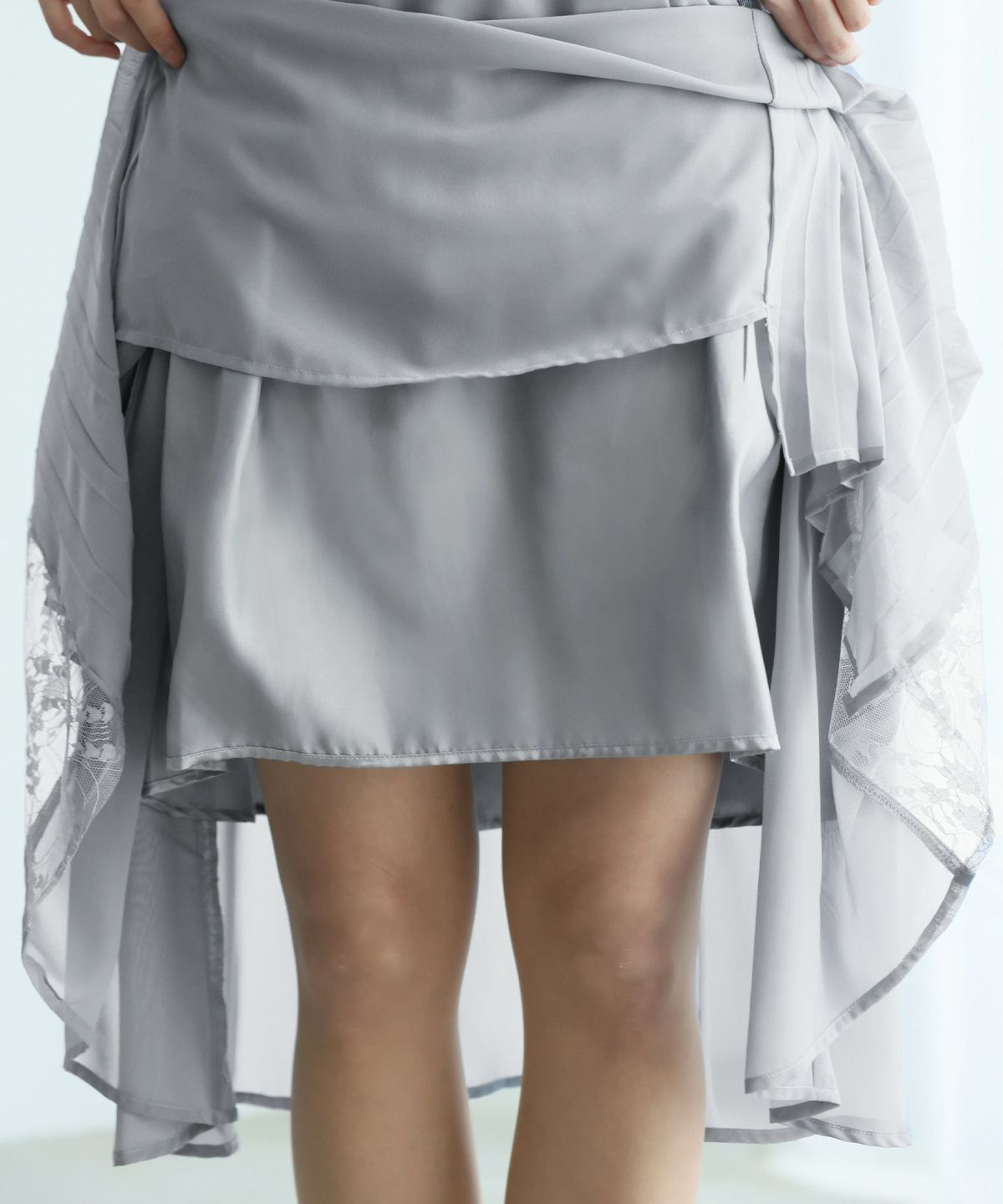 プリーツとレースの異素材切り替えが可愛いフレアスカート♪