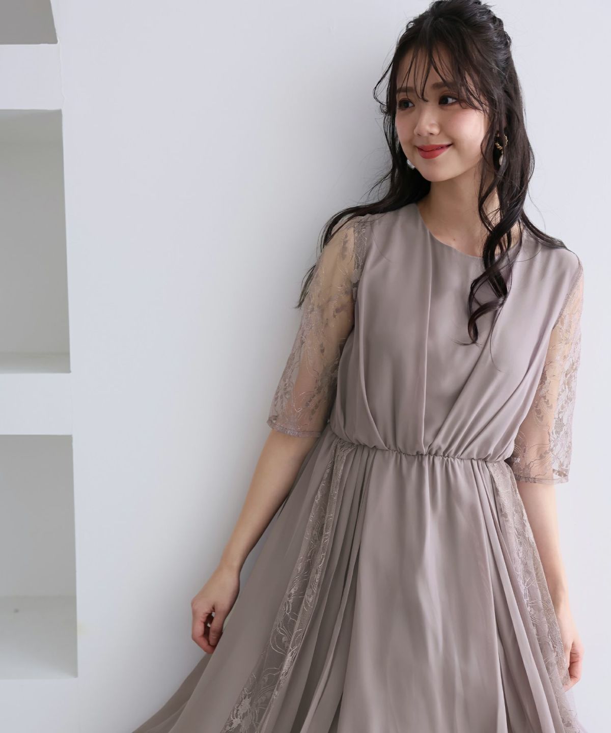 なめらかなでふわりとした生地感。レースが繊細な印象をプラス。
