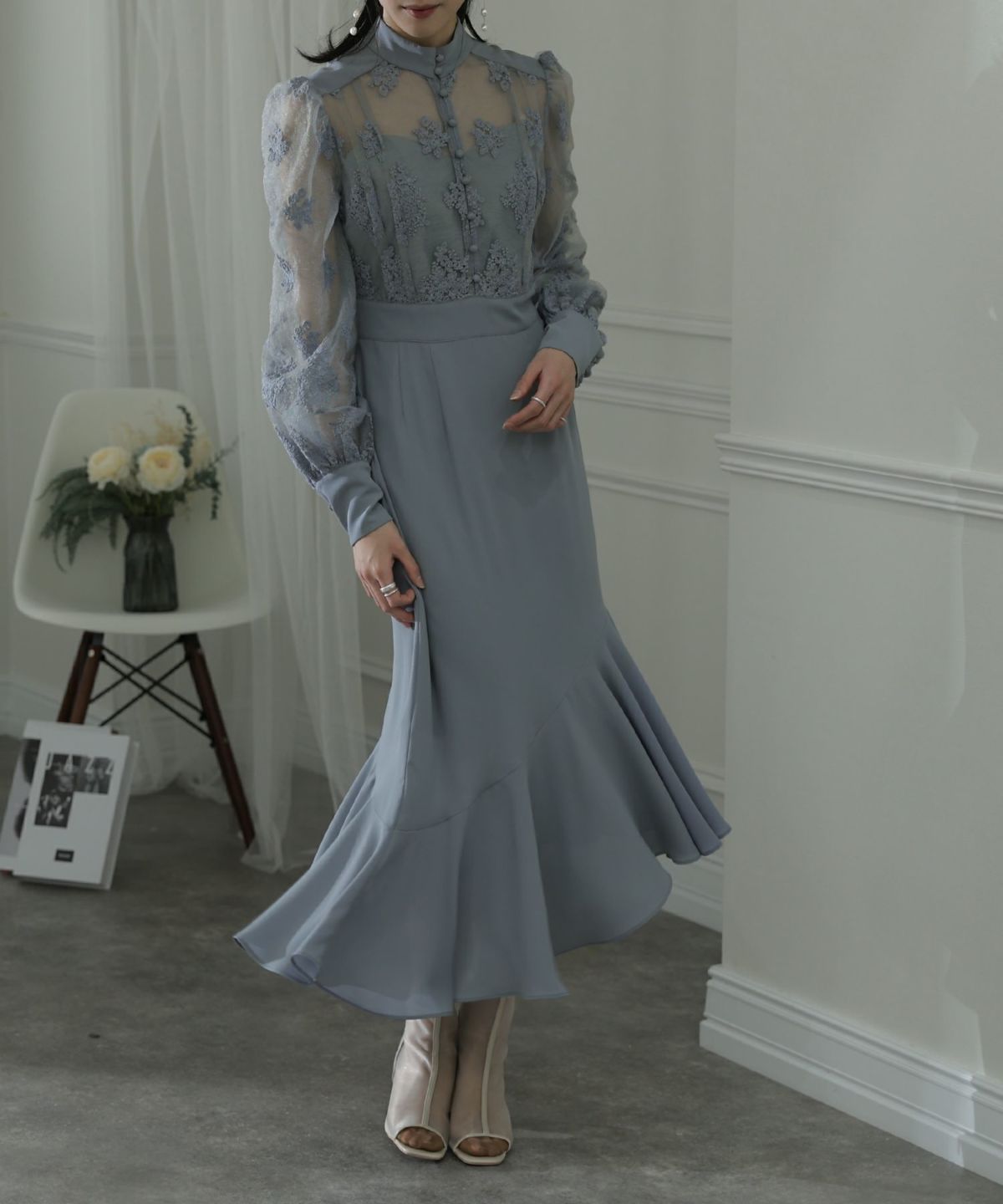 花柄チュール×マーメイドが大人可愛いワンピース