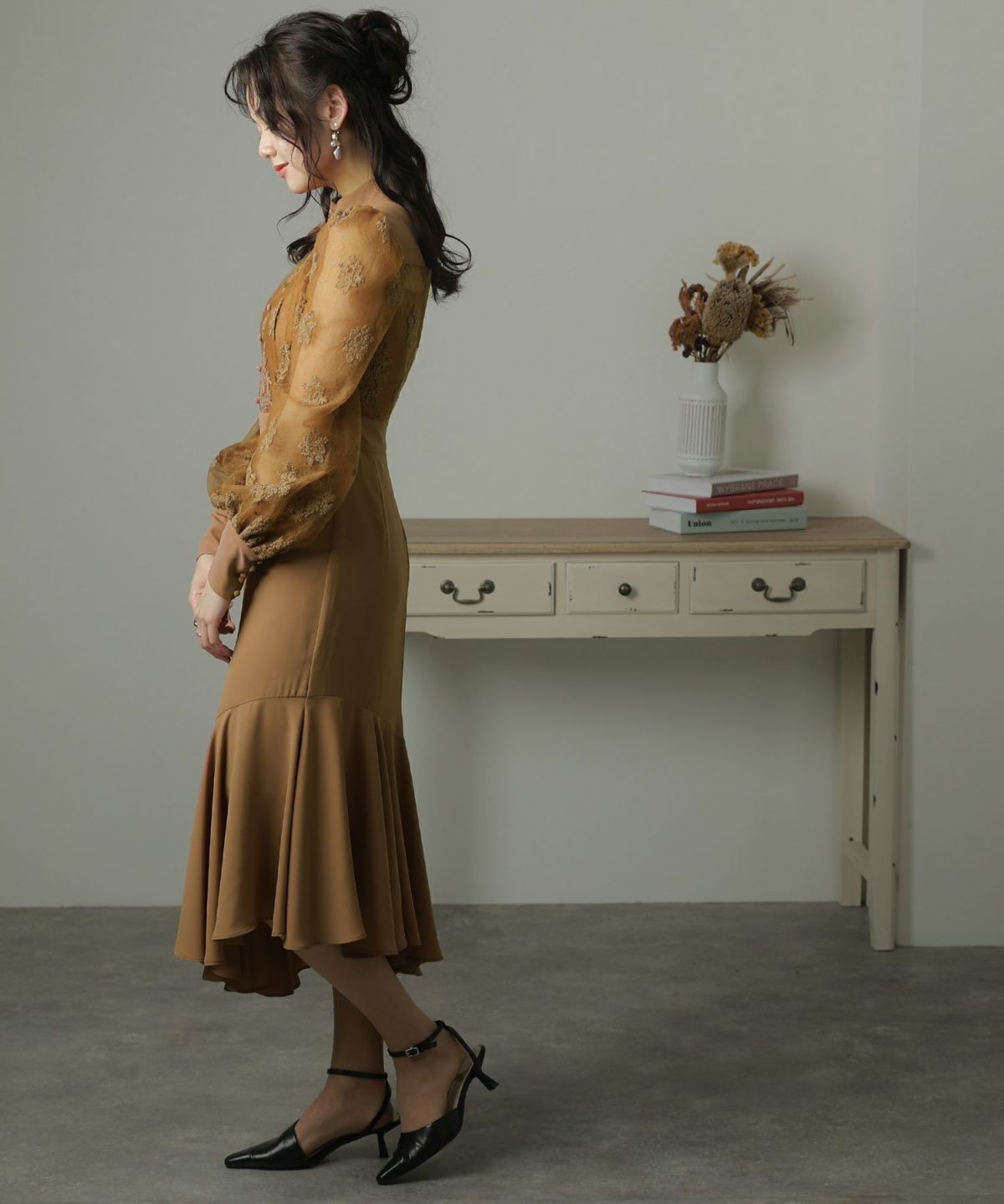 花柄チュール×マーメイドが大人可愛いワンピース