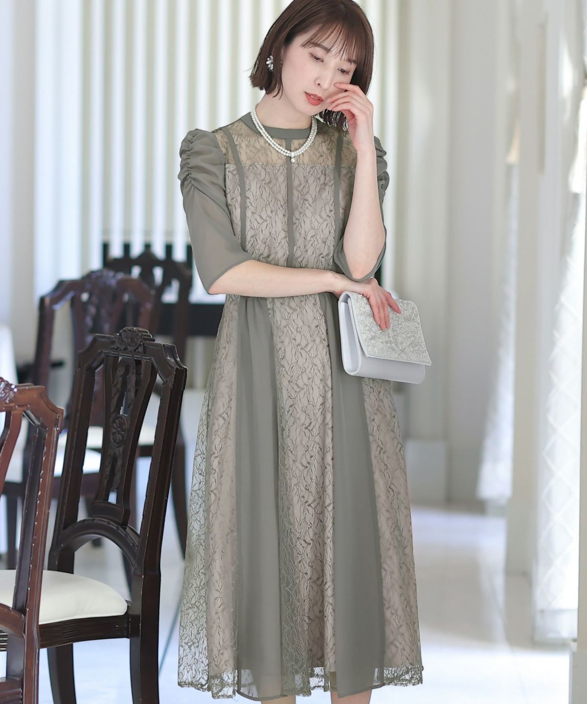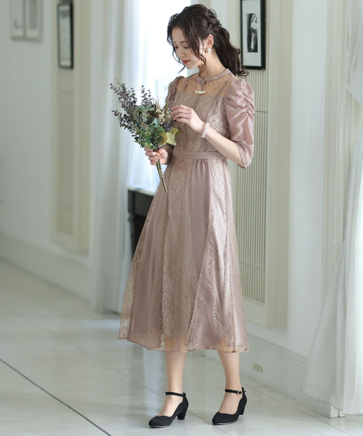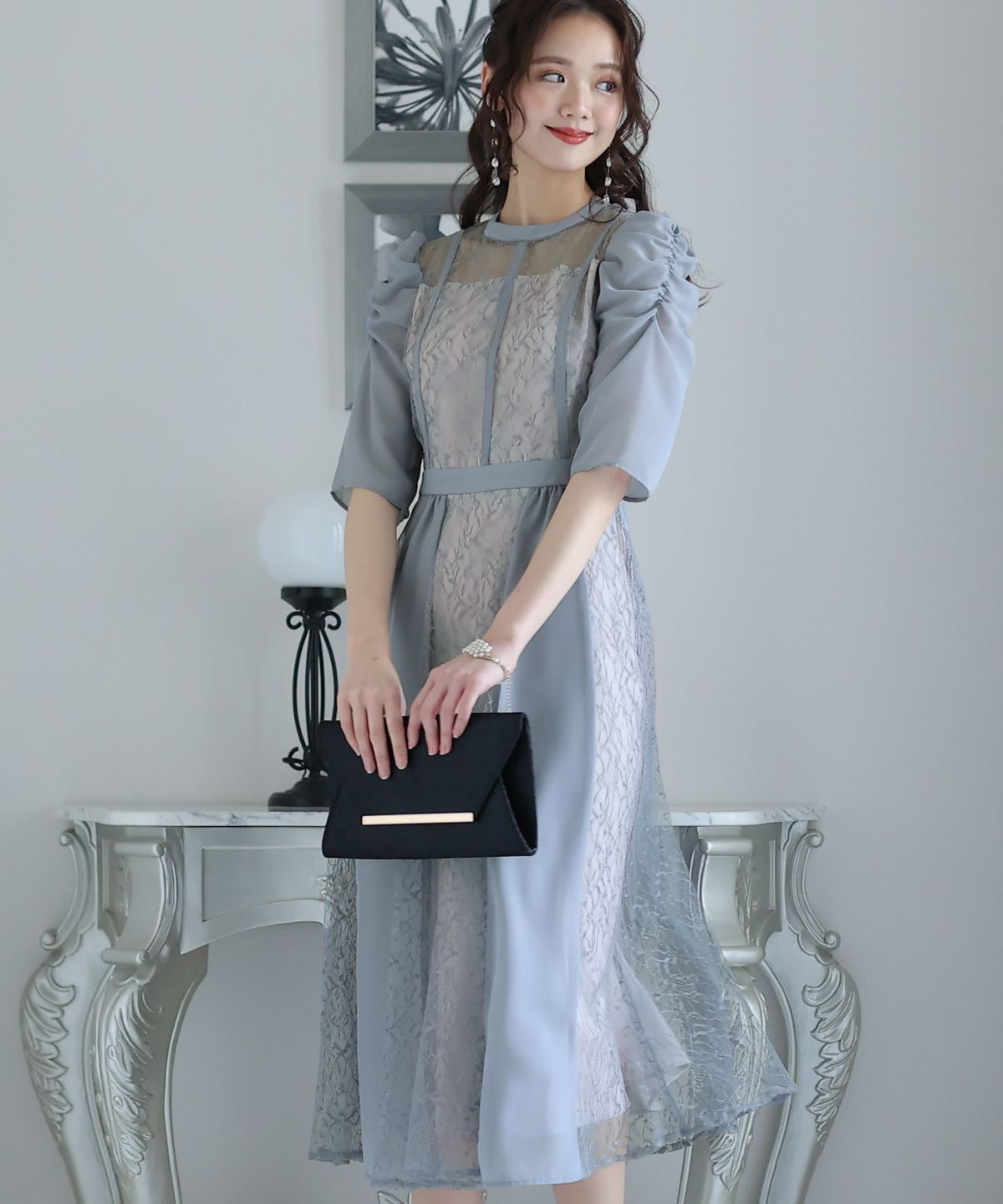 ギャザースリーブとふんわりスカートが可愛いワンピースドレス
