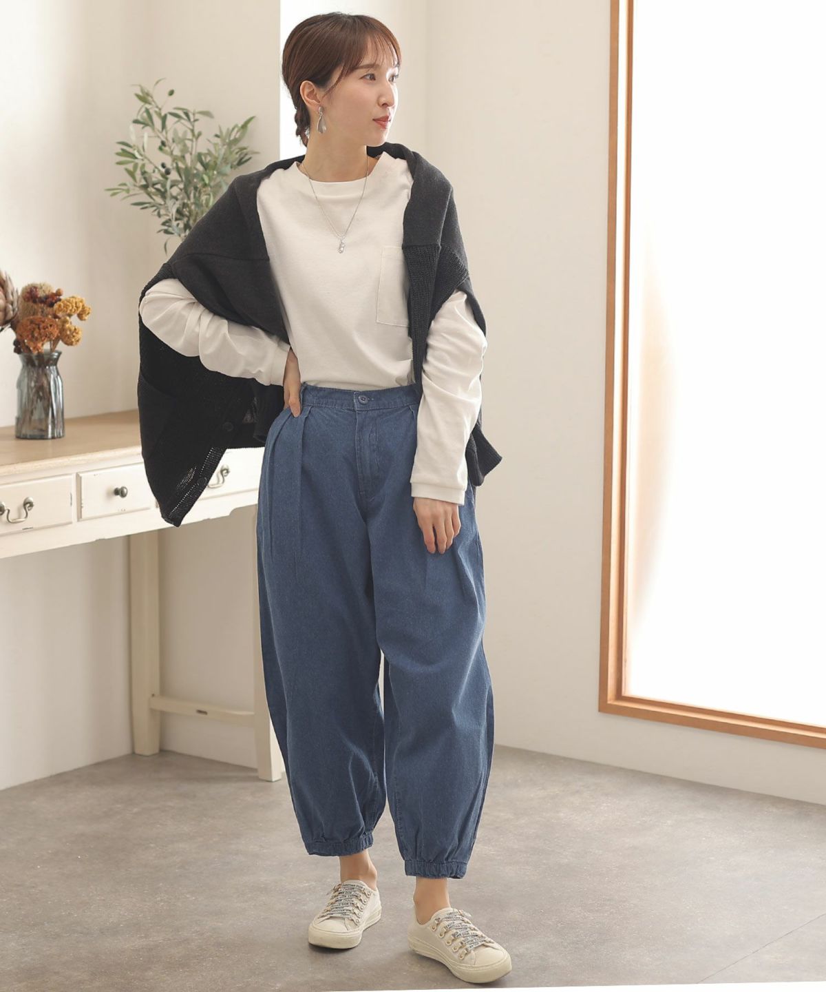 トップスや小物合わせで様々なスタイルを楽しめるアイテム