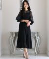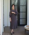 シアー感のある袖と裾広がりのスカートが女性らしさを引き立てます。