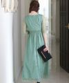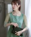 ■シンプルなデコルテとスカラップ袖シンプルなスクエアネックは、どんなアクセサリーも合わせやすい♪袖の透け感と裾のスカラップで可愛く二の腕をカバーしてくれます。ウエスト部分にはシャーリングが入っており伸縮性があるので、圧迫感がなく楽な着心地です。