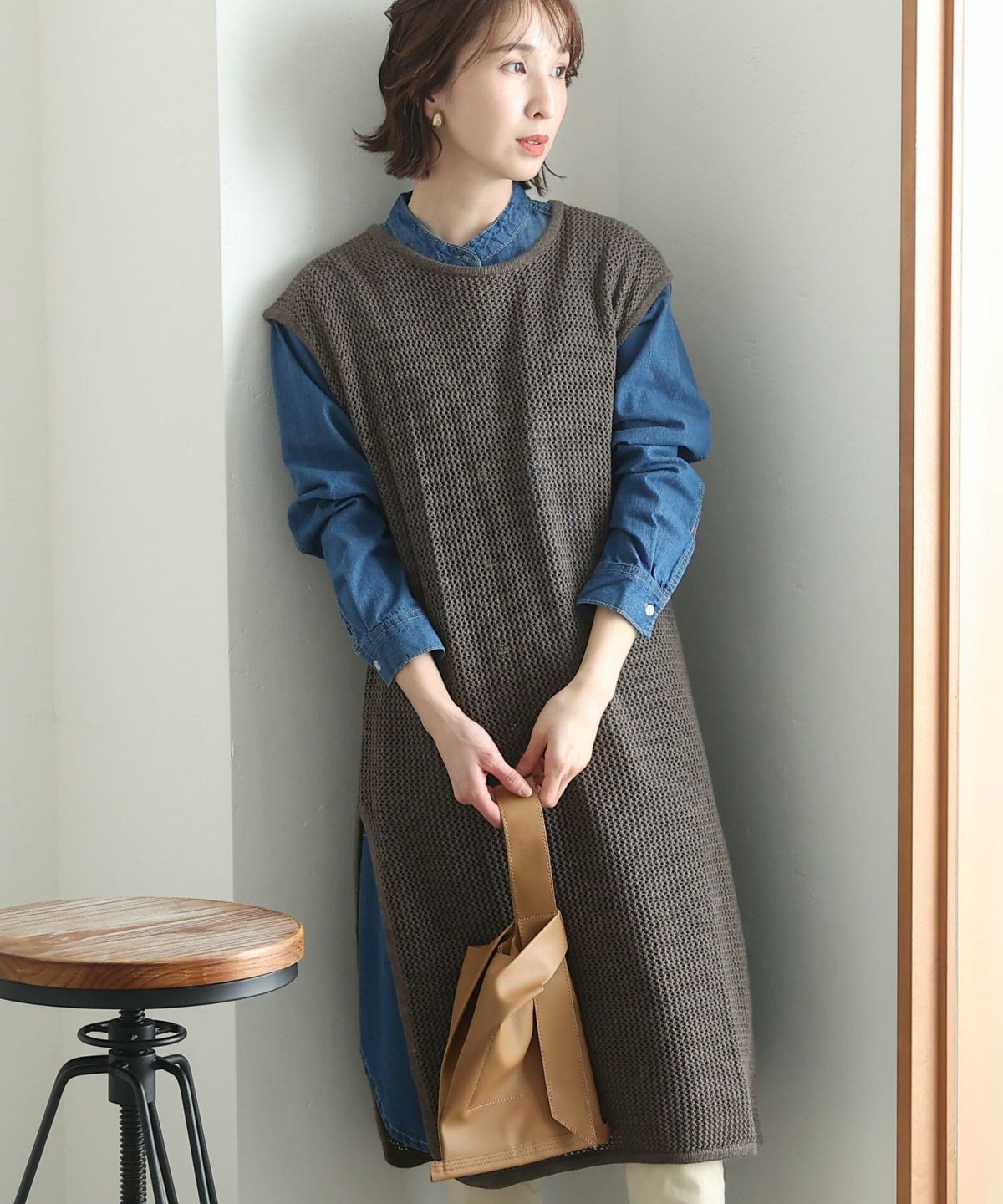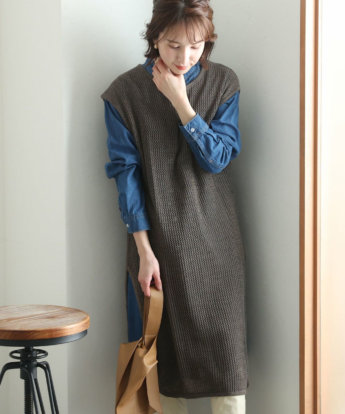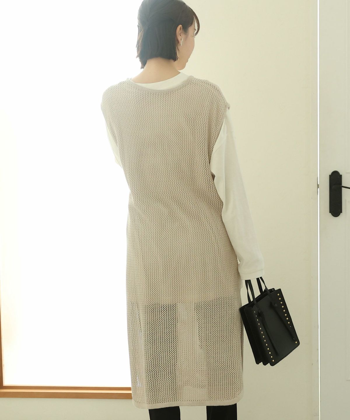 透け感が可愛いメッシュニットロングベスト