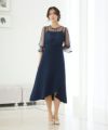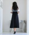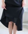 スカートのアシンメトリーデザインが、足元をすっきりと美しく演出。