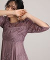 ギャザースリーブが大人可愛い 刺繍チュールシアーワンピース