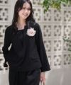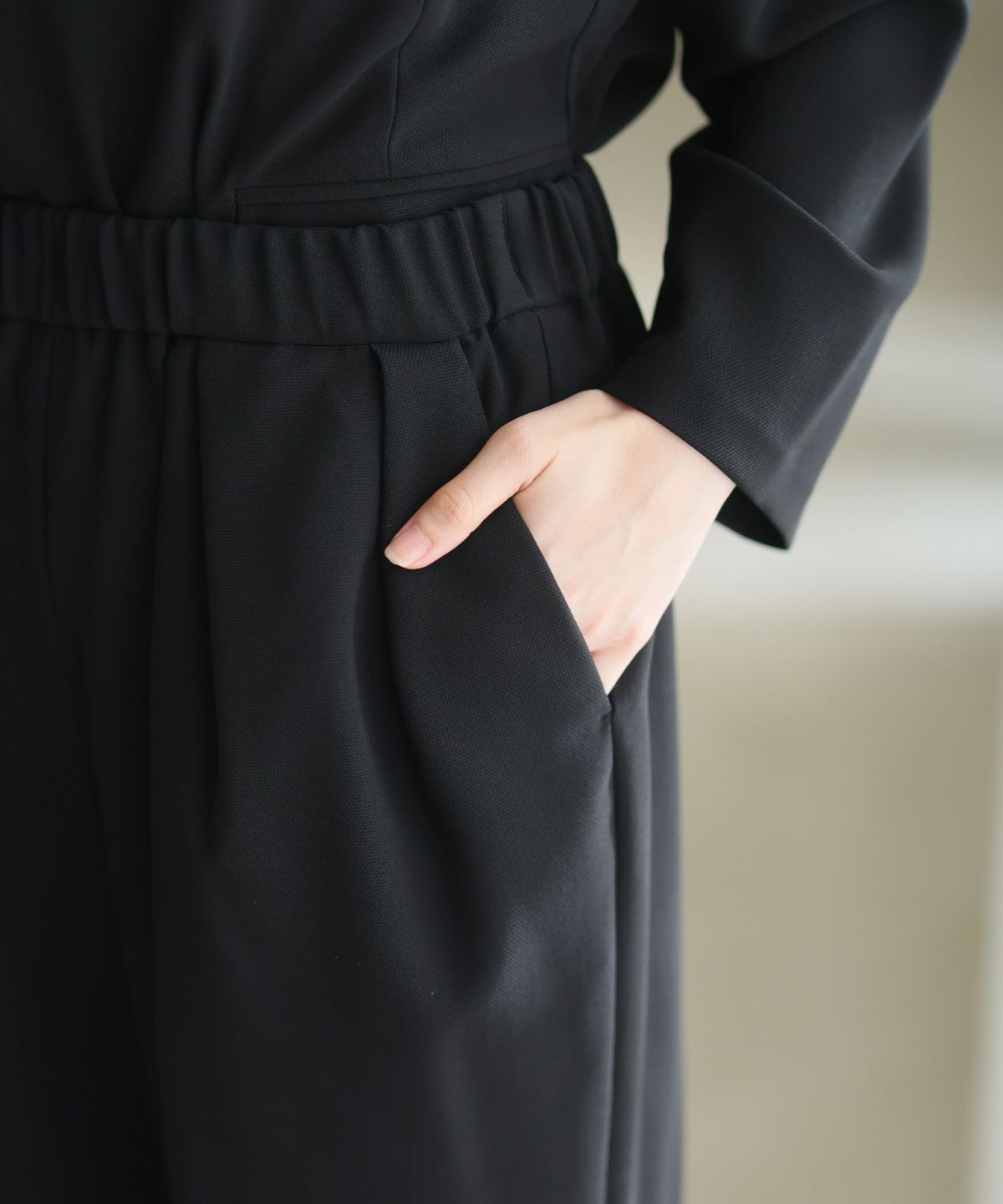 気になるウエスト周りをパンツのシルエットで自然とカバー。