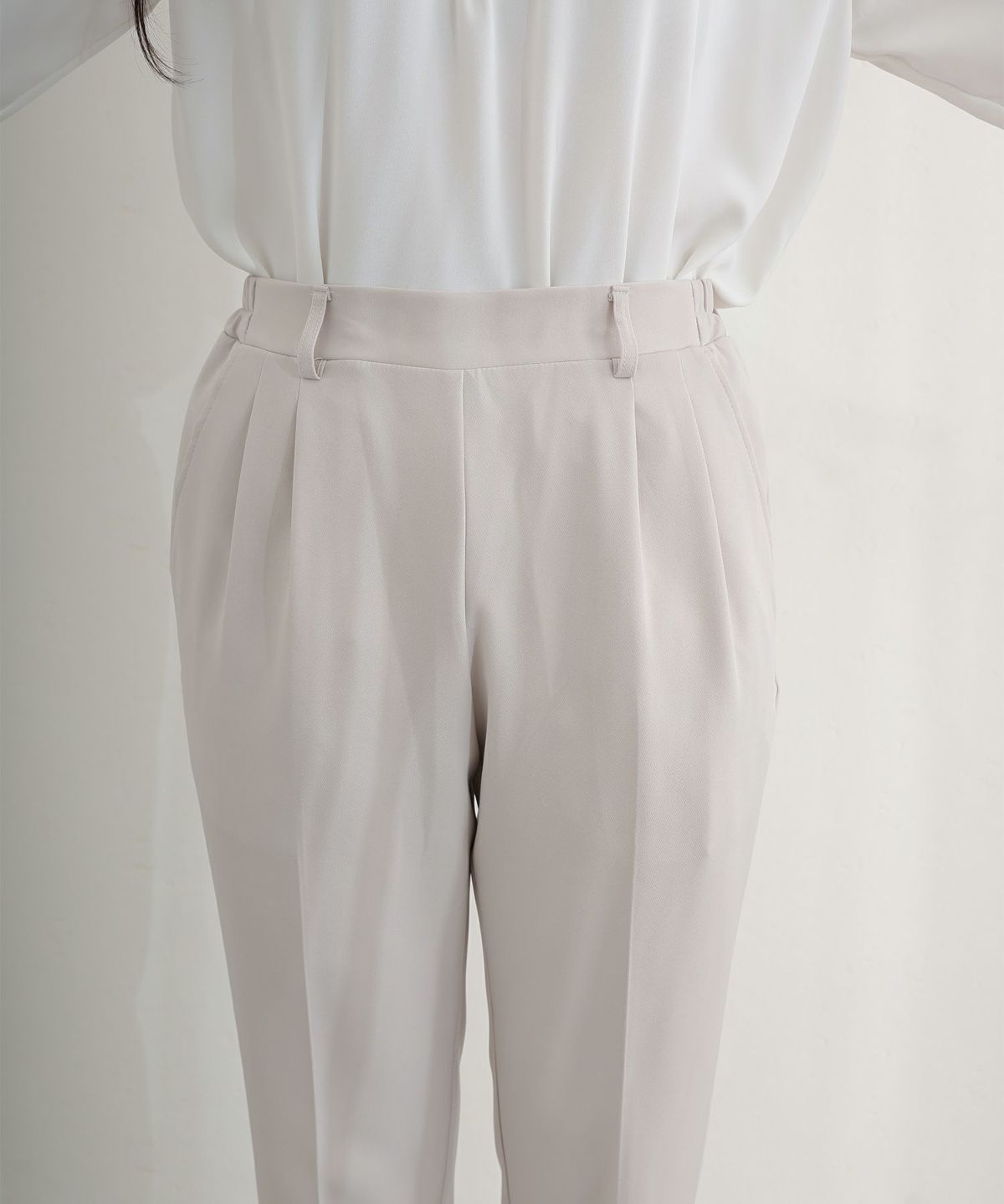 シルエットのキレイなテーパードパンツでスタイルアップ。