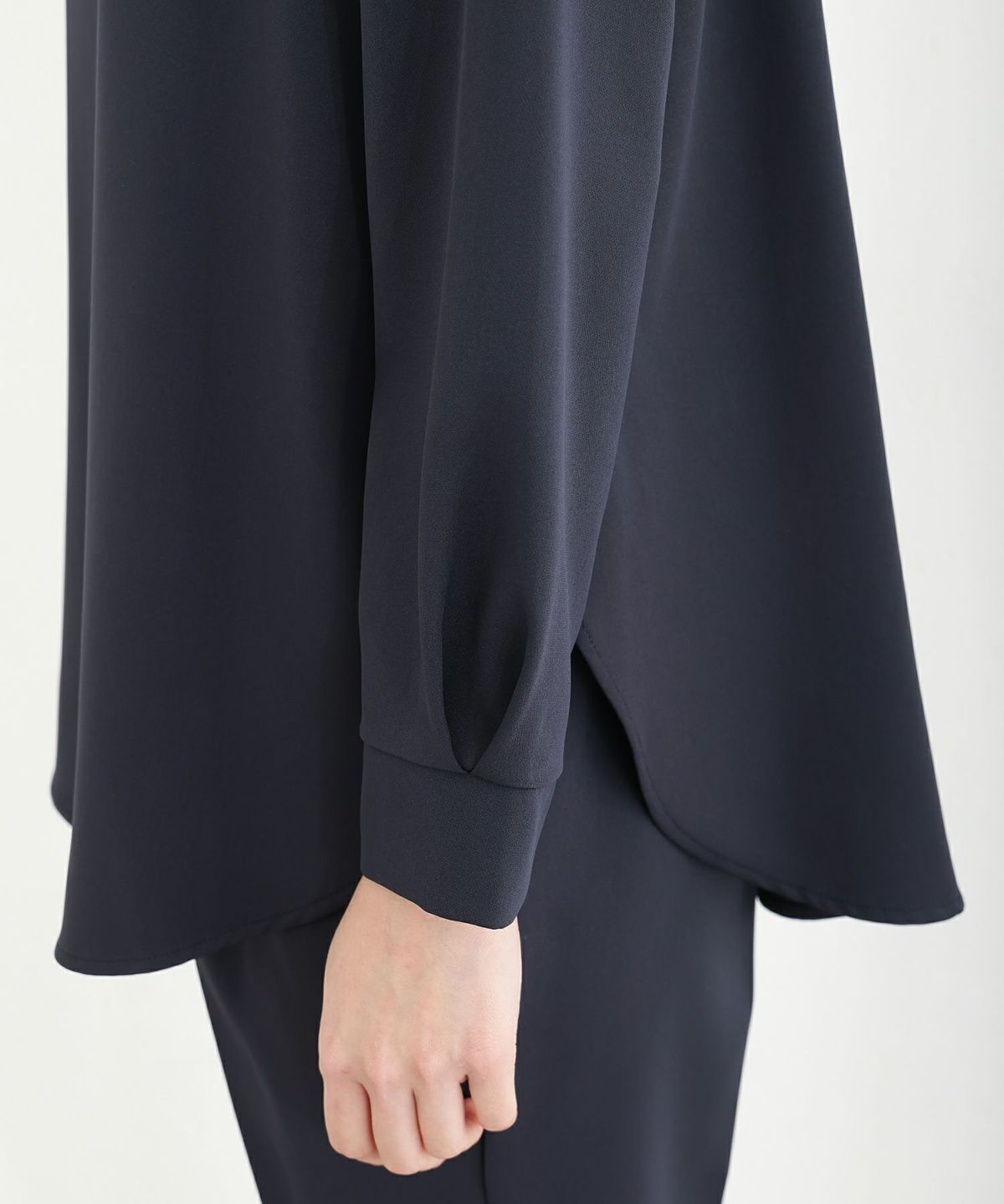 エレガントなボウタイトップスが、女性らしい柔らかさをプラス。
