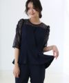 ビスチェ風トップスは、Uネックとレースで固すぎない印象と華やかさをプラス。