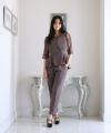 エレガントなビスチェ風トップスとパンツの2点セットのパンツドレス。