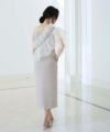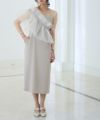モダンなデザインとエレガントな雰囲気が特徴的なオーガンジーケープのパーティードレス。