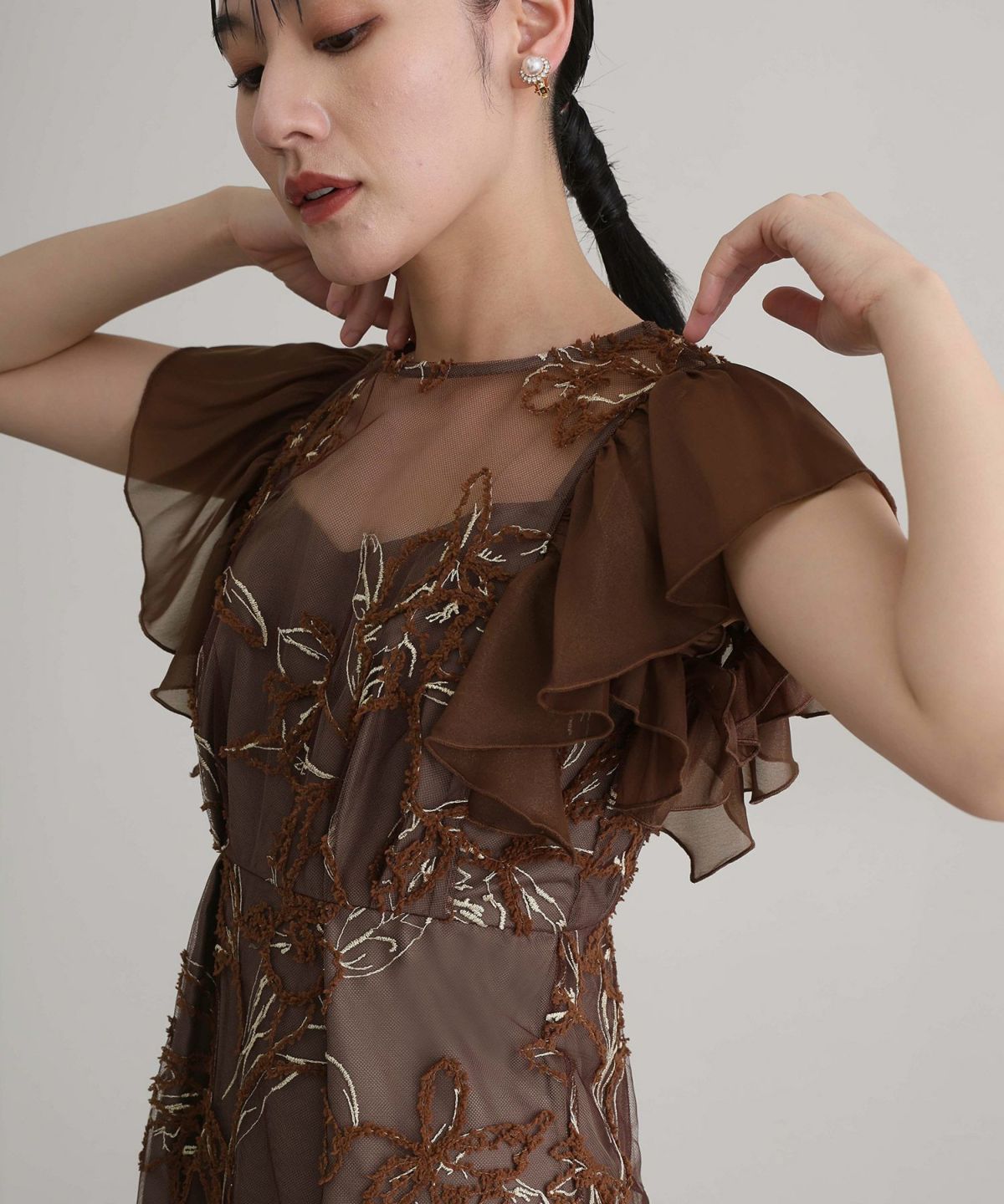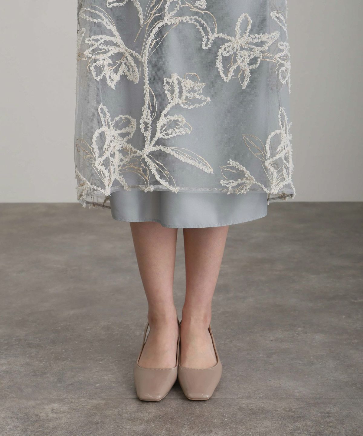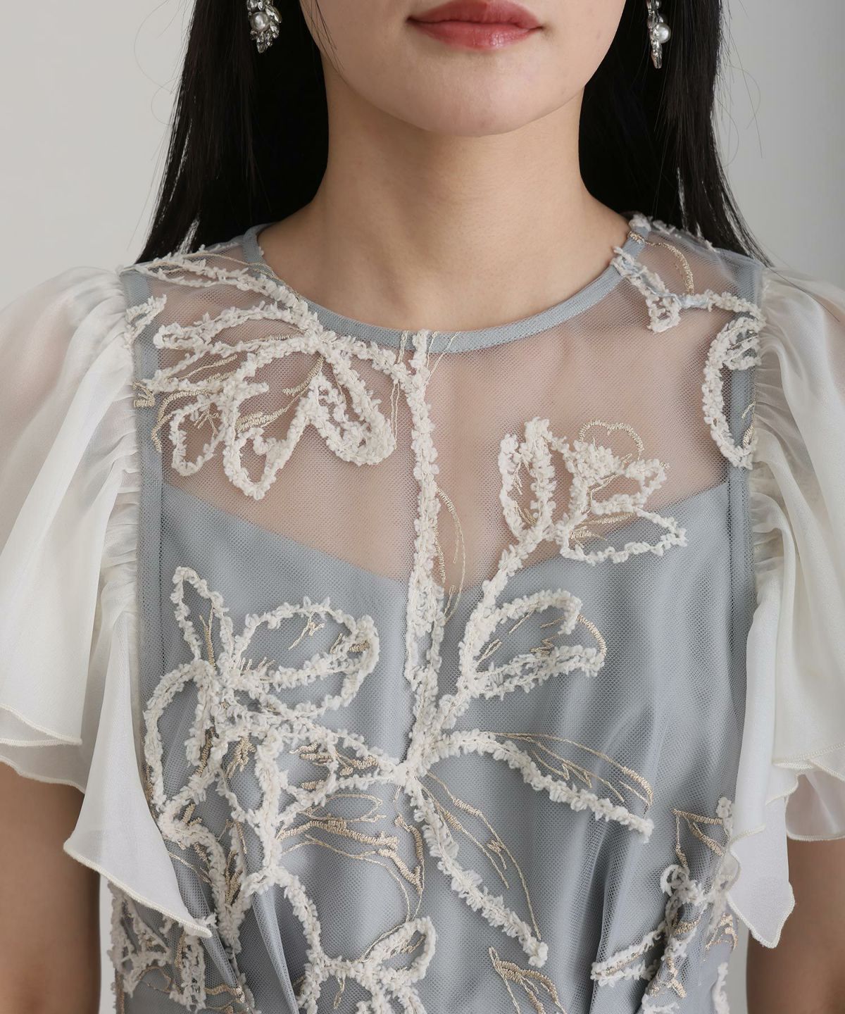 程よい透け感のある生地が刺繍をより際立たせ、重くなりすぎずやわらかい印象に。
