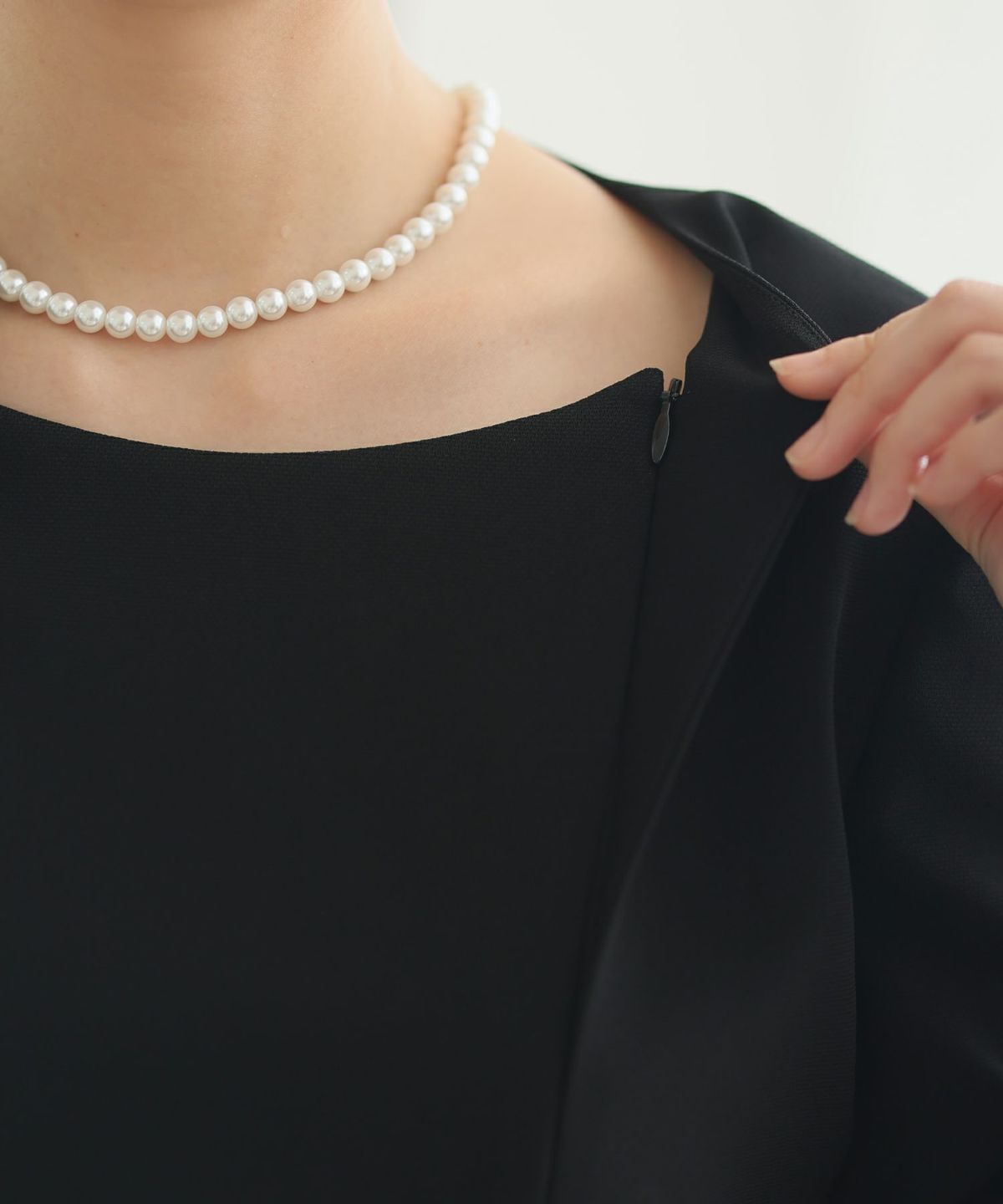 深いVラインで、首を細く長く、デコルテ部分を華奢に美しく魅せてくれます。
