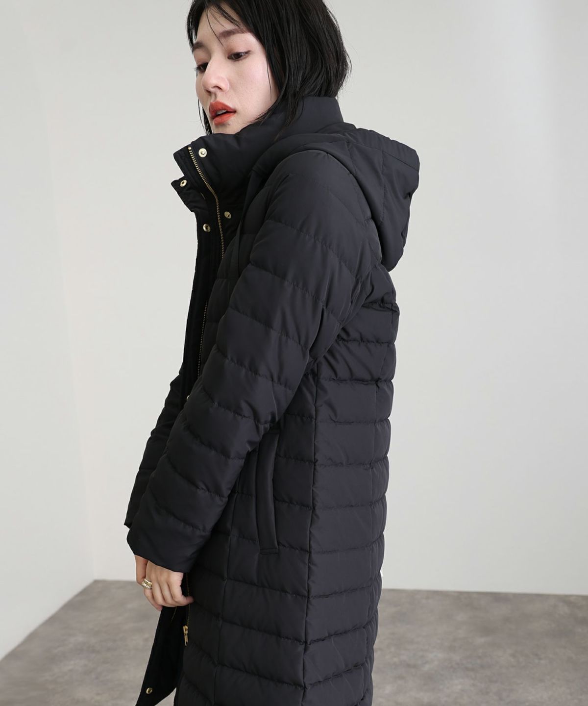 首元もあたたかいロングダウンジャケット