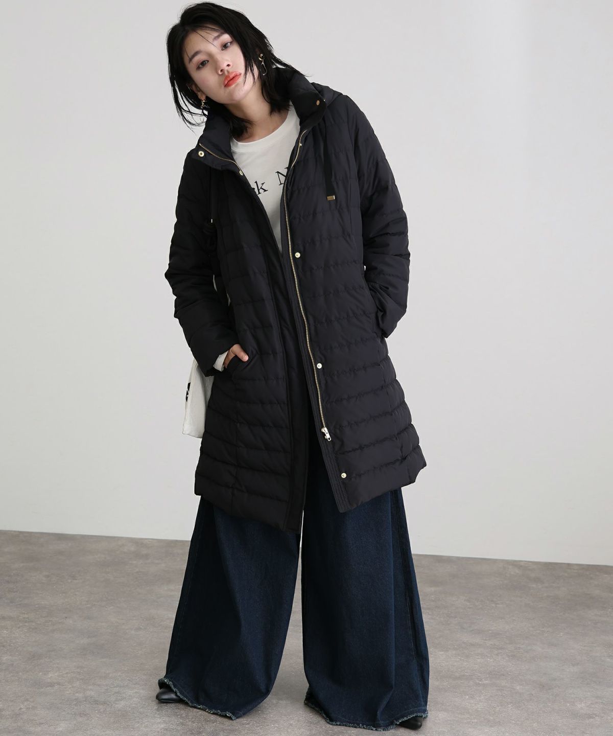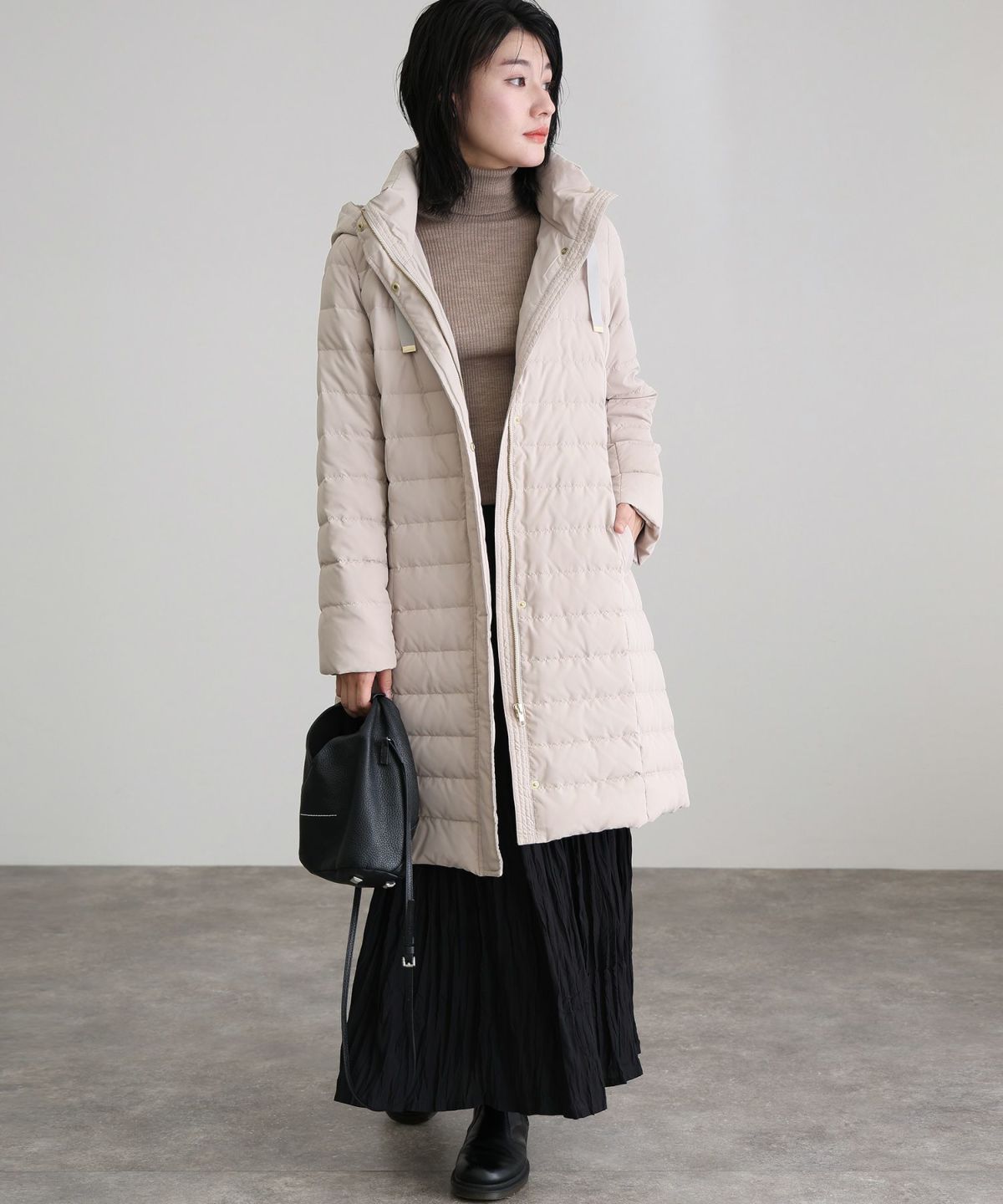 首元もあたたかいロングダウンジャケット