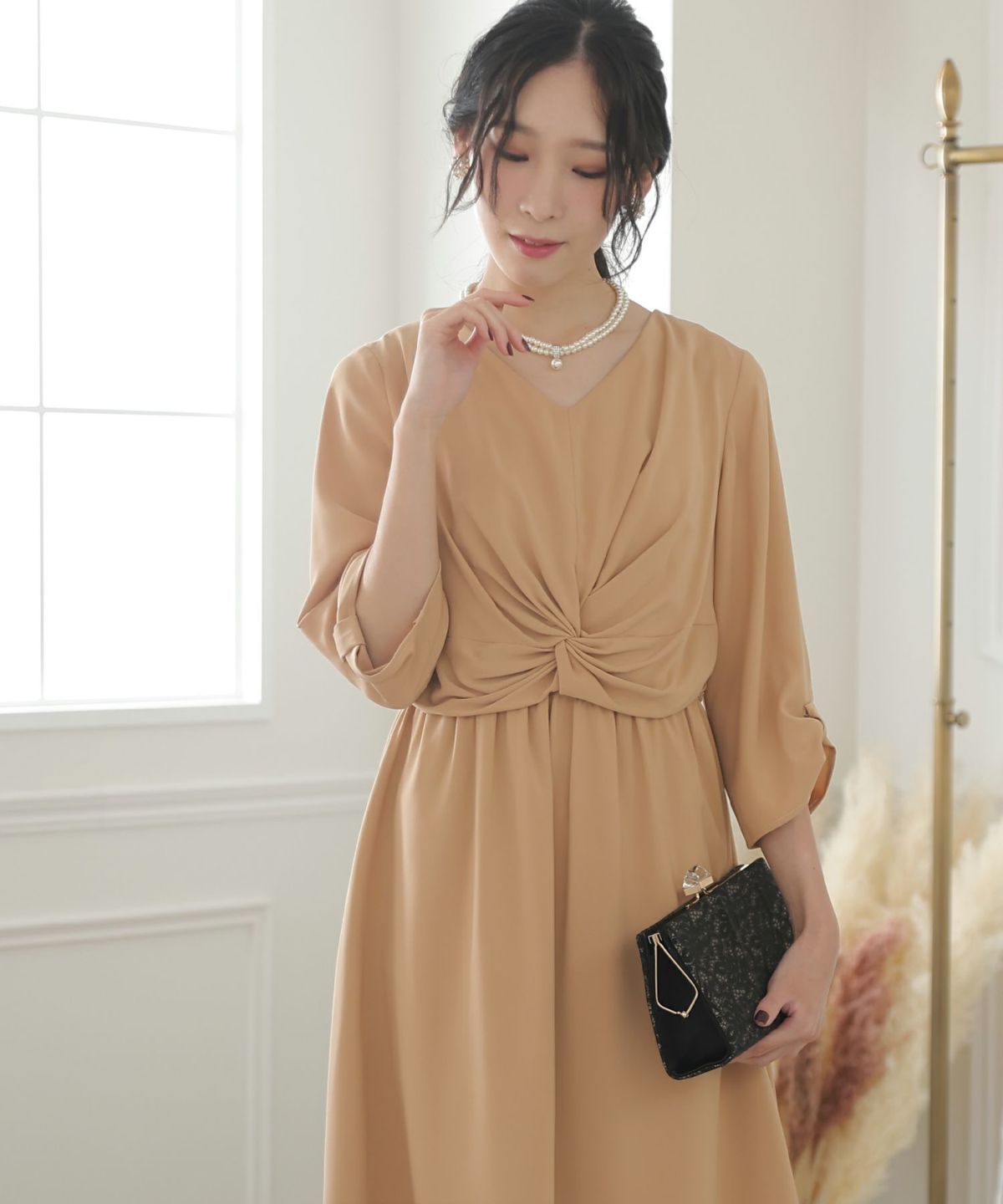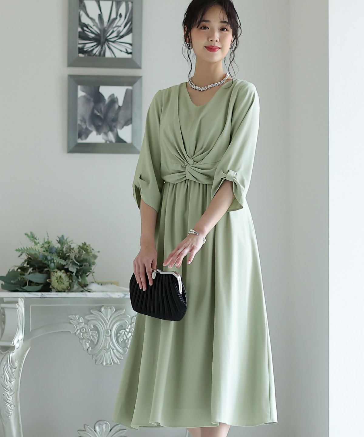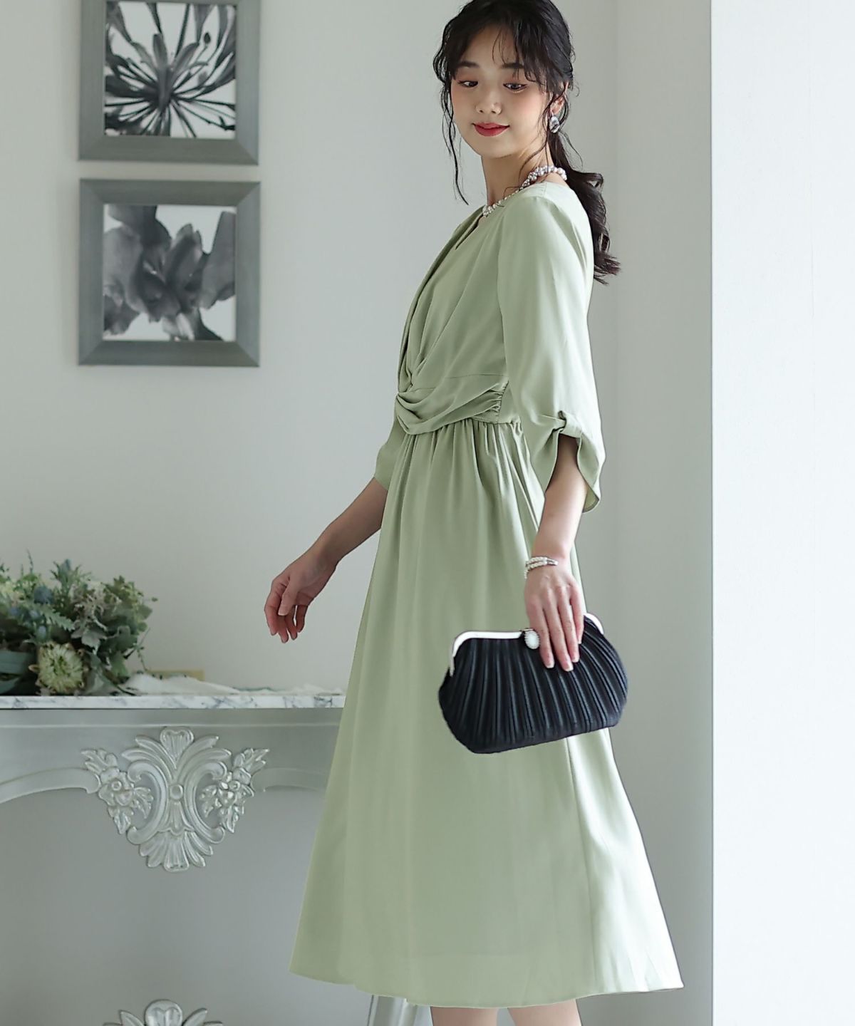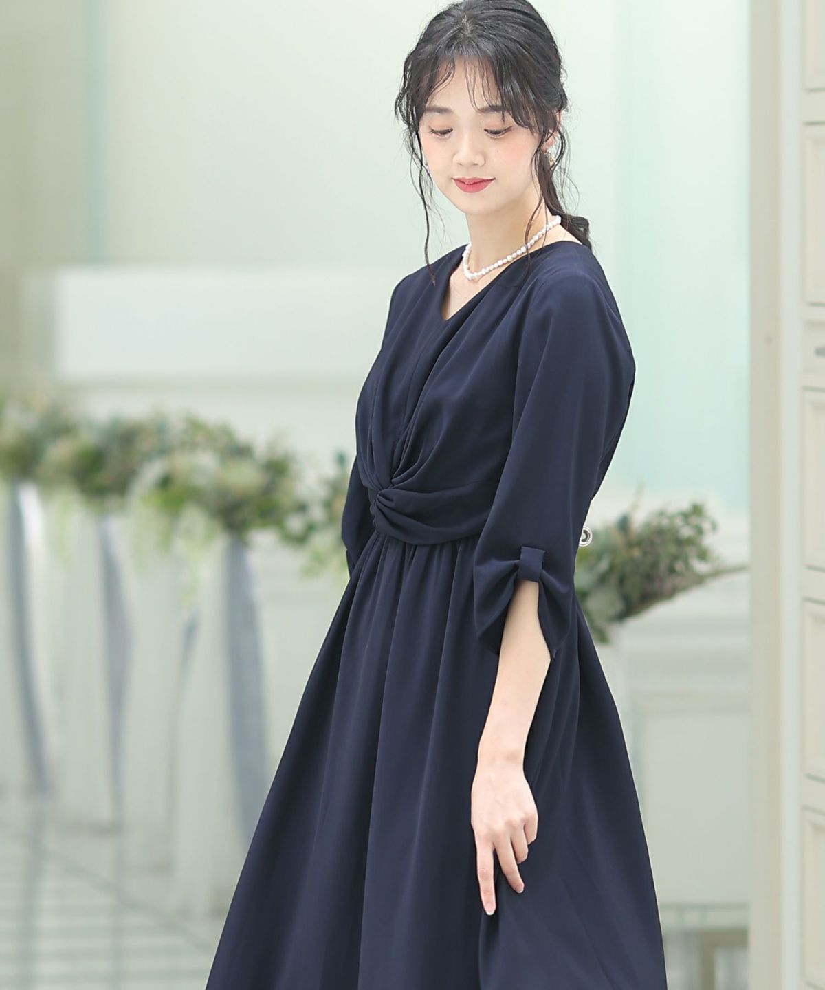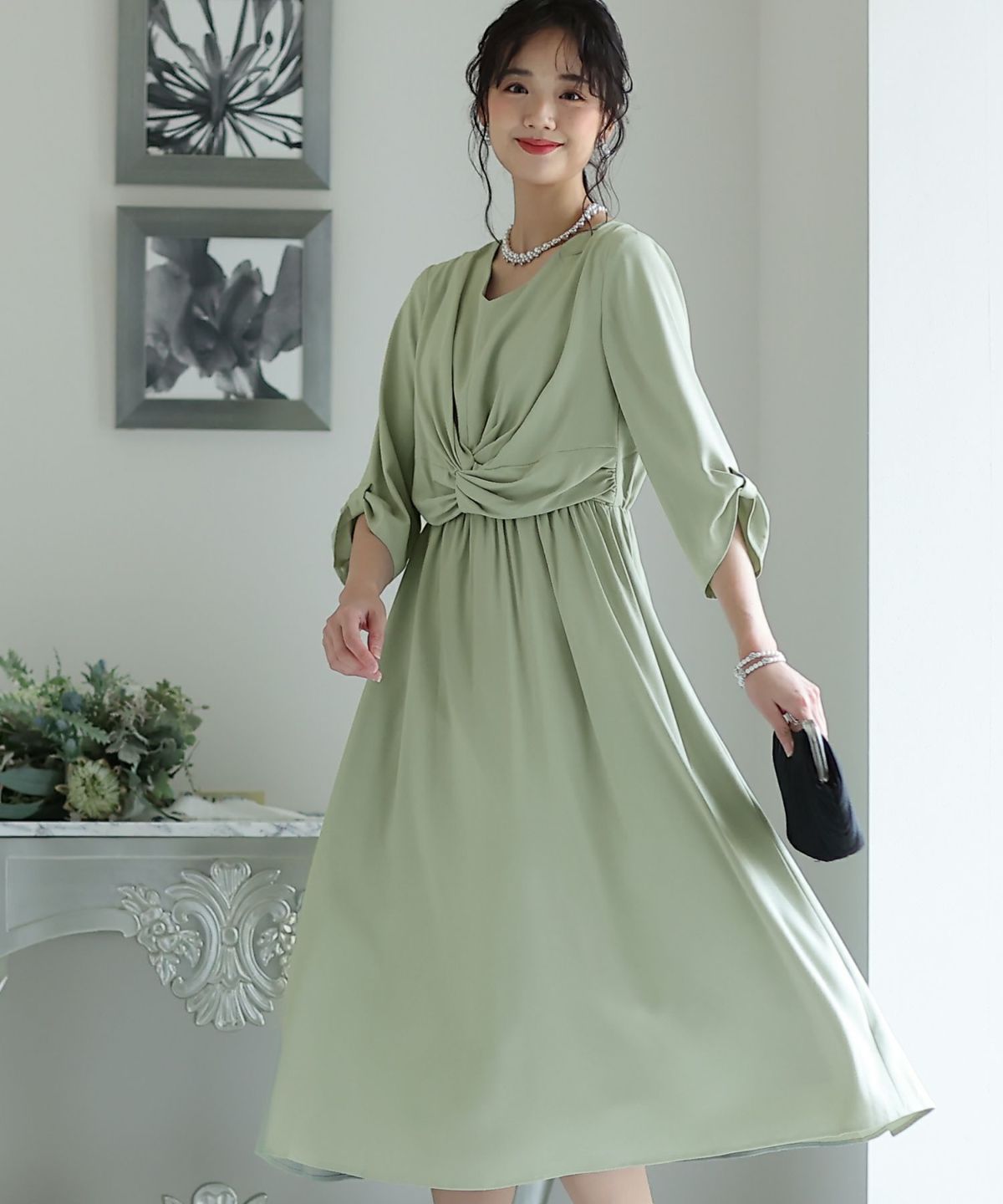 ■シンプル×個性的おしゃれにツイストされたフロントが、ちょっぴり個性的なワンピースです。綺麗なAラインのシルエットと、無地で落ち着いたカラーのデザインが大人っぽい印象に。ボリューム感のあるフレアスカートは華やかさを演出してくれます。オケージョンシーンはもちろん女子会などにも使いやすいデザインです。