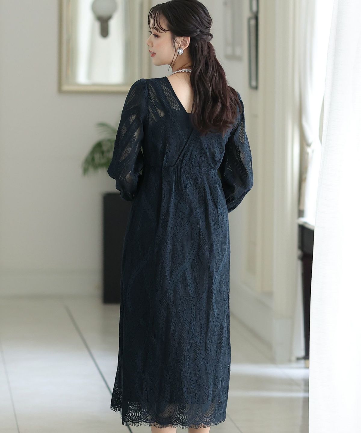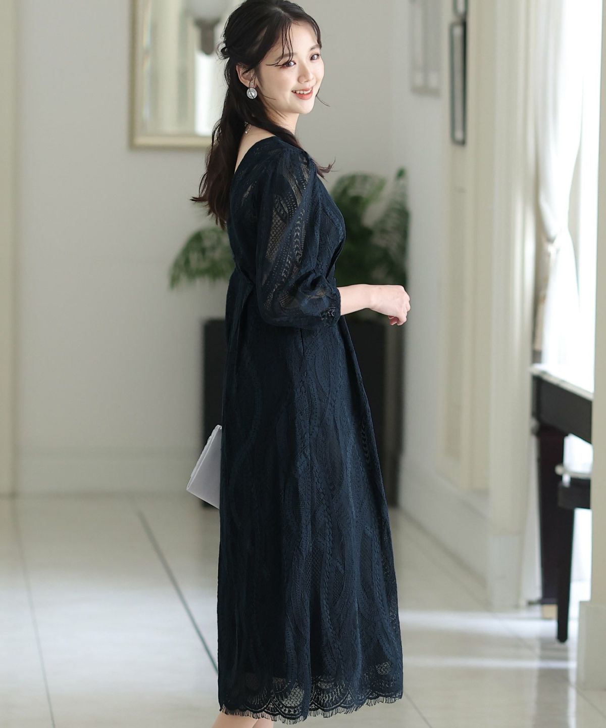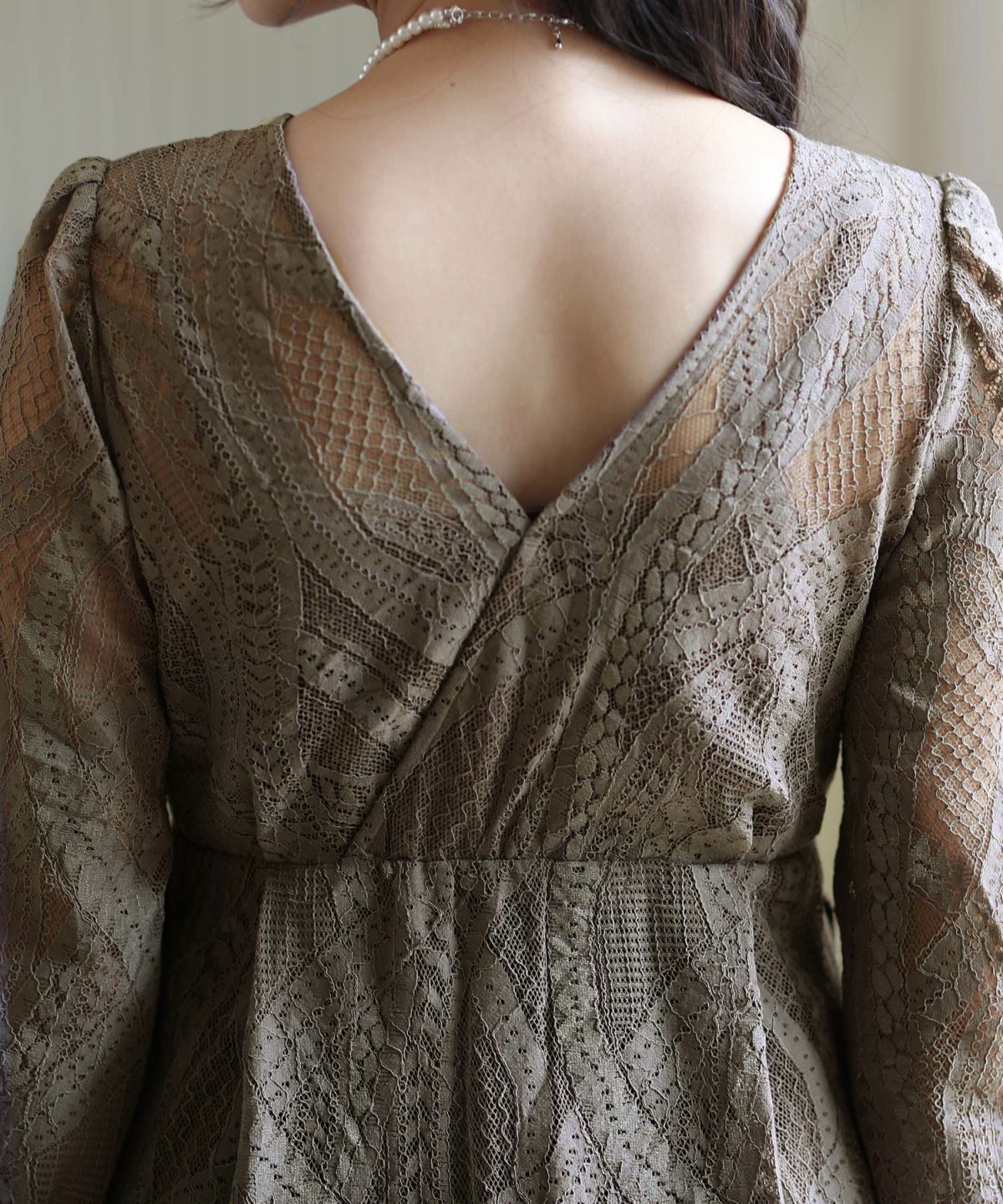 ■総レース×2WAY仕様前後ろで着れる2WAY仕様のレースワンピース。おしゃれなデザインと程よい透け感の総レースが美しいです。後ろのネックラインがカシュクール風になっており、フェミニンで大人っぽさが出ます。女子会やパーティーなど様々なシーンでお使いいただけます。