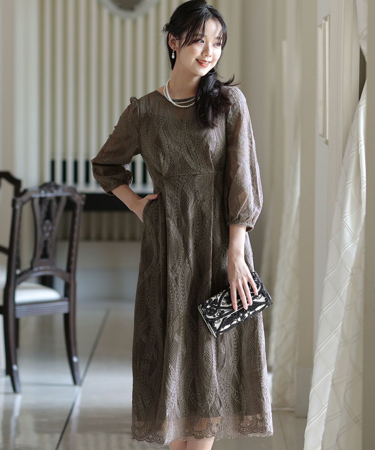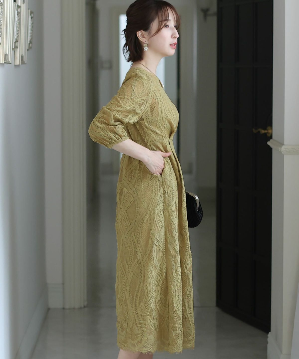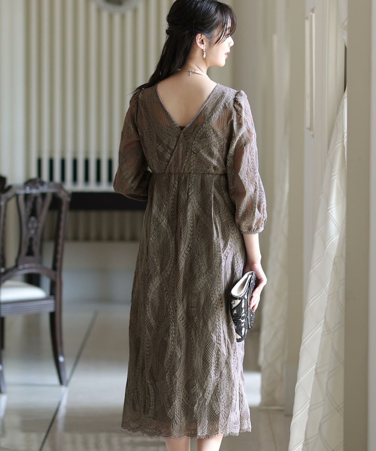 ■総レース×2WAY仕様前後ろで着れる2WAY仕様のレースワンピース。おしゃれなデザインと程よい透け感の総レースが美しいです。後ろのネックラインがカシュクール風になっており、フェミニンで大人っぽさが出ます。女子会やパーティーなど様々なシーンでお使いいただけます。